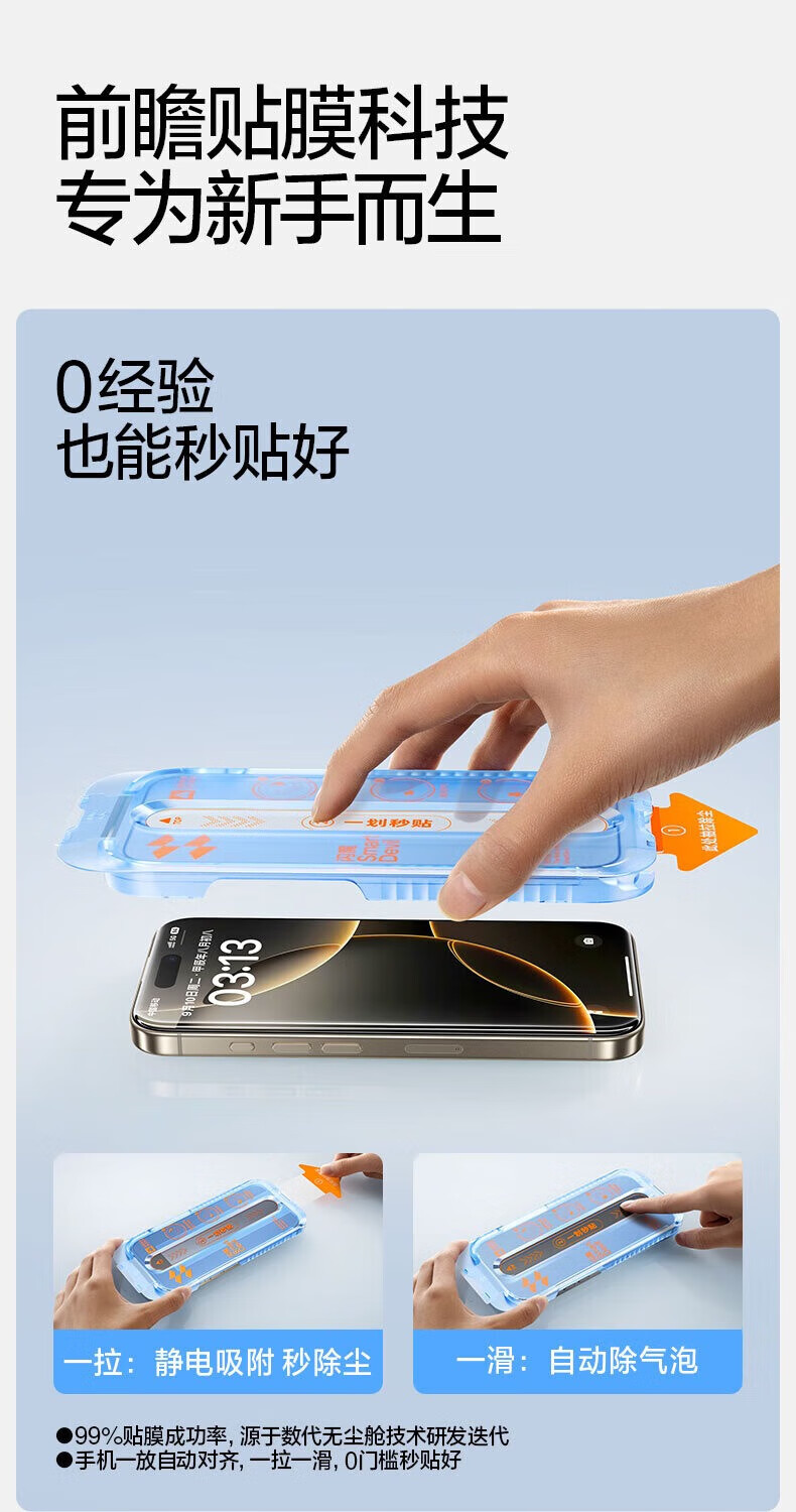 Flash Magic is suitable for iPhone16promax tempered film, Apple 17/16pro mobile phone film, ultra-clear, explosion-proof, drop-resistant, fingerprint-proof, dust-free cabin, earpiece, dust-proof, full-screen protective film, 16ProMax, second-stick, earpiece dust-proof, 2 sets, damage guarantee