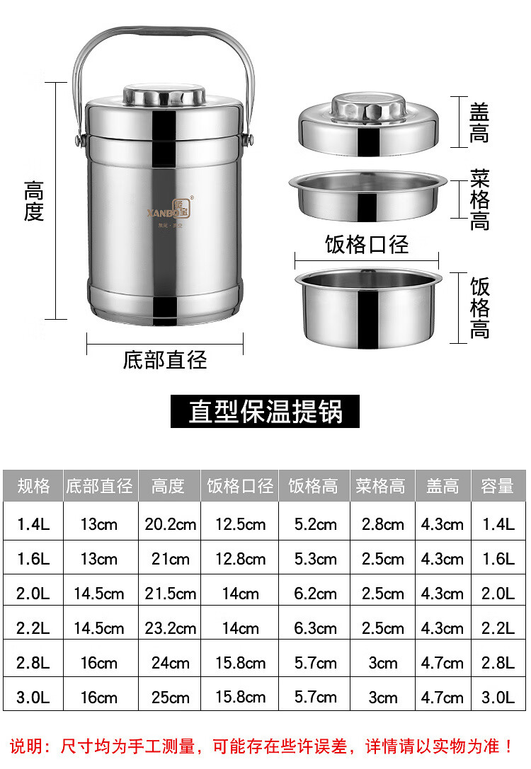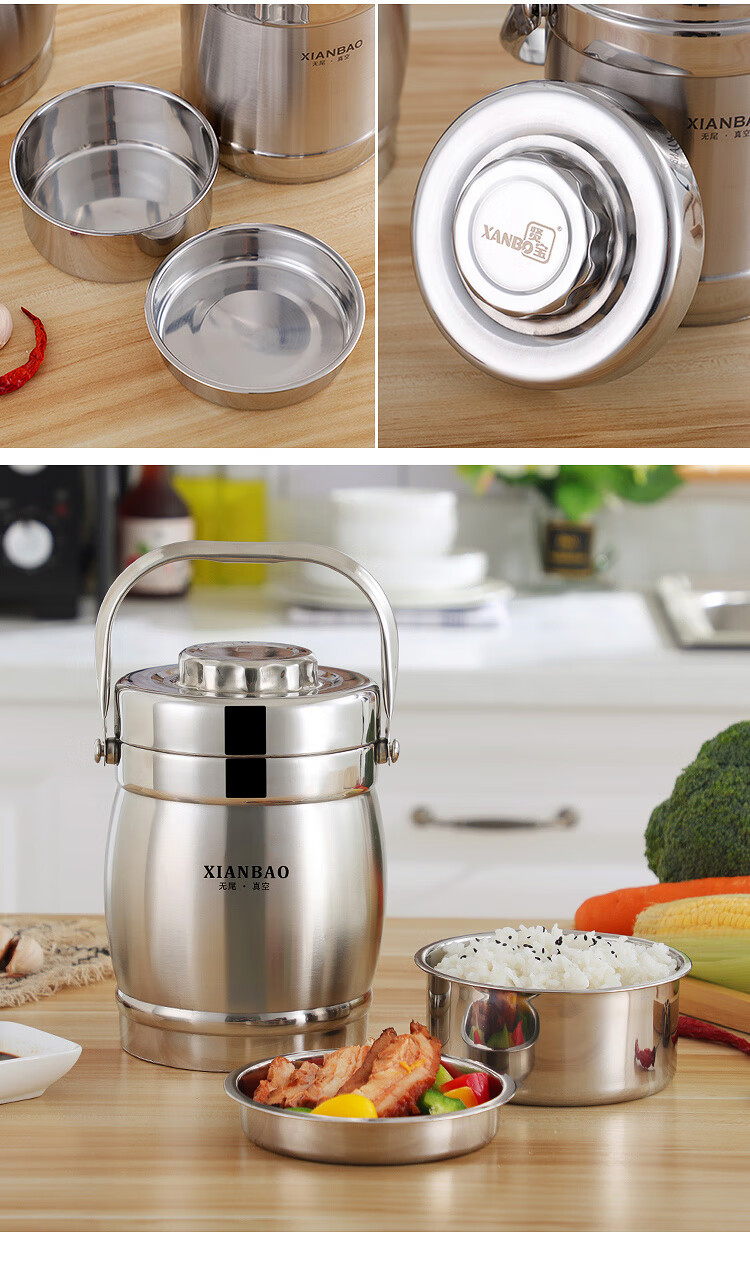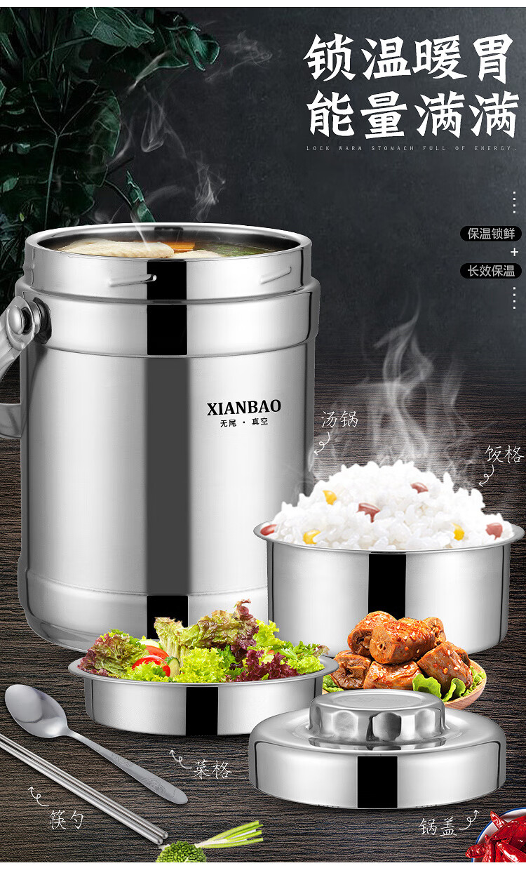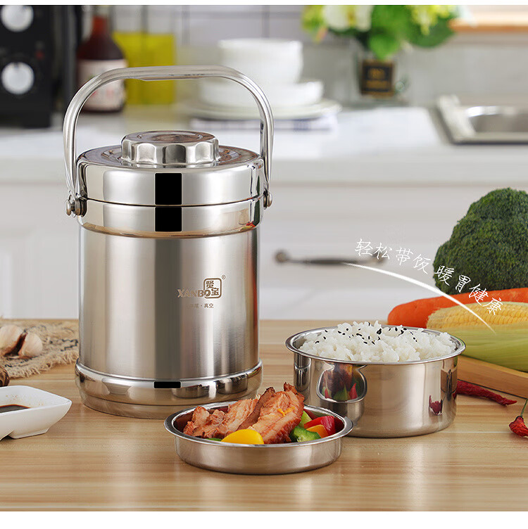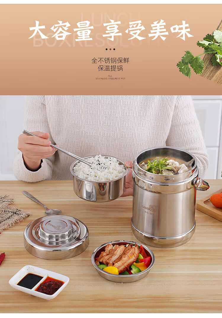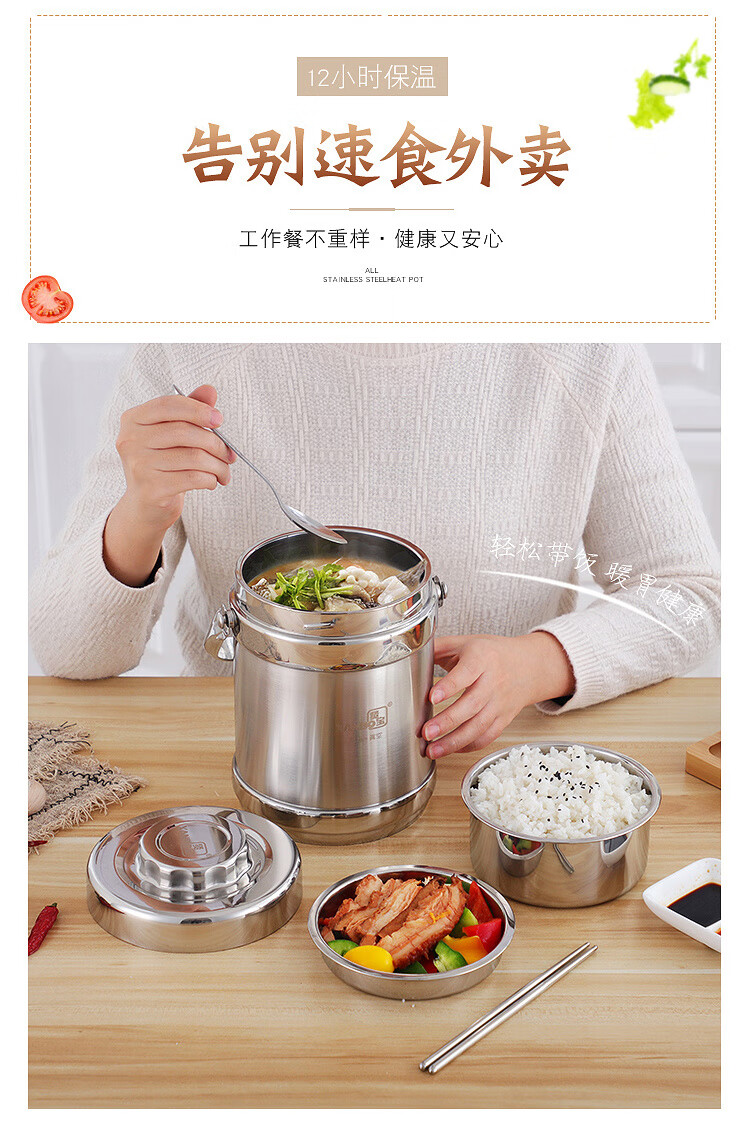 Qinkai Stainless Steel Insulated Lunch Box, Vacuum Extra Long Insulated Bucket, Multi-layered Spill-proof Rice Bucket, Portable for Work, Large Capacity, Three-layer Lunch Box with Chopsticks + Spoon, 2.0L Straight Type, Normal Insulated, 3 Hours to Eat for 1-2 People