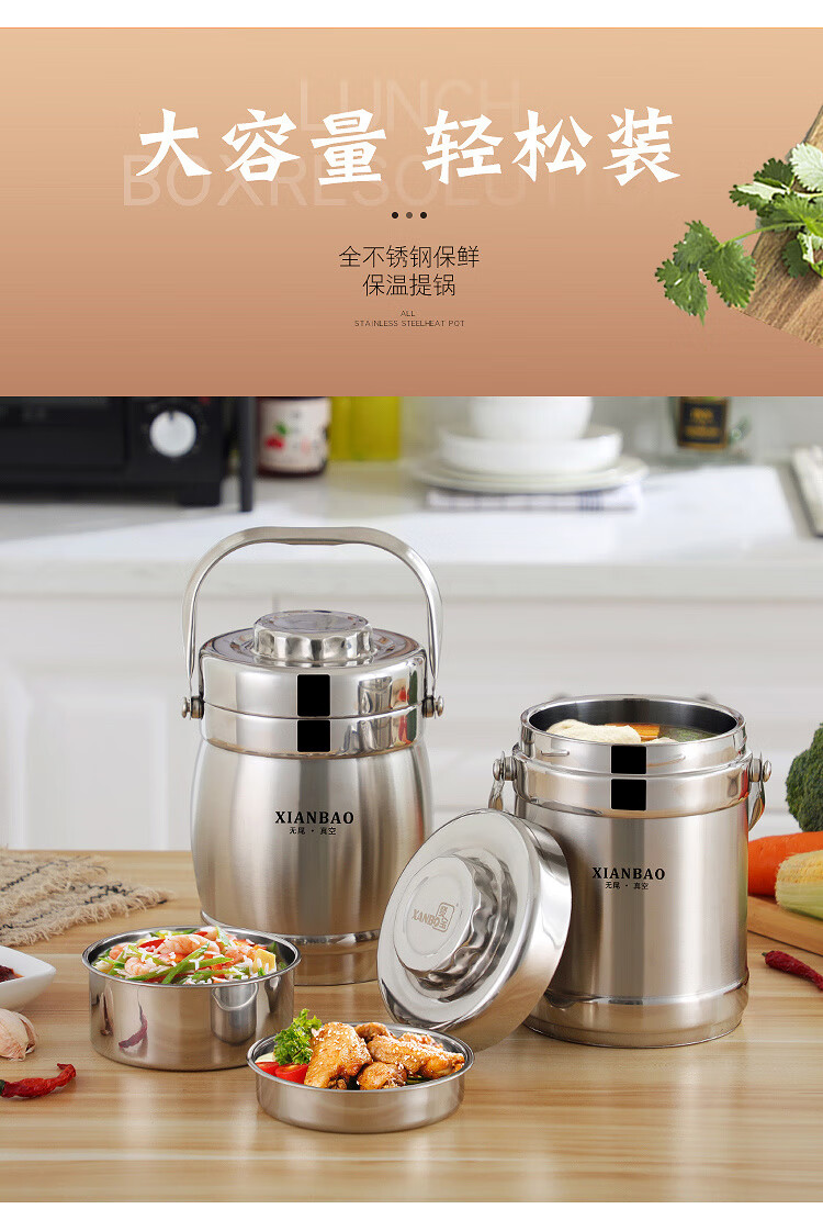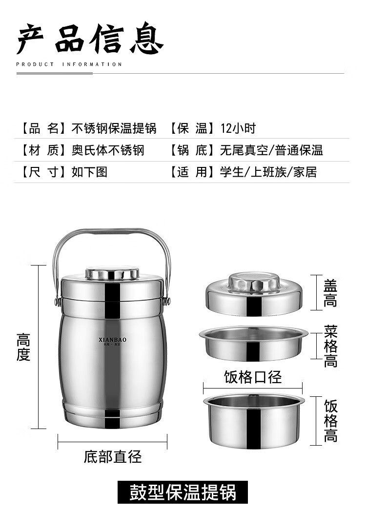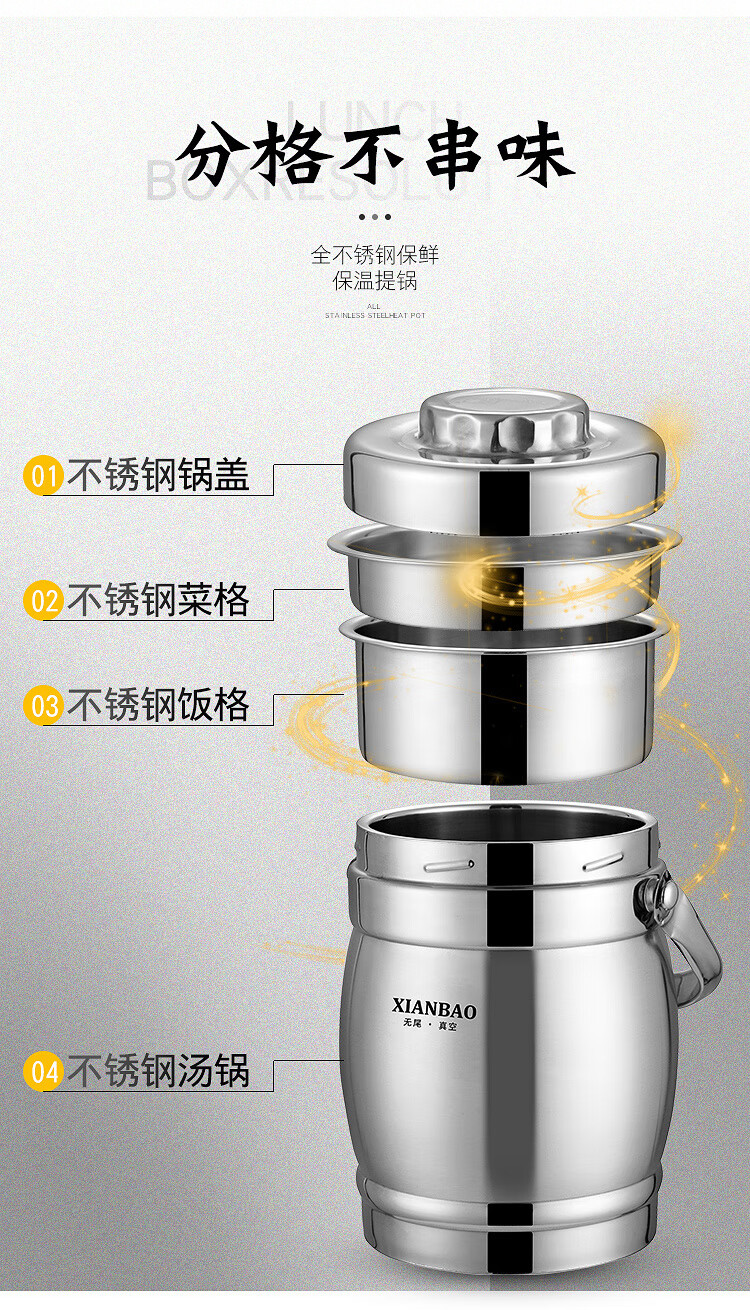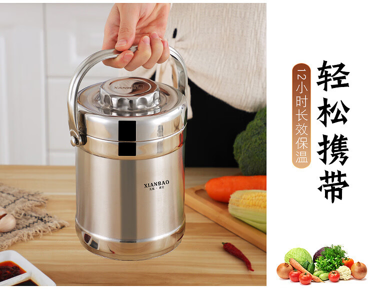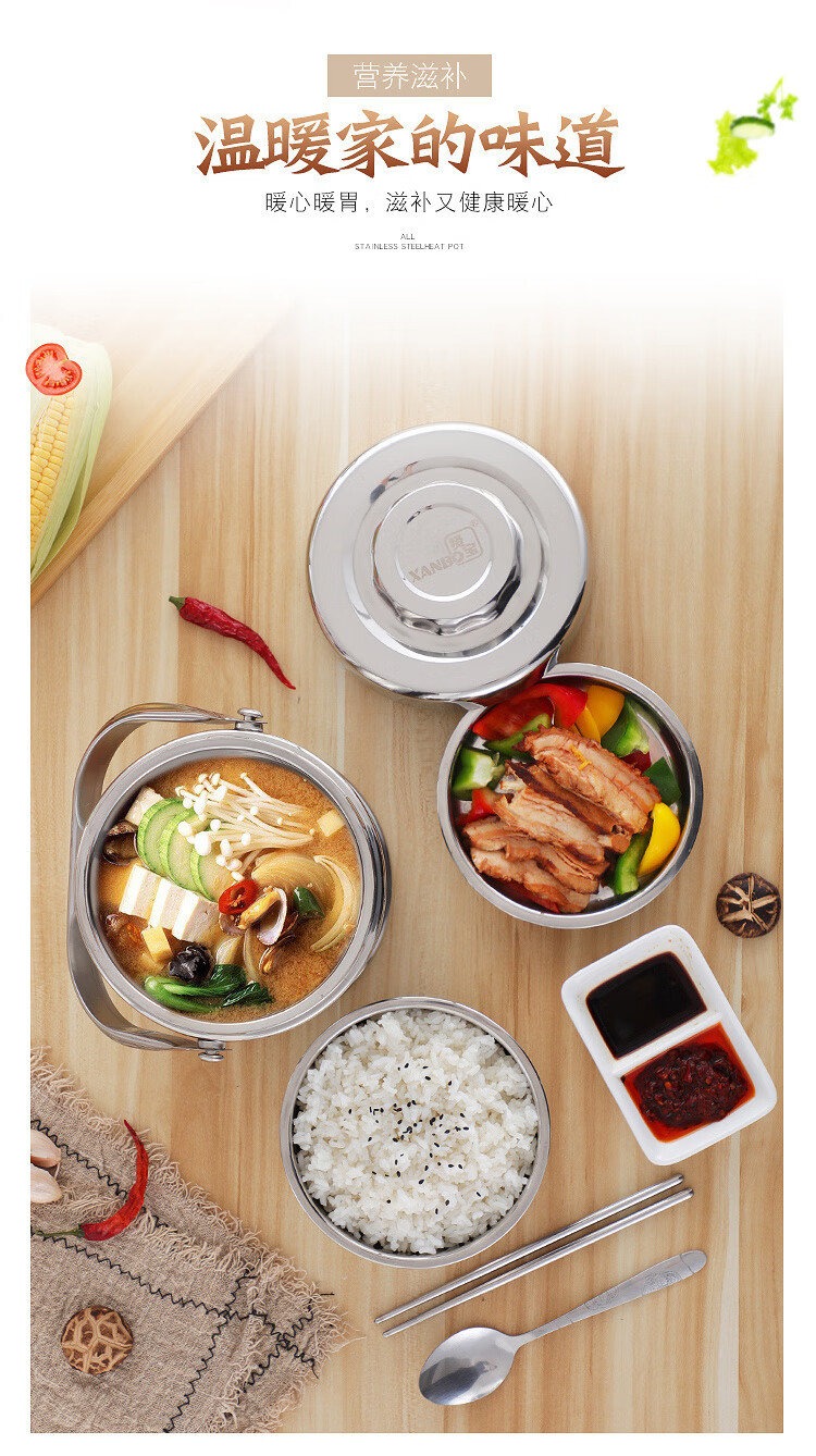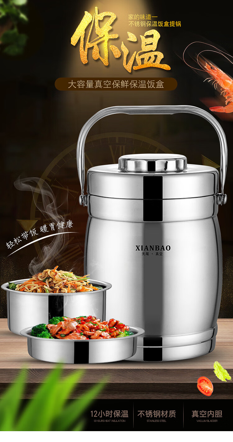 Qinkai Stainless Steel Insulated Lunch Box, Vacuum Extra Long Insulated Bucket, Multi-layered Spill-proof Rice Bucket, Portable for Work, Large Capacity, Three-layer Lunch Box with Chopsticks + Spoon, 2.0L Straight Type, Normal Insulated, 3 Hours to Eat for 1-2 People