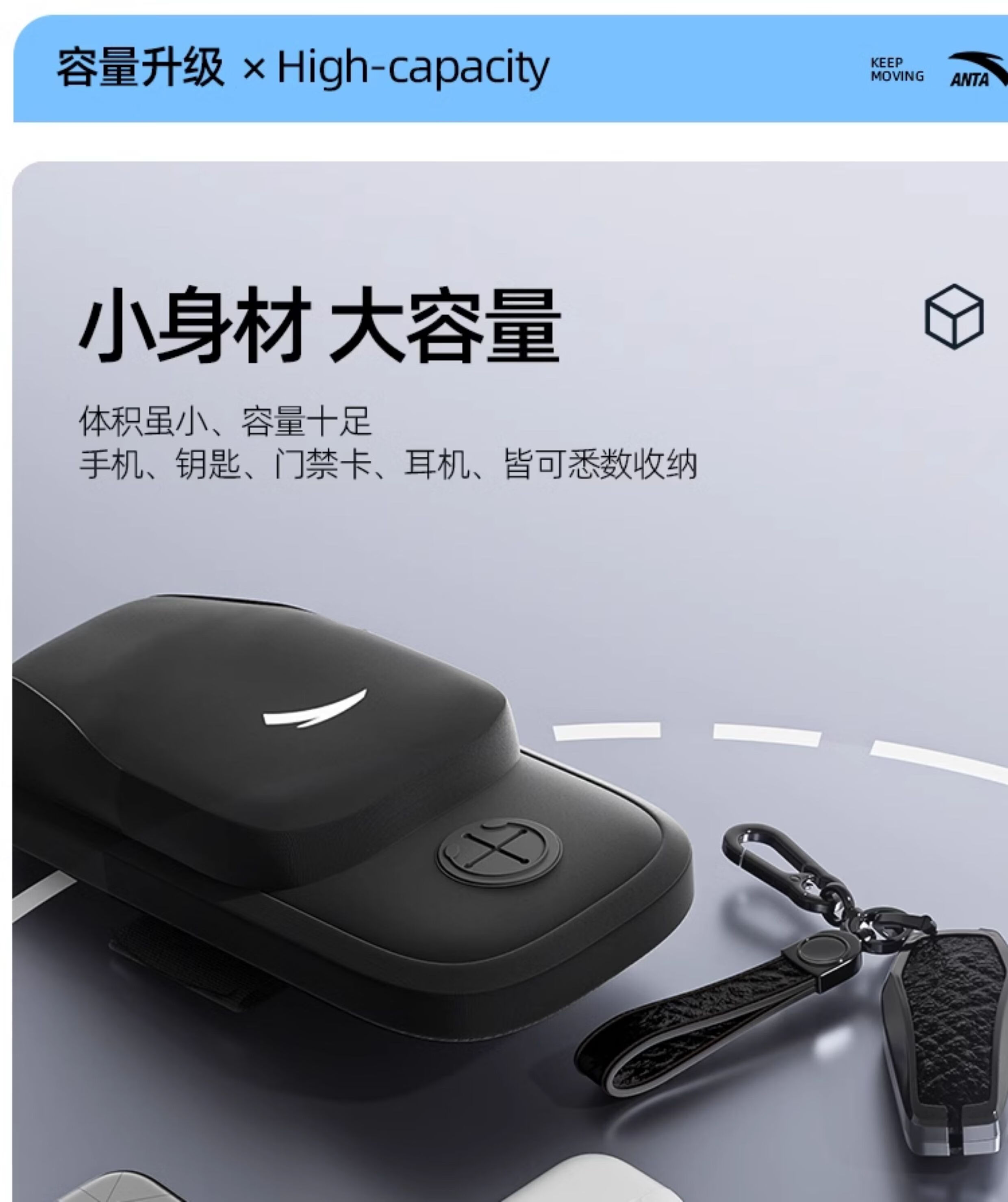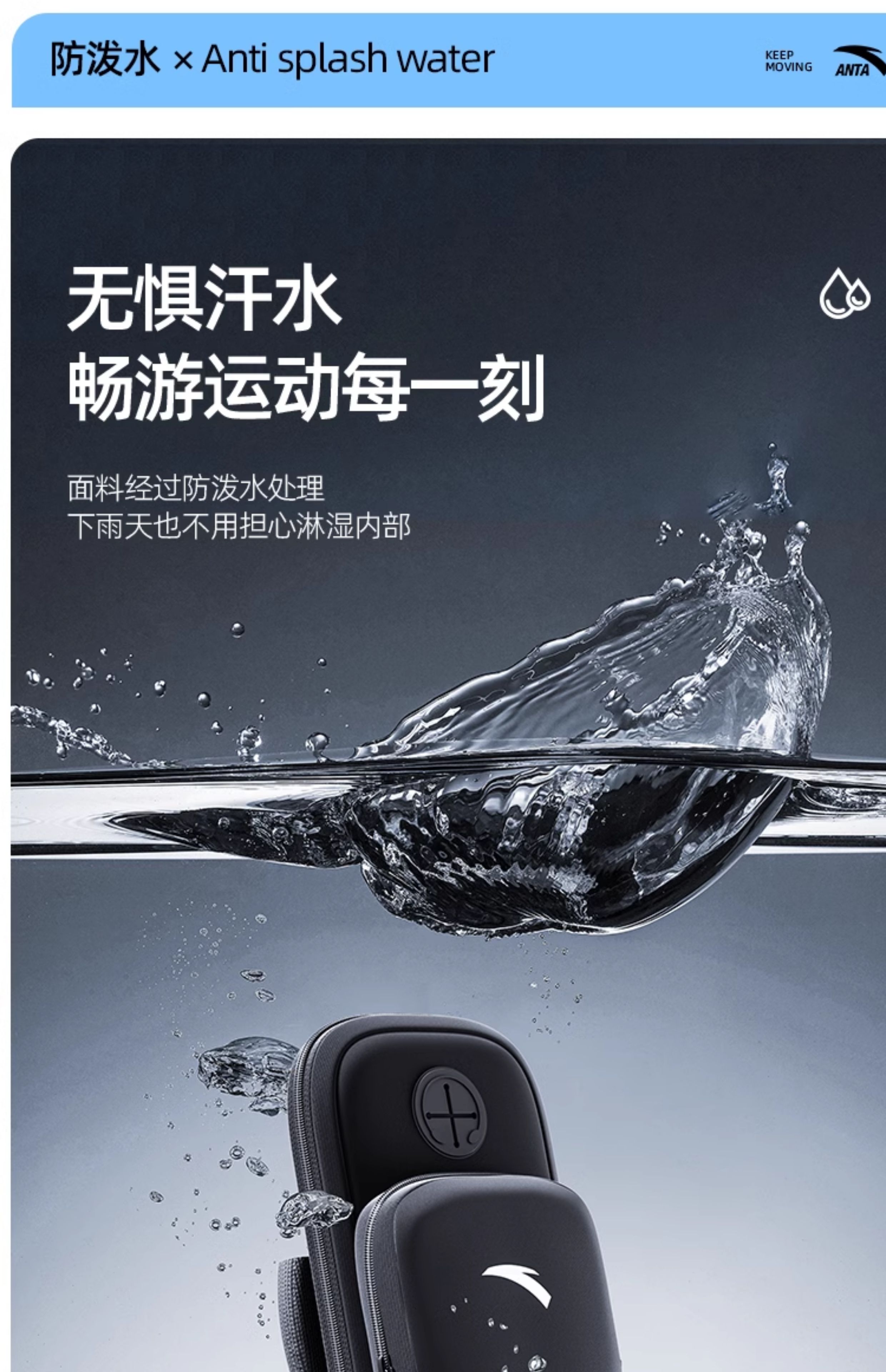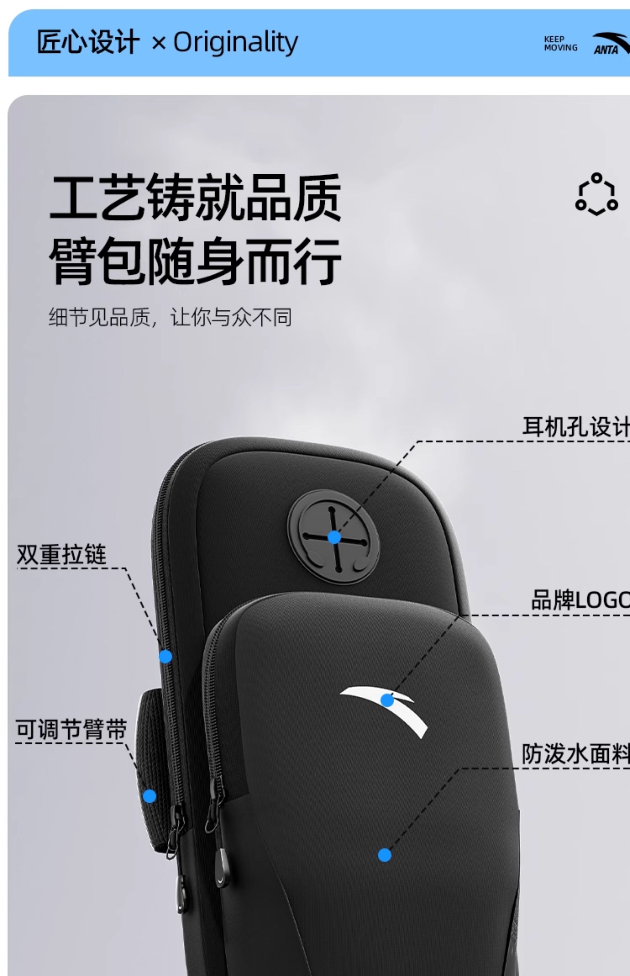 Anta running mobile phone arm bag carrying artifact men's and women's outdoor fitness and cycling storage bag waterproof bag black one size