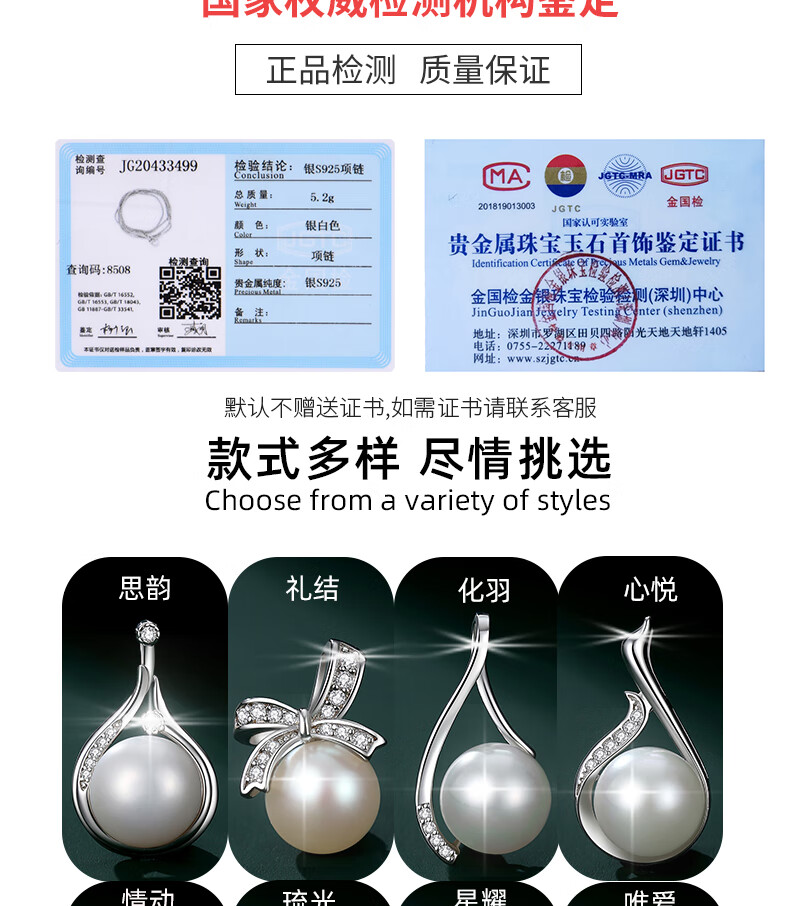 Century-old Fenxiang S925 silver pendant single pendant sterling silver necklace does not contain chain shell beads only single imitation pearl for women Yuesu