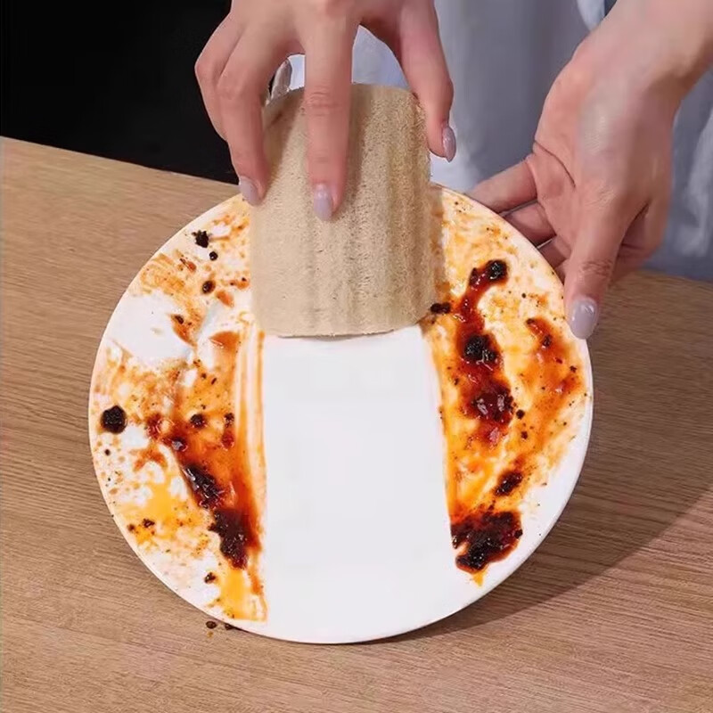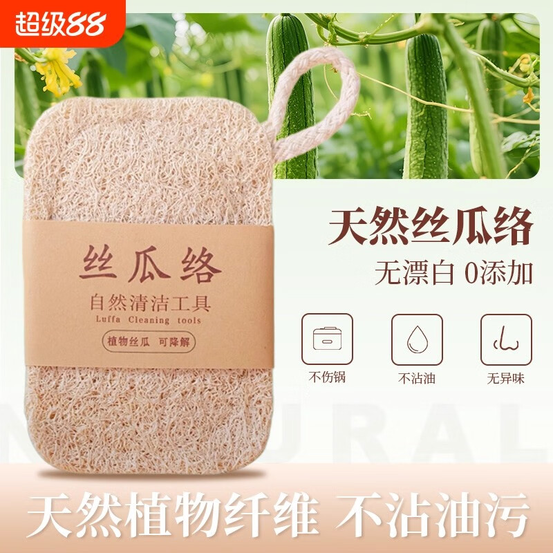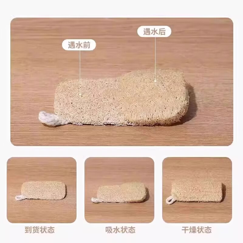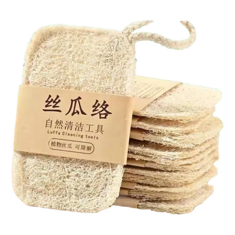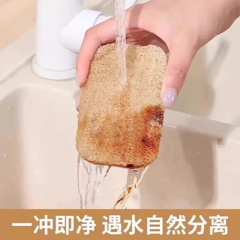 Loofah dishwashing pot loofah pulp natural cup brush housework kitchen durable non-stick oil sponge cleaning brush artifact loofah sheet with rope double layer 7 11 cm 1 piece