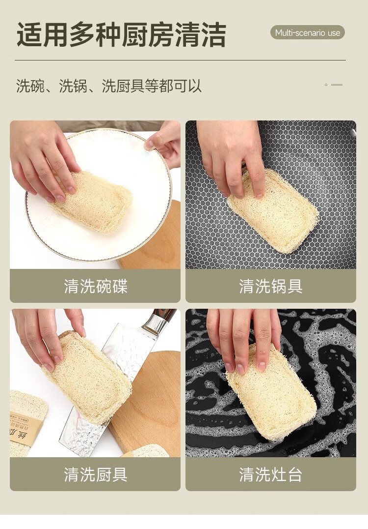 Loofah pulp dishwashing scouring pad x natural loofah dishwashing towel, dishwashing artifact, loofah dishwashing tool that does not stick to oil, loofah sheet with rope, single layer 7 10 cm, 1 piece