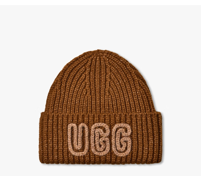 UGG new autumn style women's fashionable and comfortable solid color LOGO thick ribbed beanie casual knitted hat 102345 DEC | Decker Brown O/S