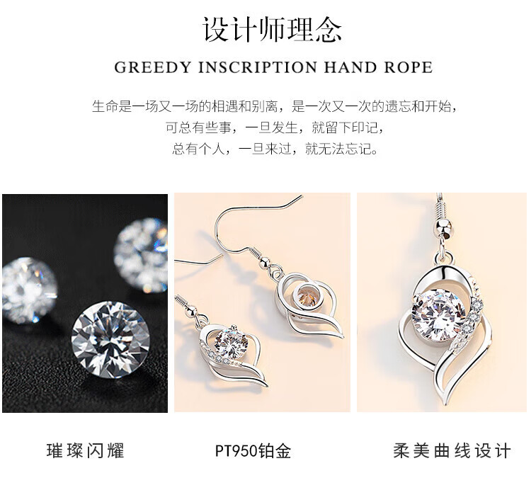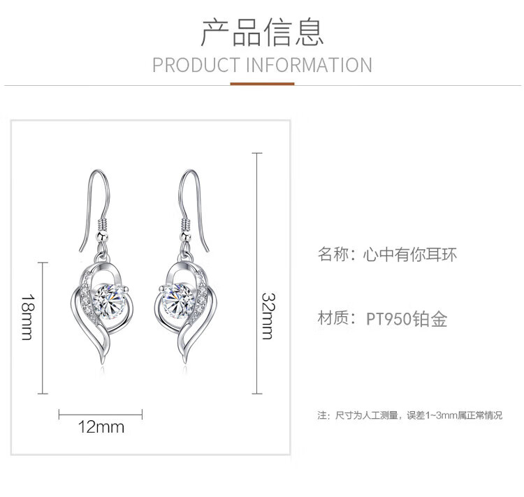 PT950 platinum earrings, platinum ear studs and earrings, Valentine's Day birthday gift, platinum earrings... light luxury style earrings with you in my heart