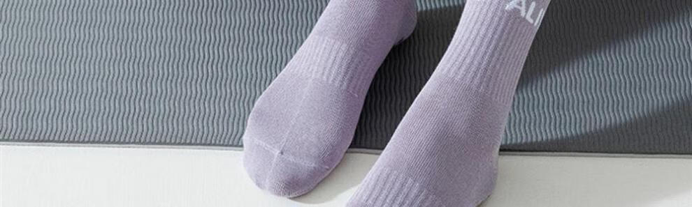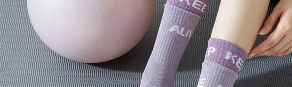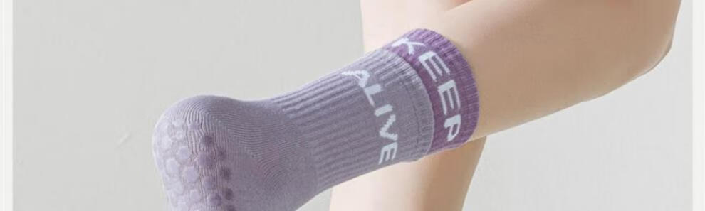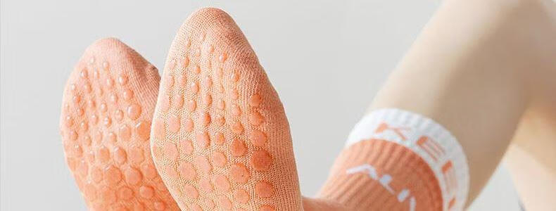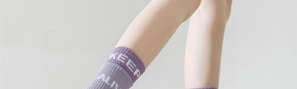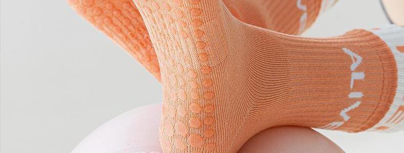 BIBK German quality Pilates yoga socks for women spring and summer thin mid-calf non-slip fitness sports floor socks with shark pants small size 33-37 size purple + orange