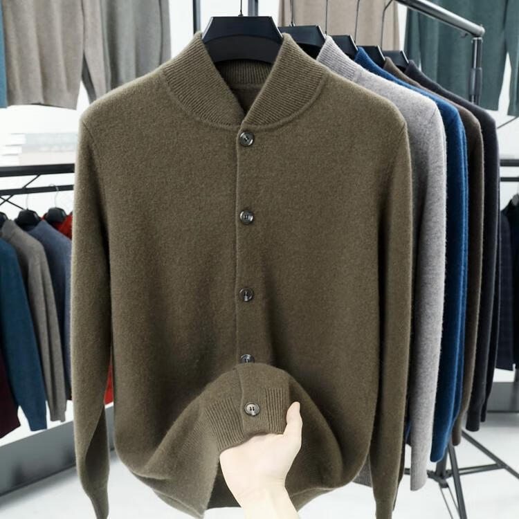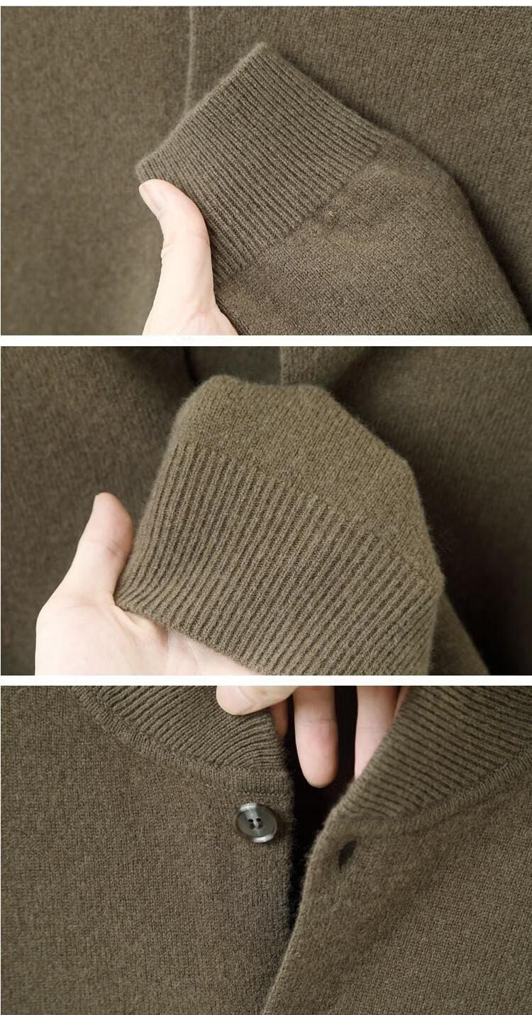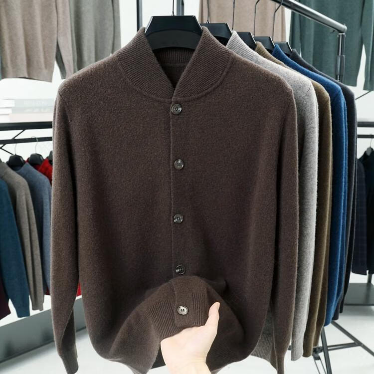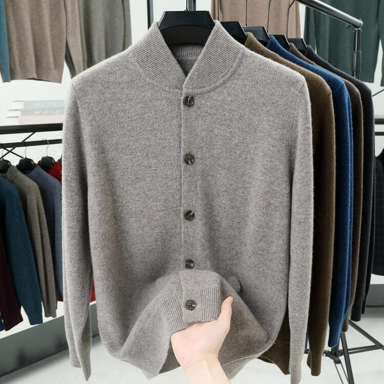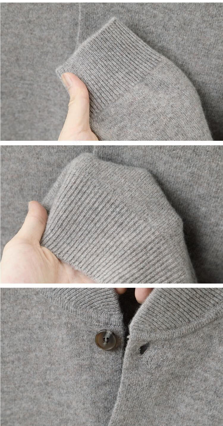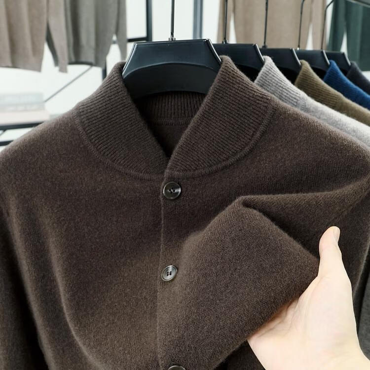 Hengyuanxiang high-end 100% wool sweater casual men's knitted cardigan autumn and winter warm woolen baseball stand collar jacket sweater Gray Camel 100% non-pilling S 165100% non-pilling 100% non-pilling
