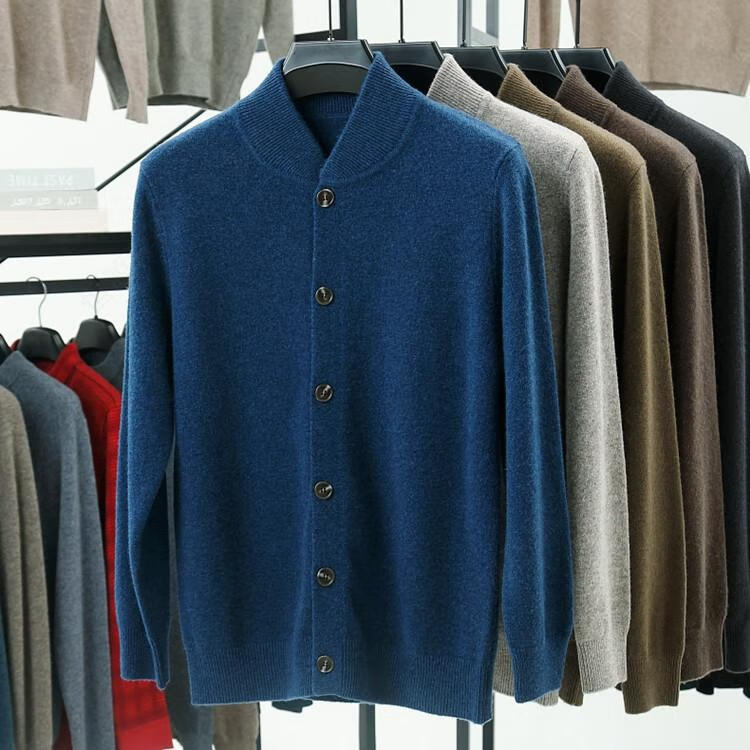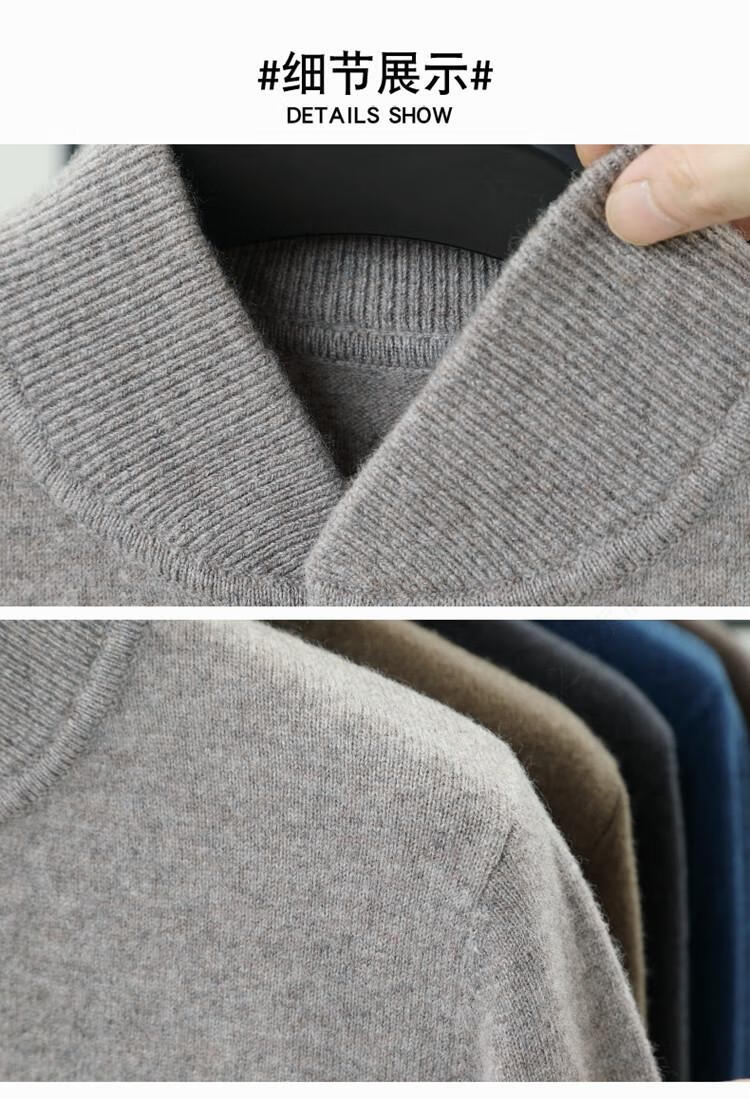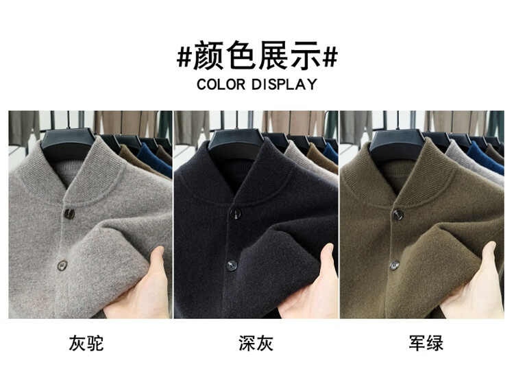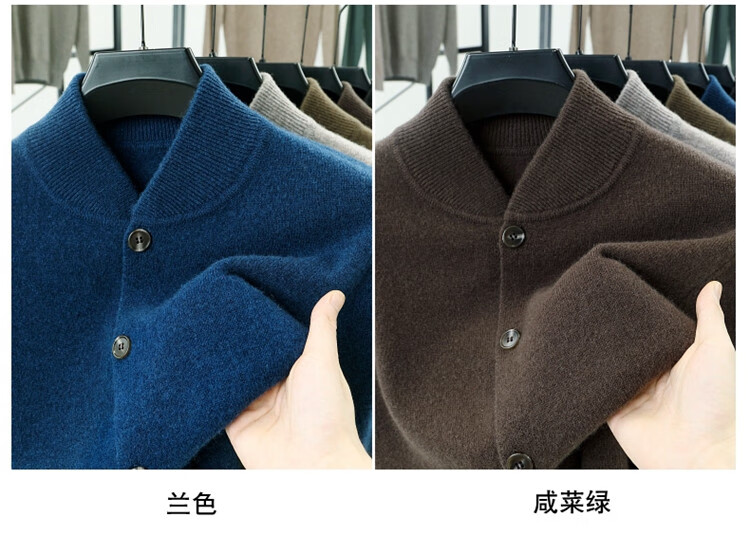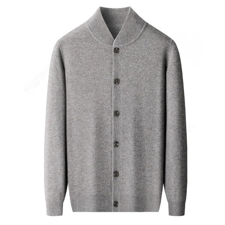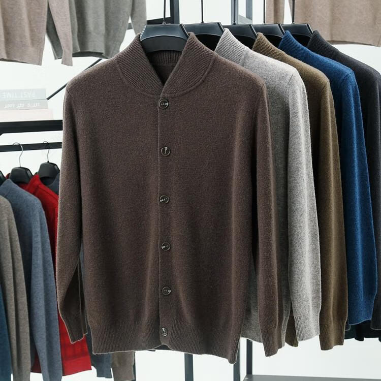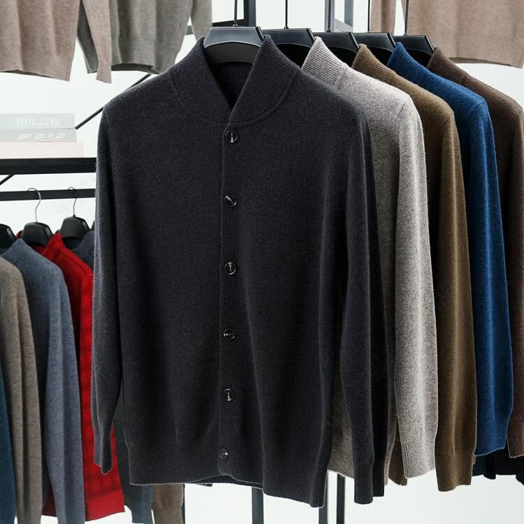 Hengyuanxiang high-end 100% wool sweater casual men's knitted cardigan autumn and winter warm woolen baseball stand collar jacket sweater Gray Camel 100% non-pilling S 165100% non-pilling 100% non-pilling