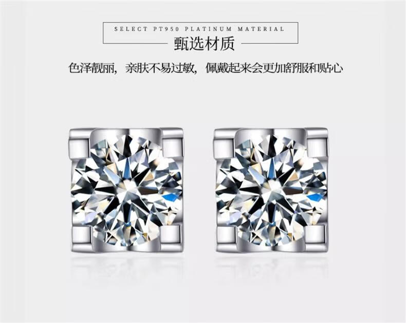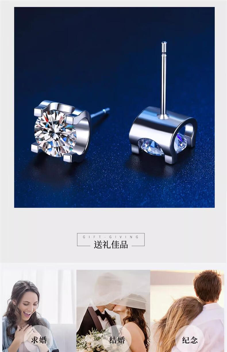 Platinum pt950 earrings D color moissanite white gold earrings earrings bull head studs women's wedding gift 50 points bull head earrings light luxury style