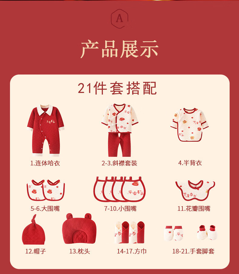 Xinnan Baby Clothes Summer and Autumn Newborn Gift Box Set Newborn Baby Full Moon Meeting Gift Supplies Collection Peace and Joy-Four Seasons 21-piece Set 59cm (Suitable for 0~3 Months) Newborn Gift/Full Moon Gift