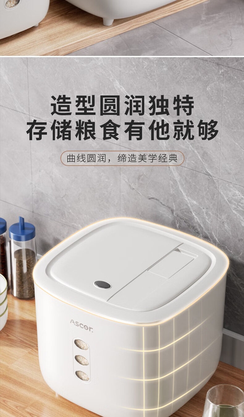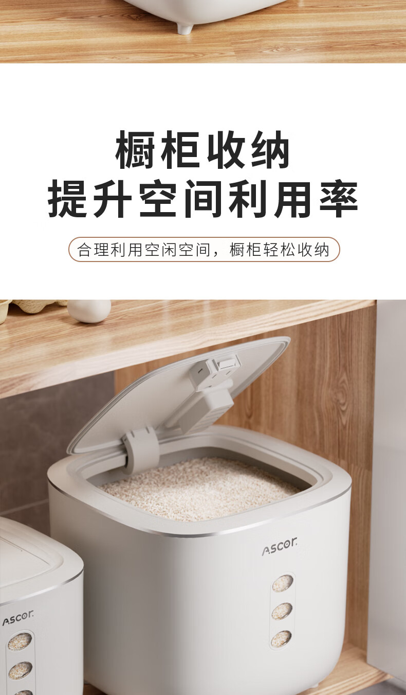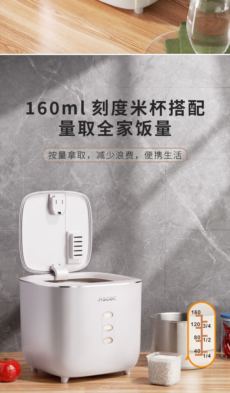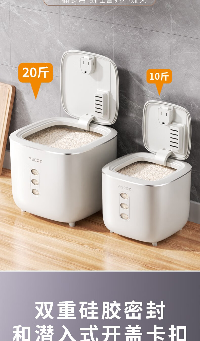 Axco food-grade special rice bucket 20 Jin Jin equals 0.5 kg. 2025 new insect-proof and moisture-proof sealed rice cylinder large capacity flour household square rice bucket 20 Jin Jin equals 0.5 kg. Free measuring cup