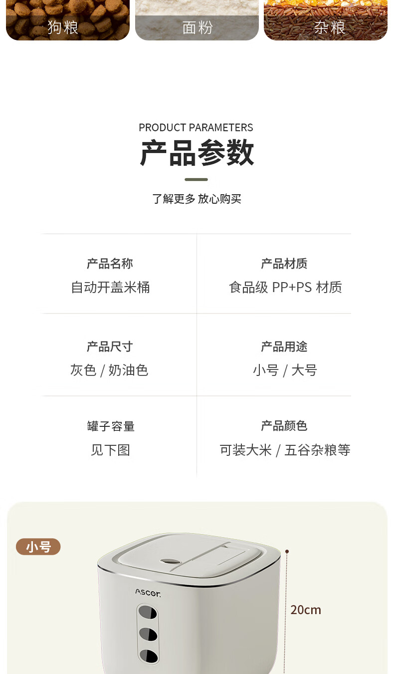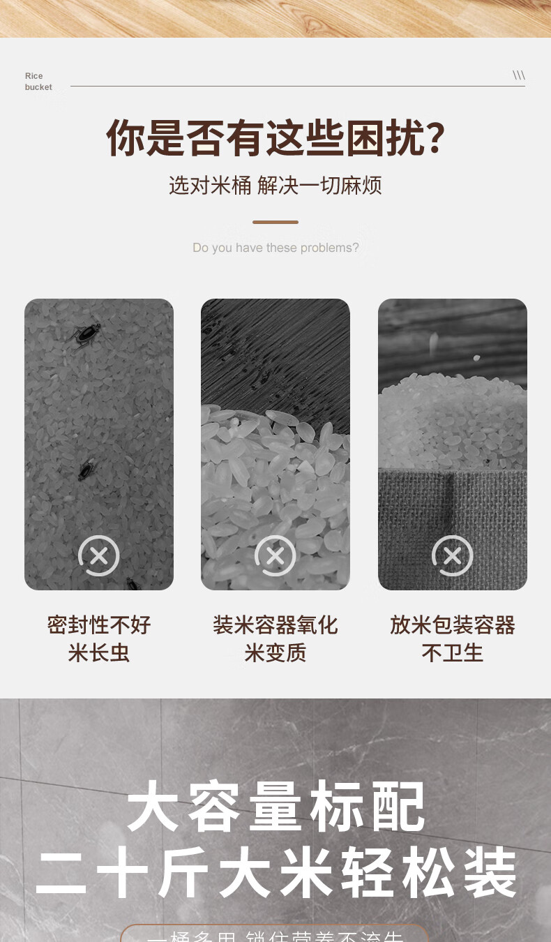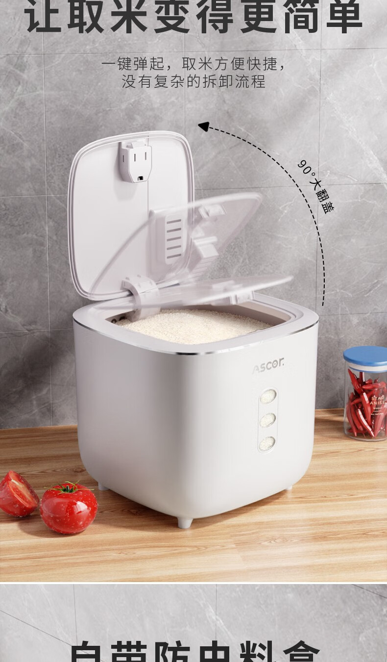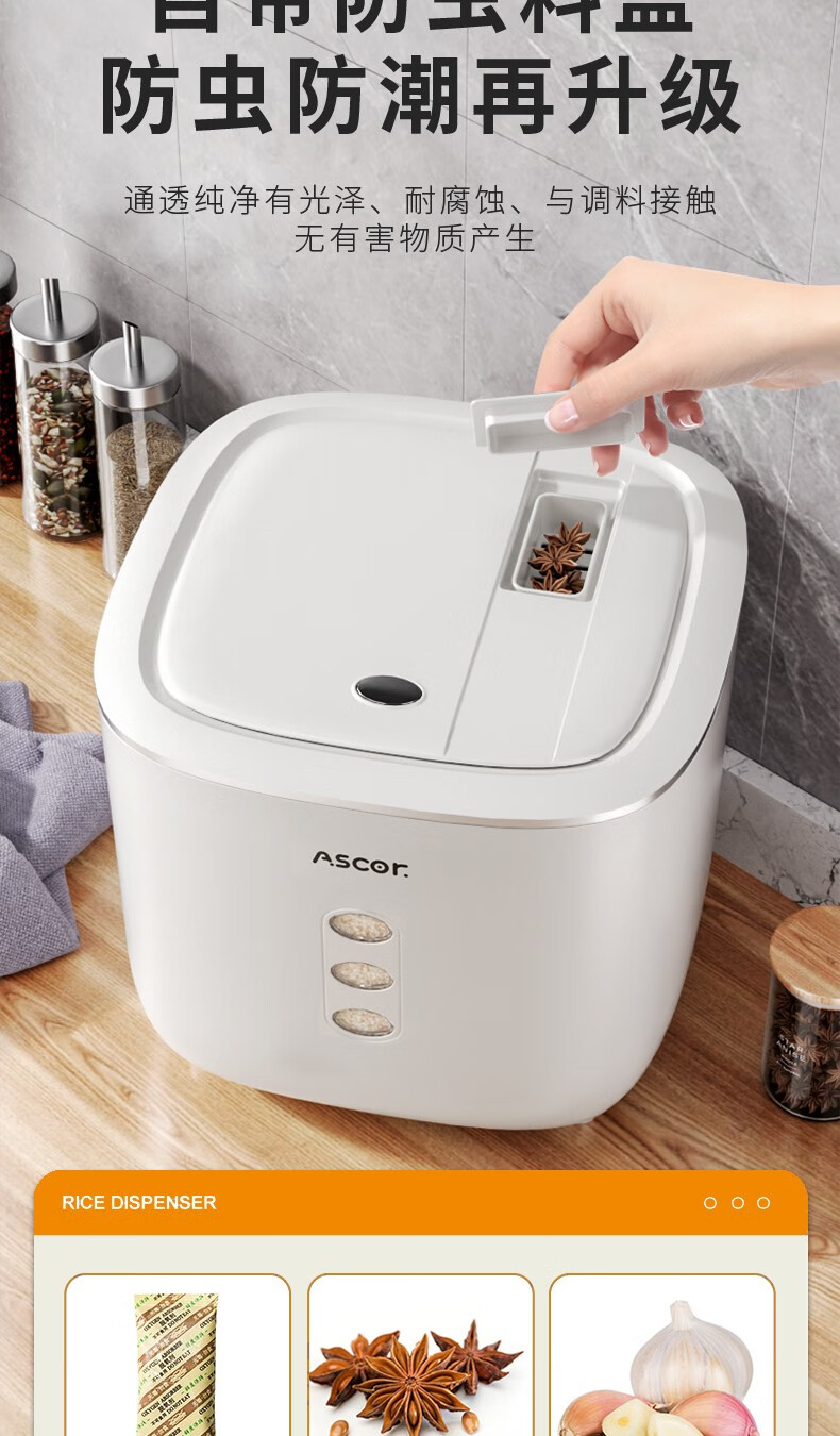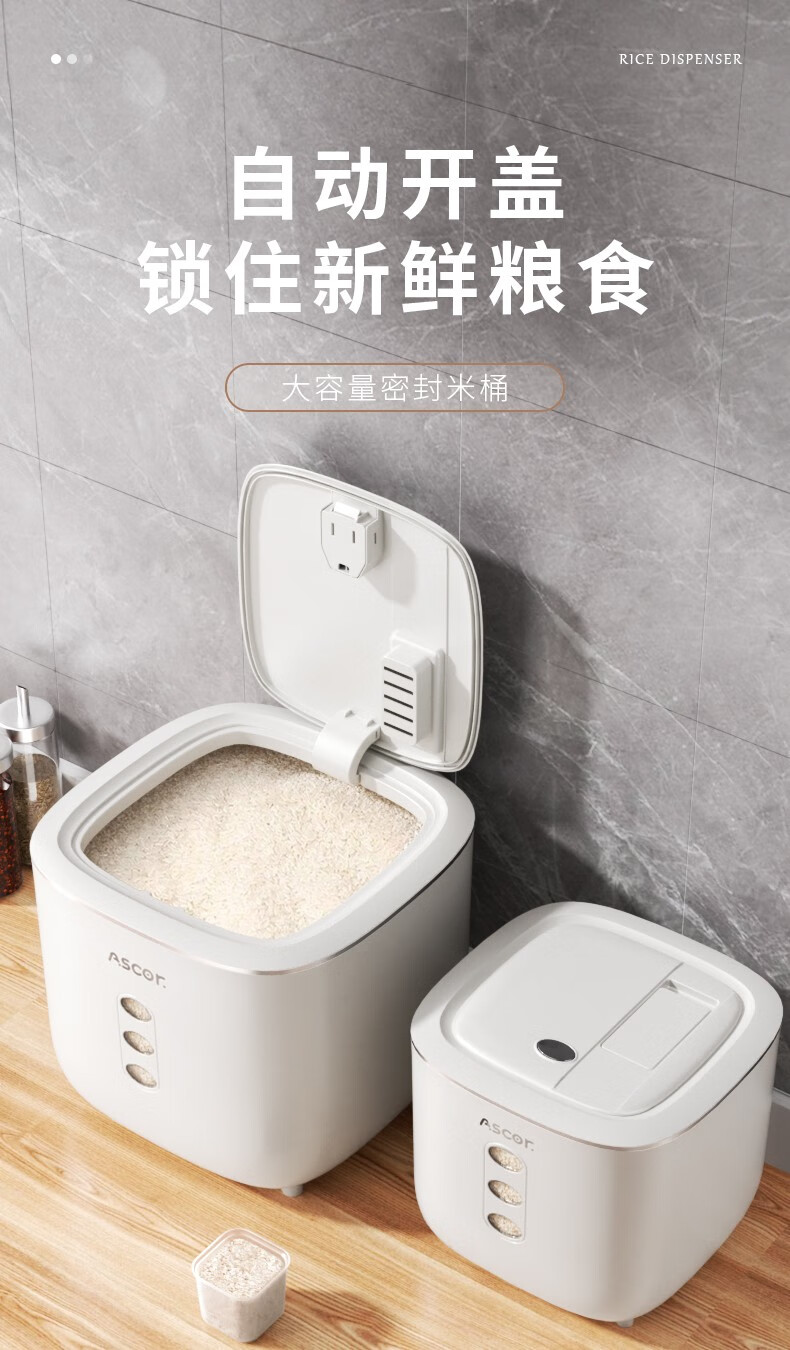 Axco food-grade special rice bucket 20 Jin Jin equals 0.5 kg. 2025 new insect-proof and moisture-proof sealed rice cylinder large capacity flour household square rice bucket 20 Jin Jin equals 0.5 kg. Free measuring cup