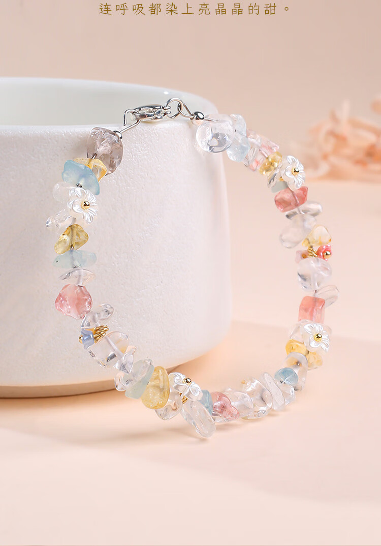 Chenshi Dopamine Colored Crystal Bracelet Gravel Bracelet String Niche Exquisite Women's Bracelet Comes with Certificate