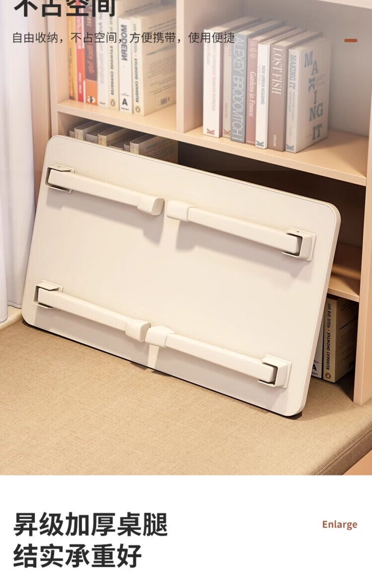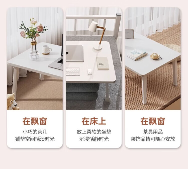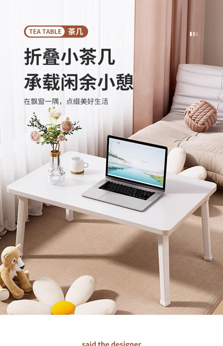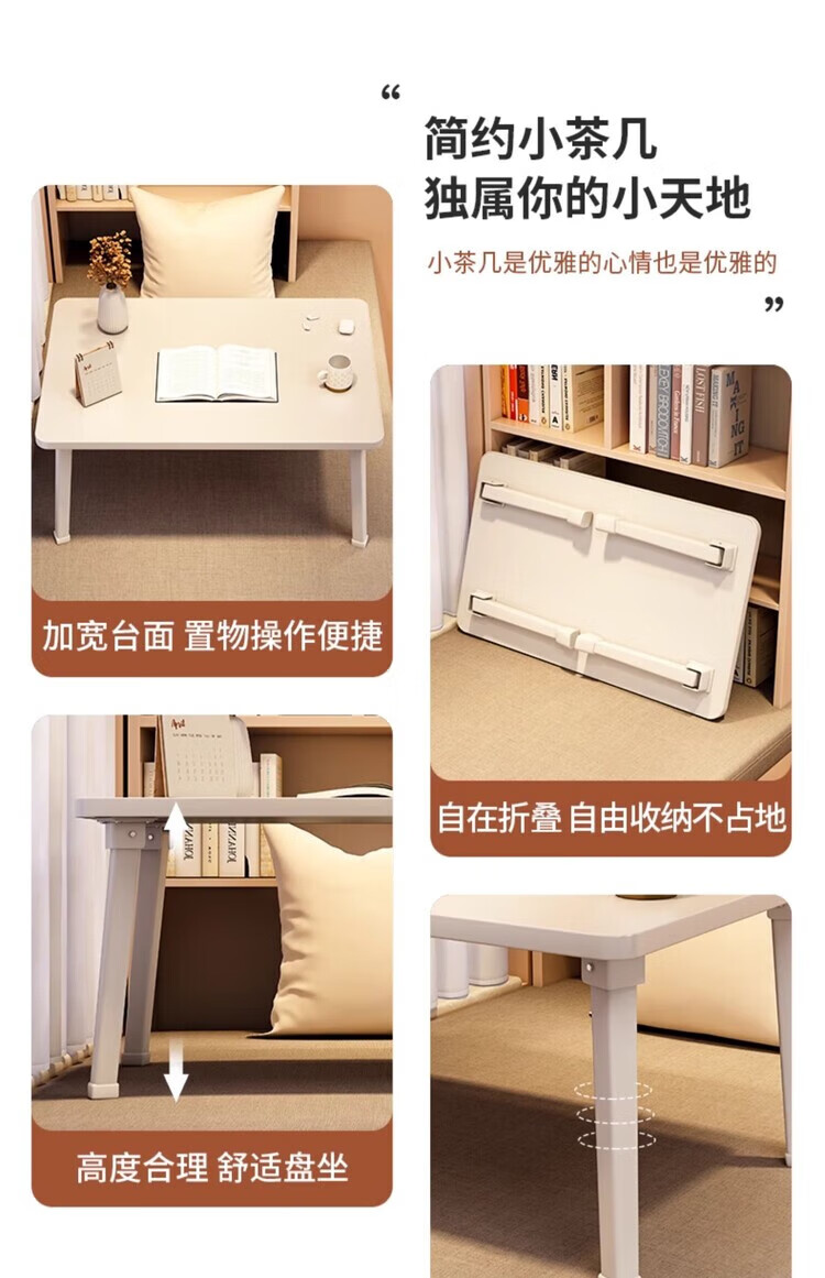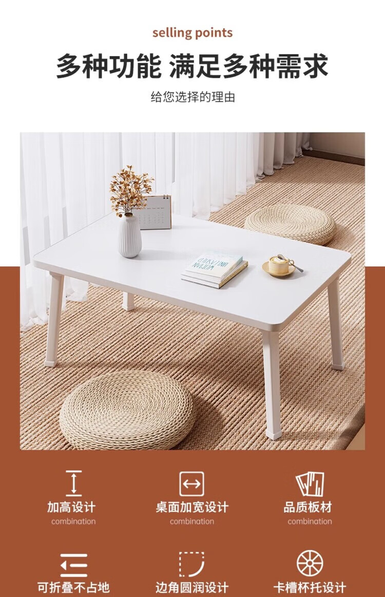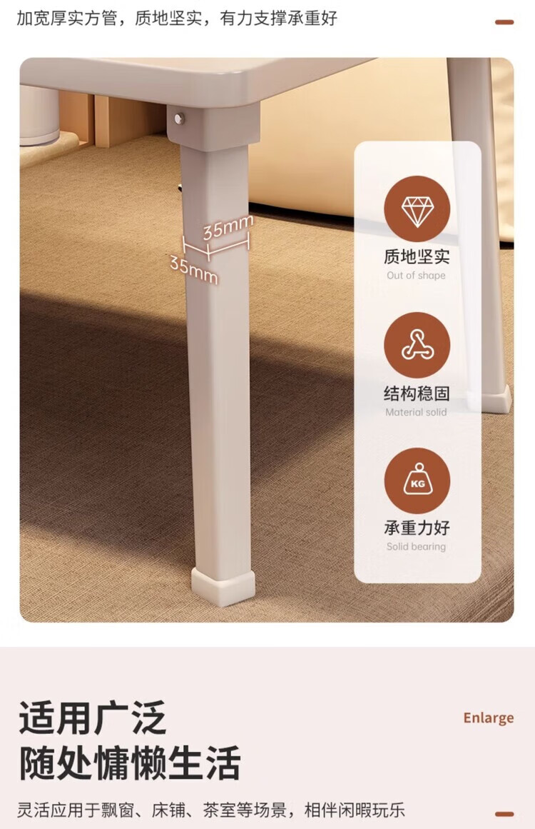 Tatami small table, bay window, household tea table, foldable tea table, bedroom kang table, balcony, extra large bed desk, extra large and wide model, pearl white 80*60*35CM