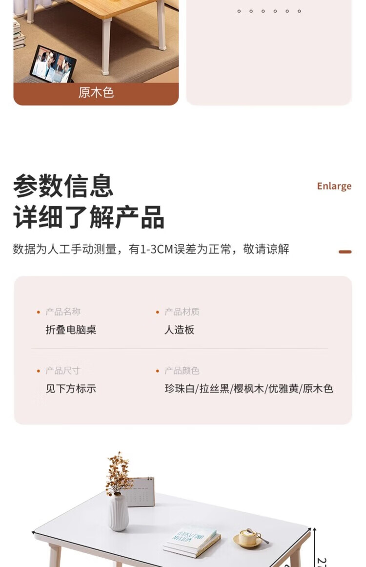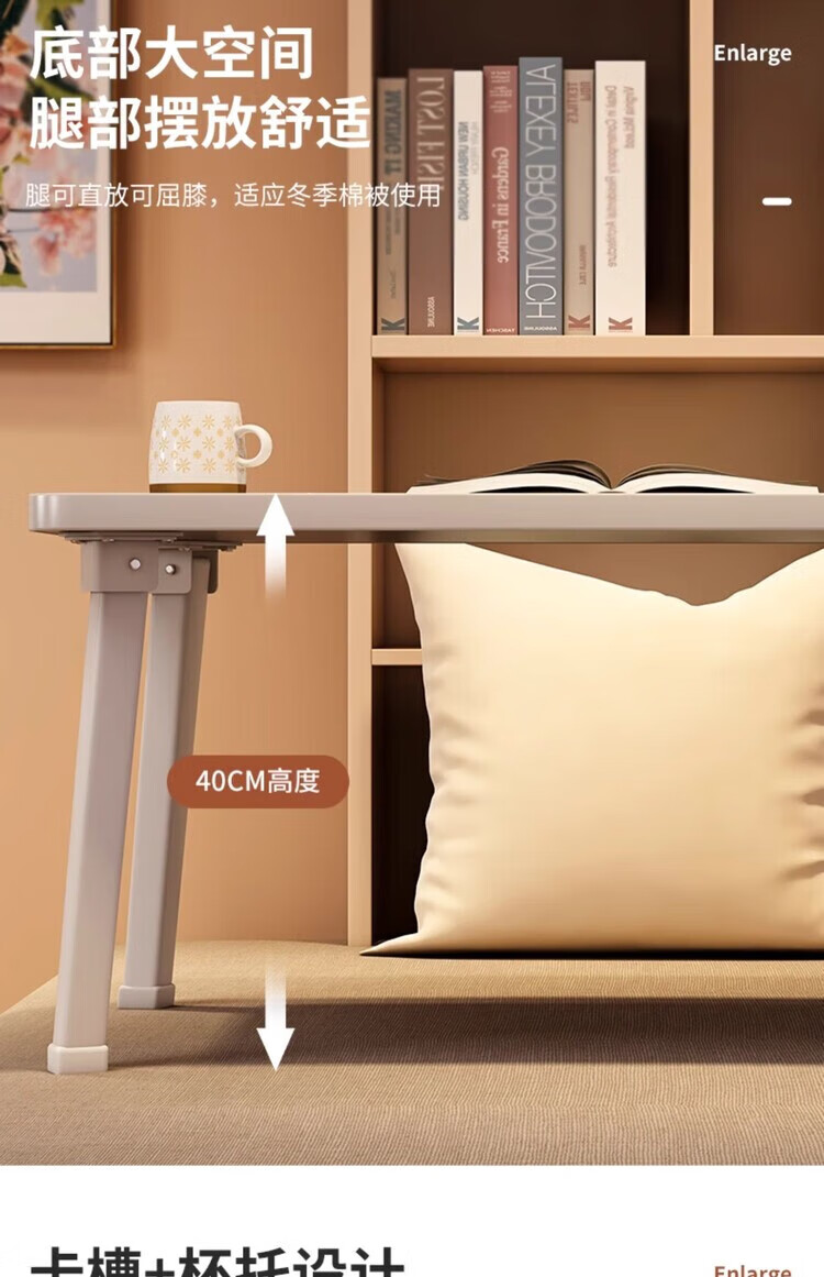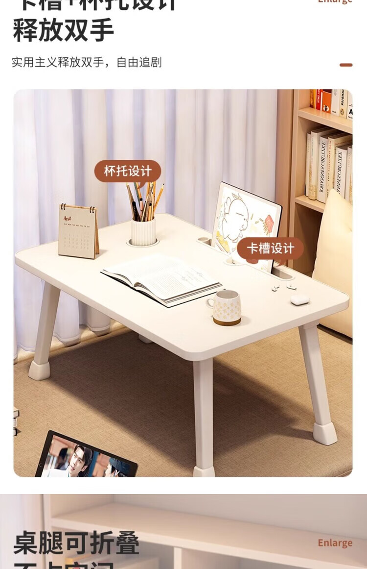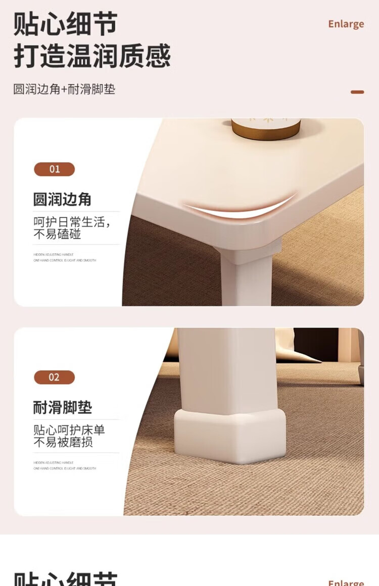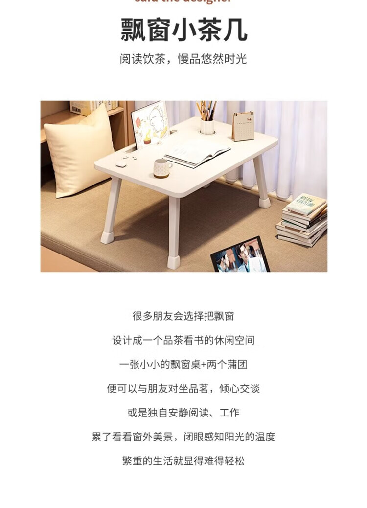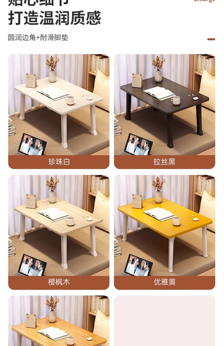 Tatami small table, bay window, household tea table, foldable tea table, bedroom kang table, balcony, extra large bed desk, extra large and wide model, pearl white 80*60*35CM