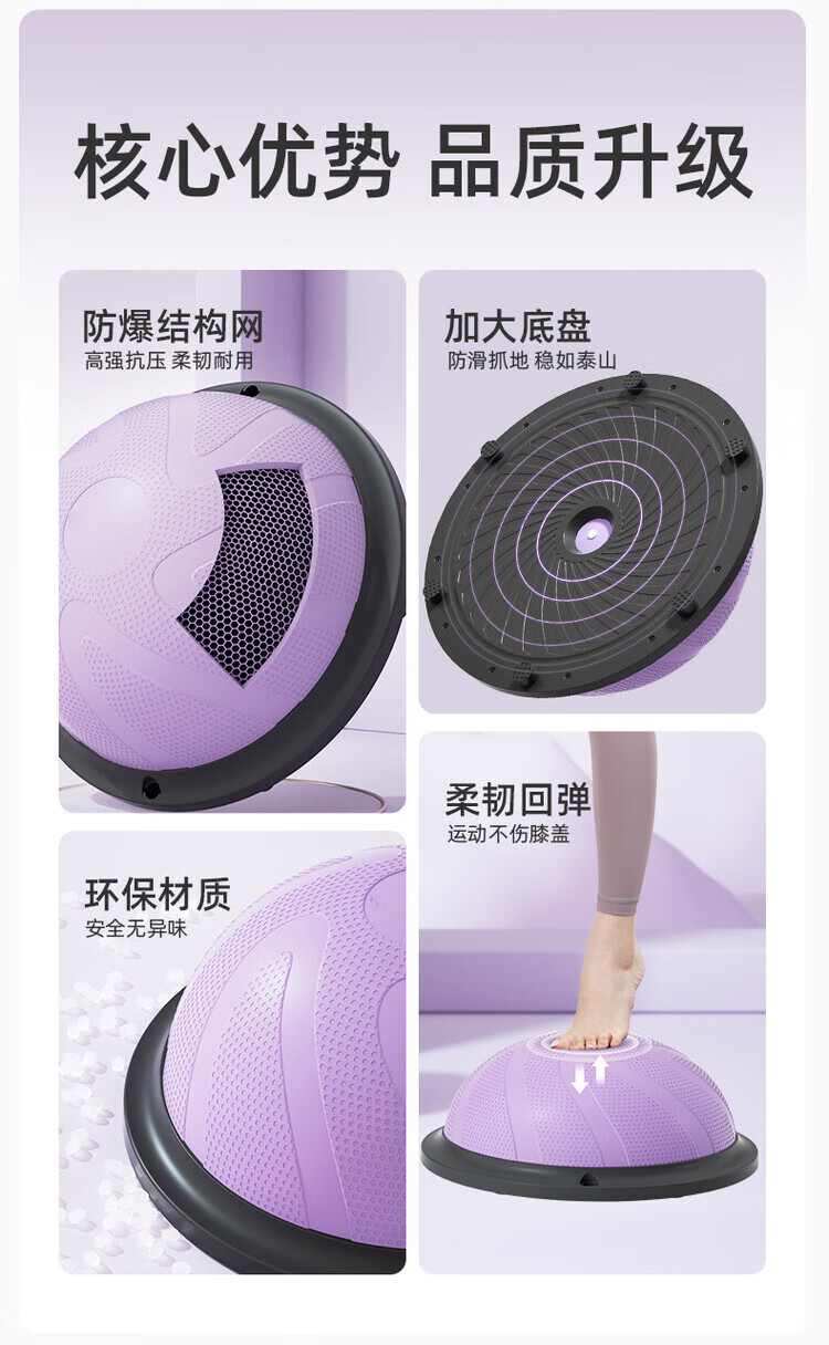 Xulin German Children's Wave Speed Ball Semi-circular Balance Ball Indoor Sensory Training Hemisphere Core Trainer Thickened Explosion-proof Bright Yellow 46cm-Crescent Model
