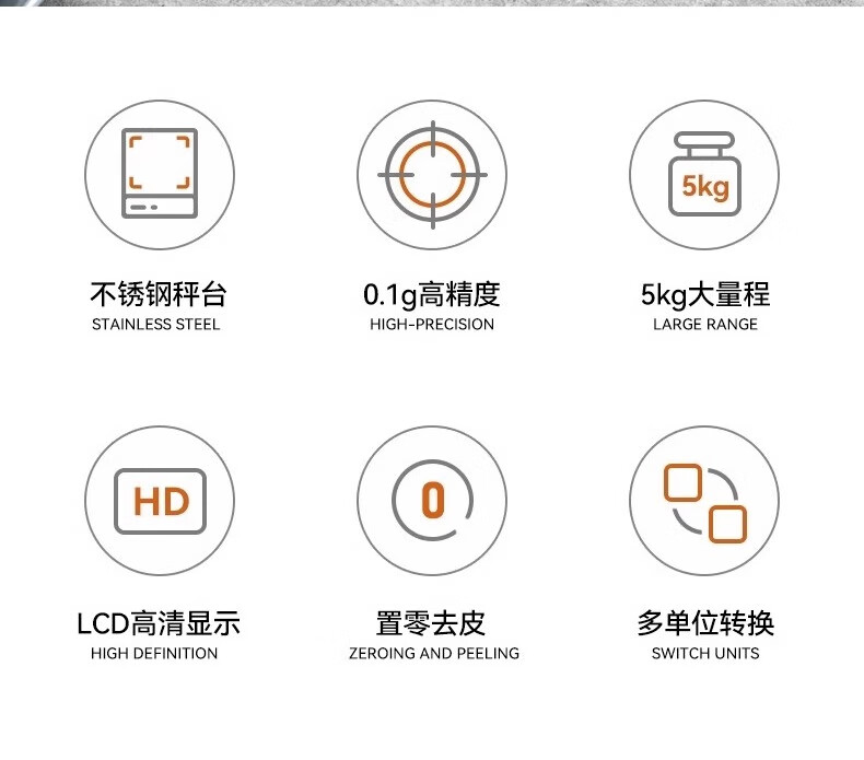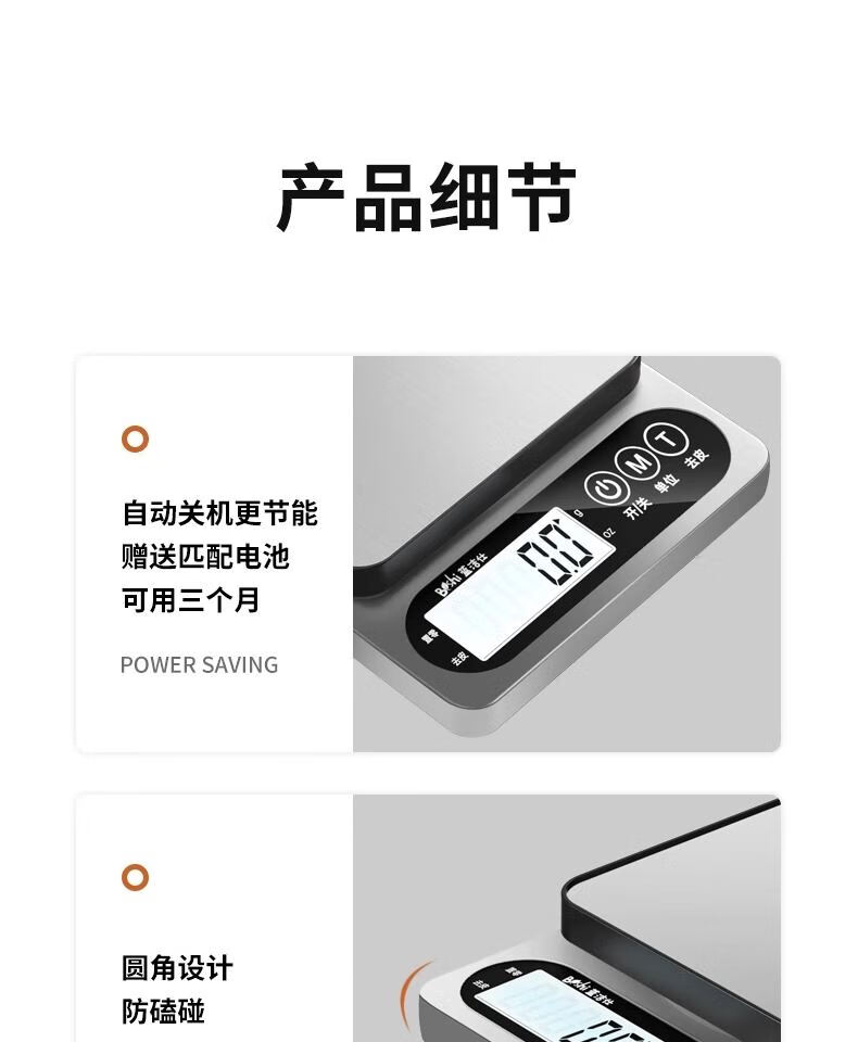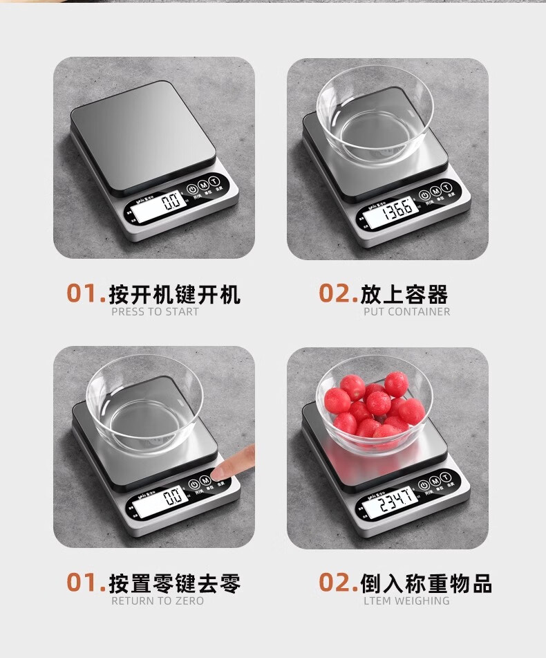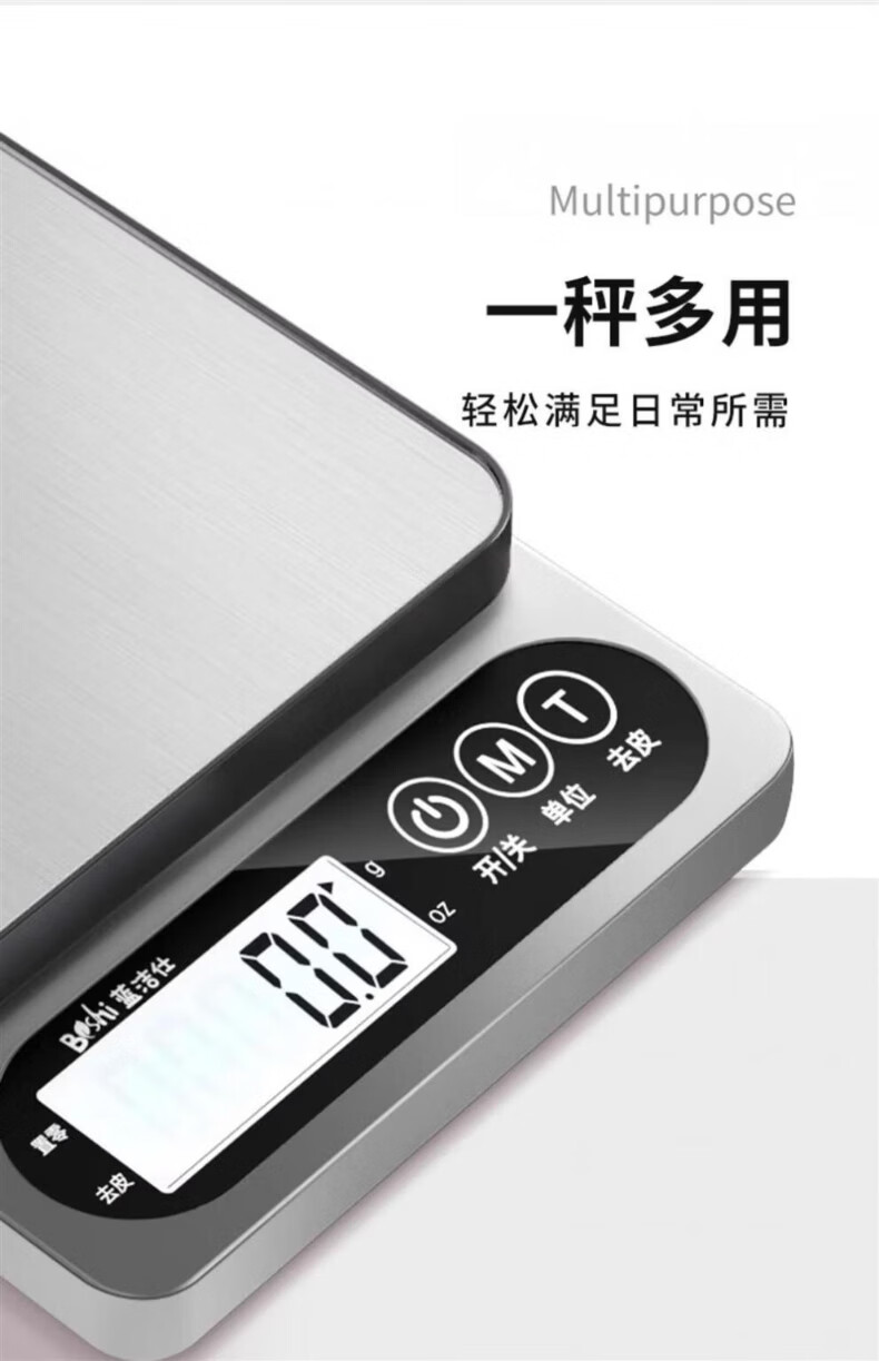 JCZS German kitchen electronic scale 2025 new high-precision household and commercial baking scale fast charging version Type-C fast charging 5kg/0.1g (send tray