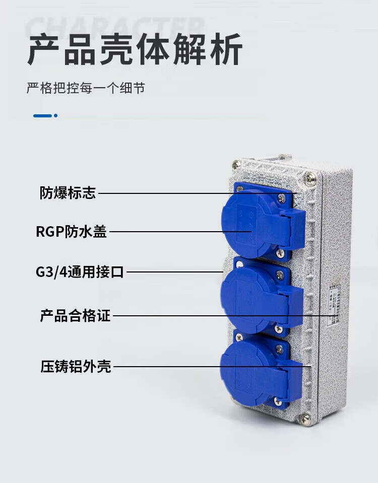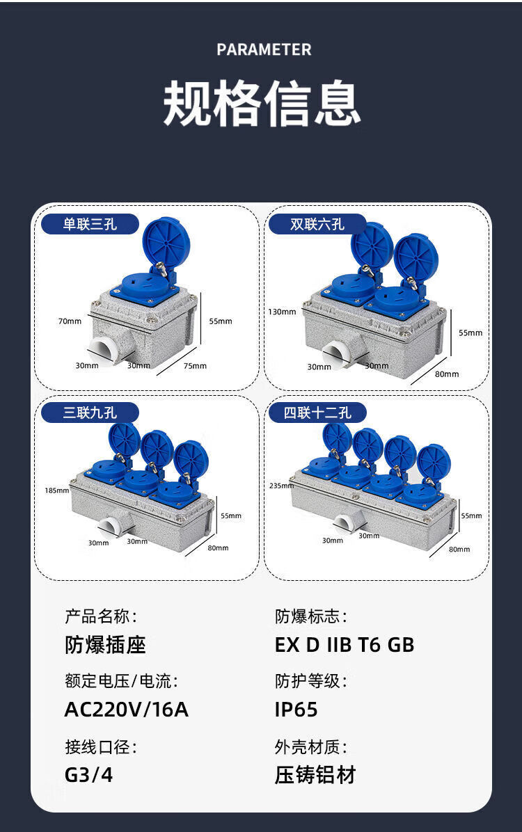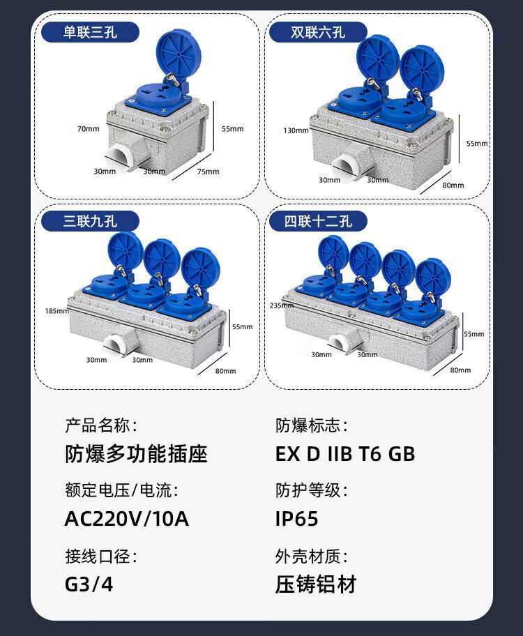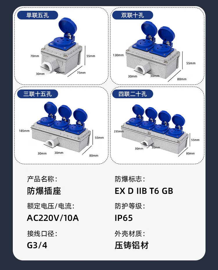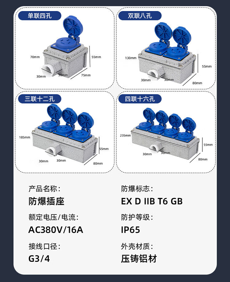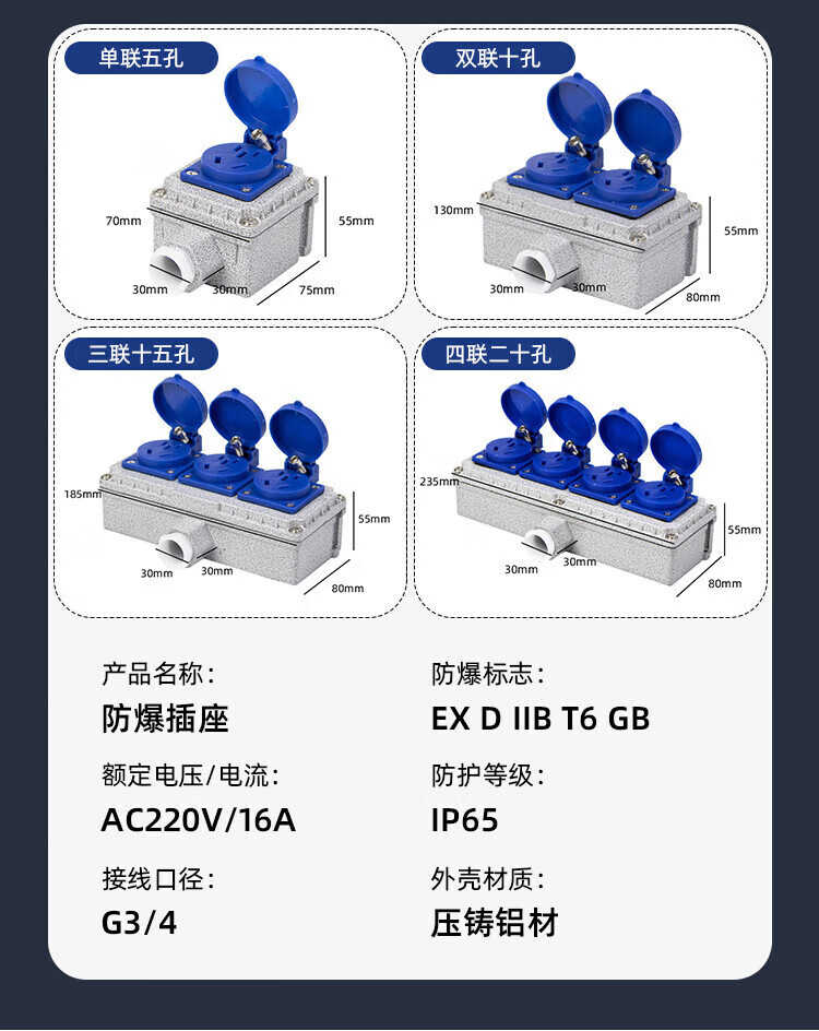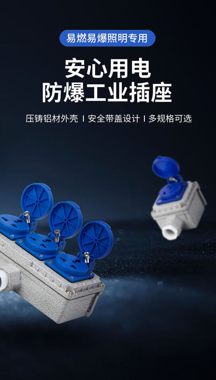 Explosion-proof socket 220V five-hole 10A/16A exposed and concealed 86 type industrial waterproof three-hole outdoor wiring board 5 sockets explosion-proof socket 16A quadruple 20 holes national standard