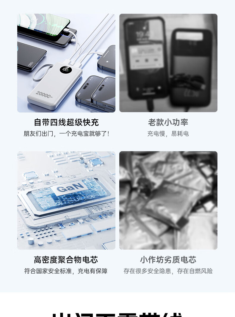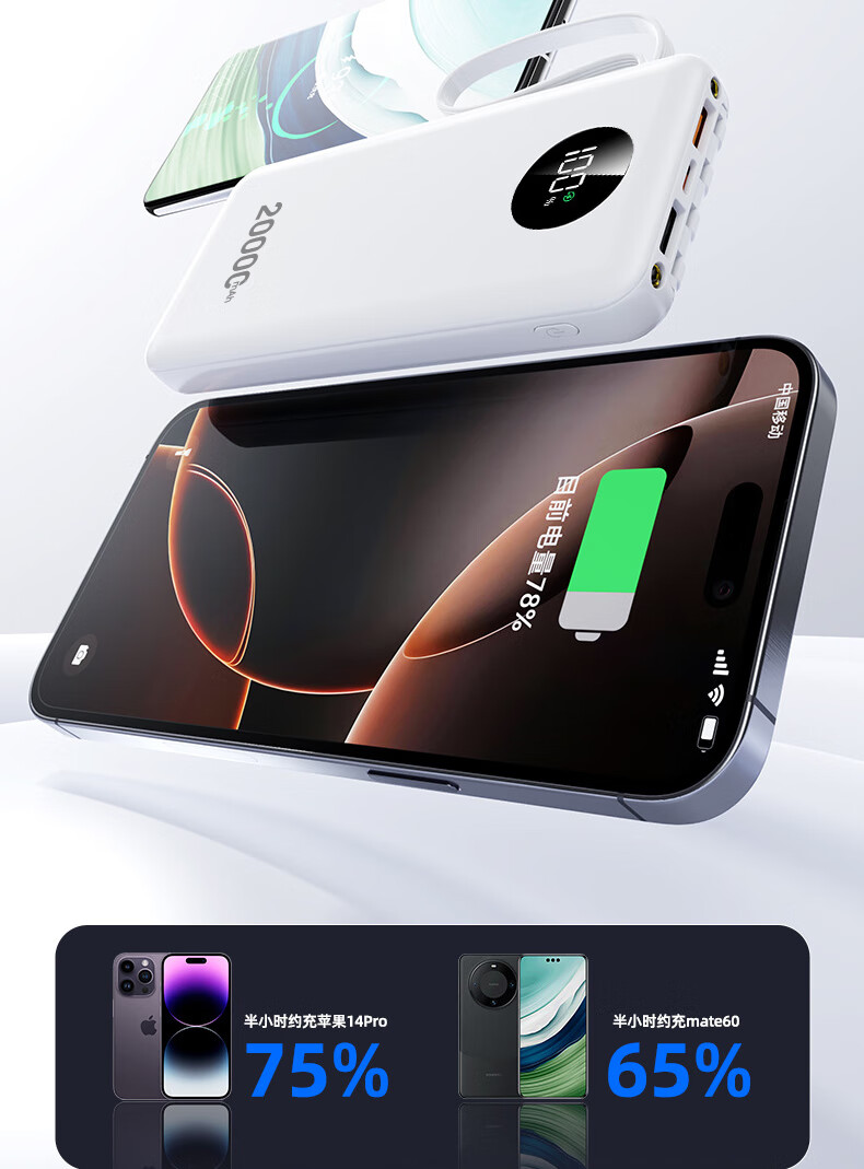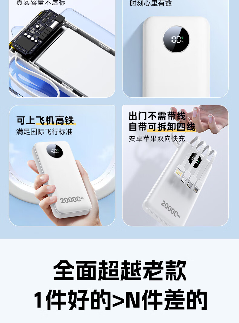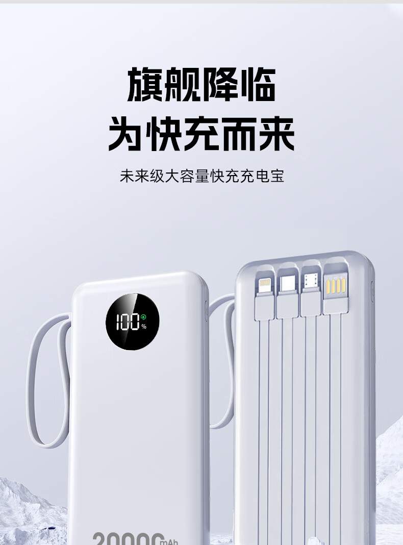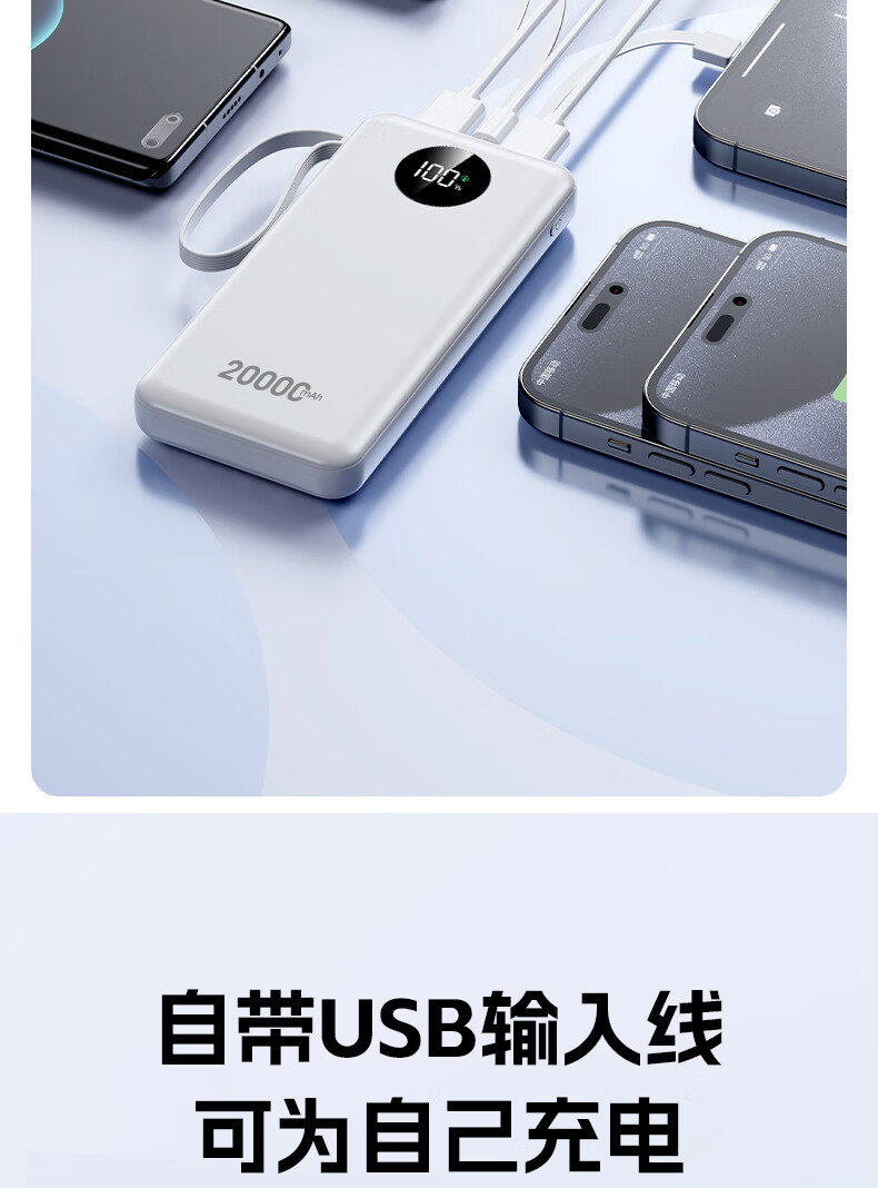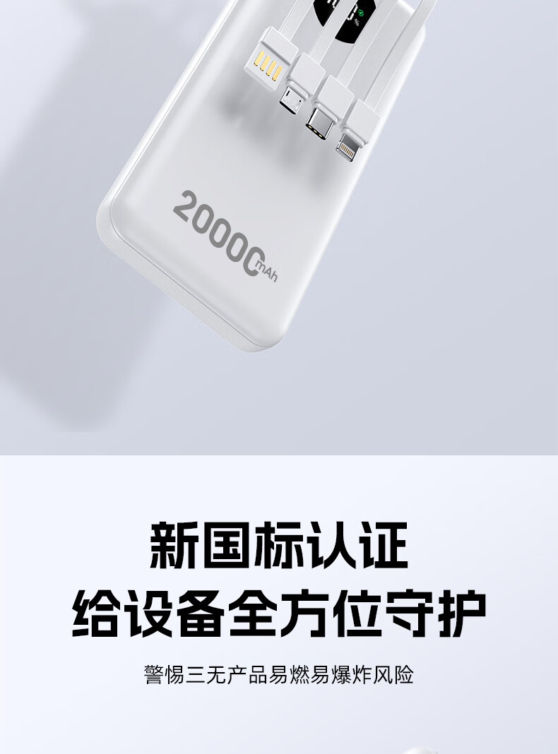 Jiabolan National Standard 3C Dual Certification丨20000 mAh Suitable for Xiaomi Power Bank 120W Fast Charging Ultra Large Capacity Fast Charging Comes with Cord Portable Power Bank for Aircrafts Top Edition Haoyue White 120W Super Fast Charging + Comes with Four Cords 3C National Standard Certification 20000 mAh Can Be Used on Aircrafts