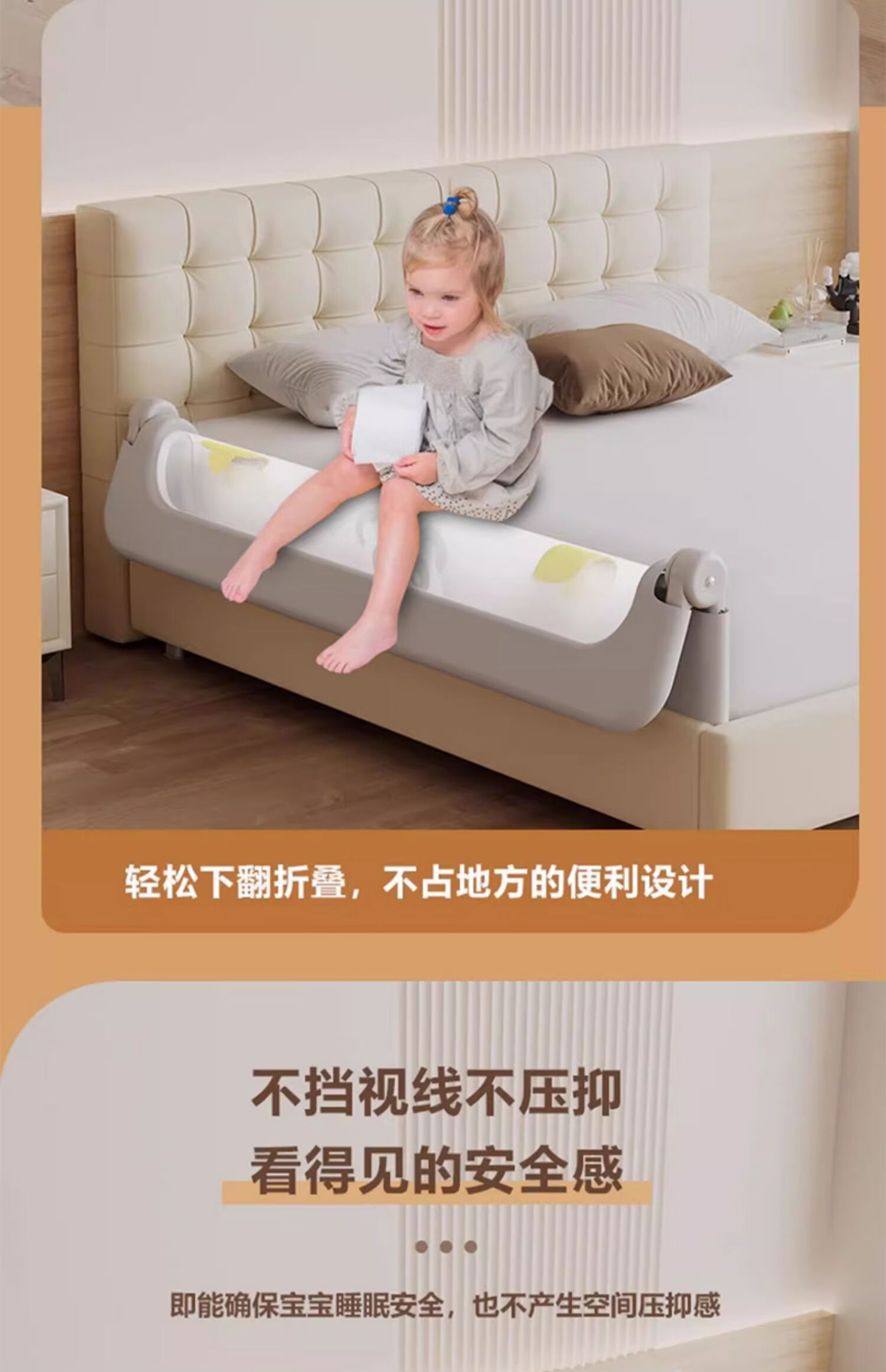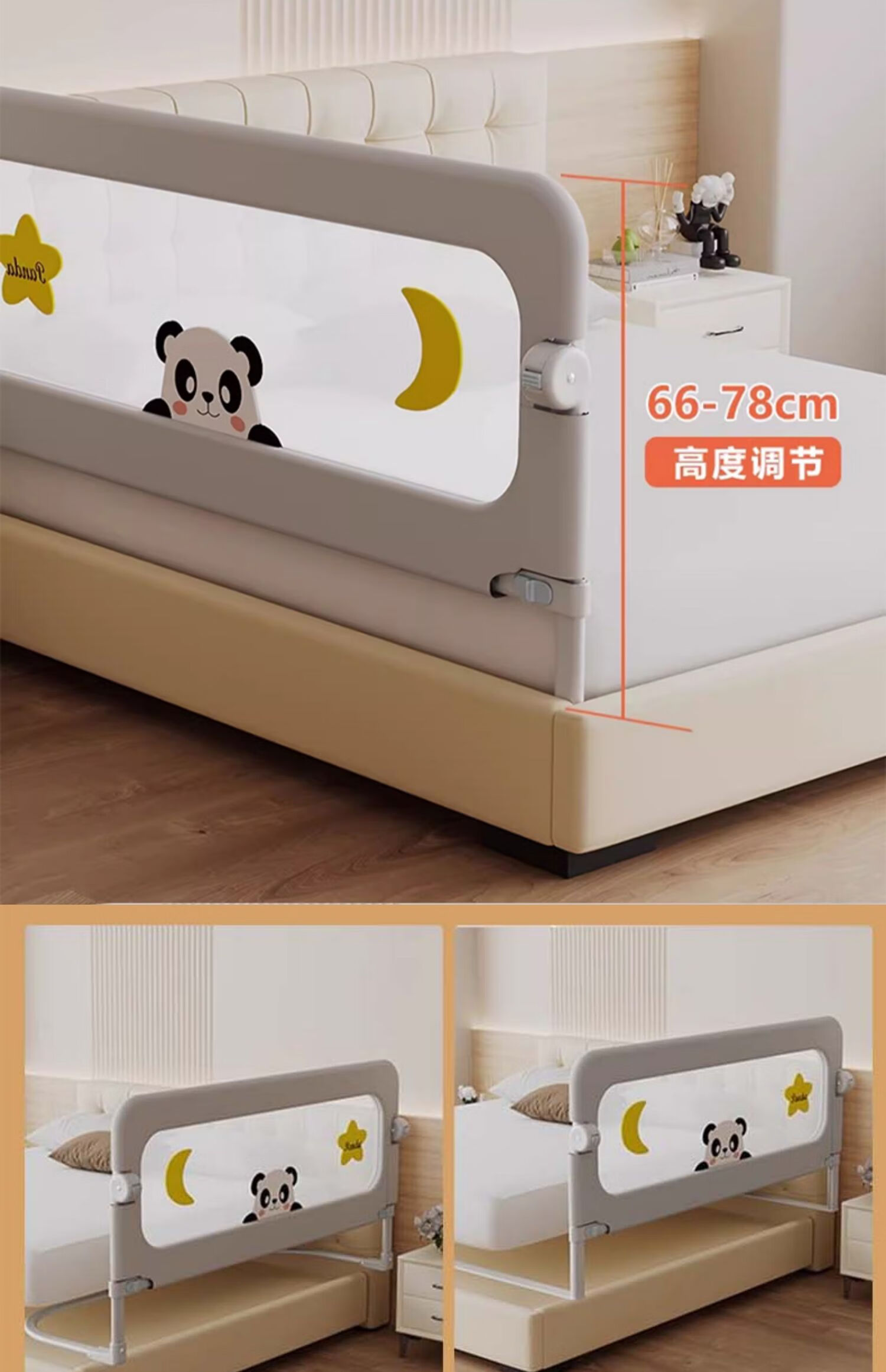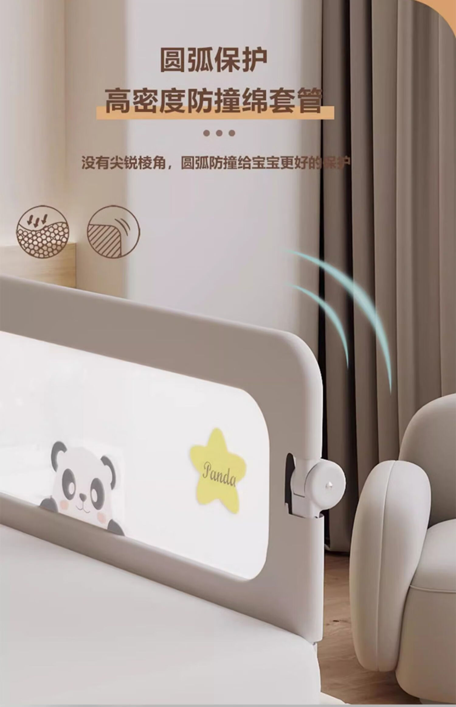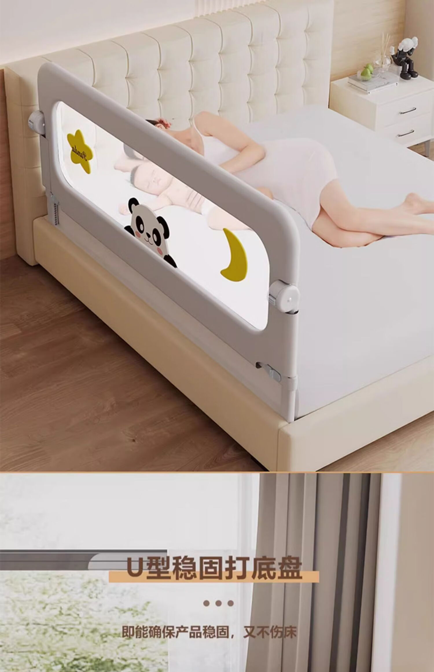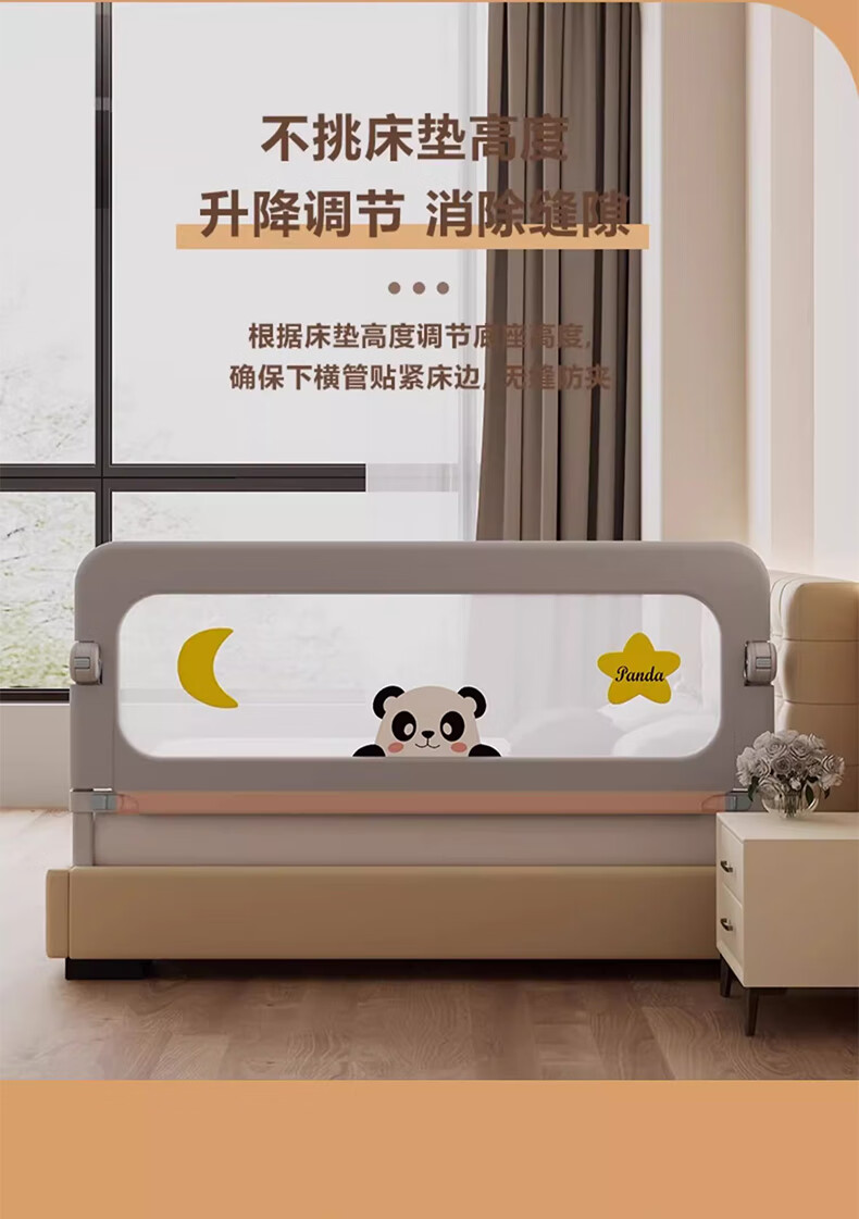 ZBENSER bed fence baby bed anti-fall baby bed fence safety guardrail bedside baffle folding bed guardrail gray embroidered little bear (no punching U-shaped base - fixed belt included) 1.8 meters (foldable storage)