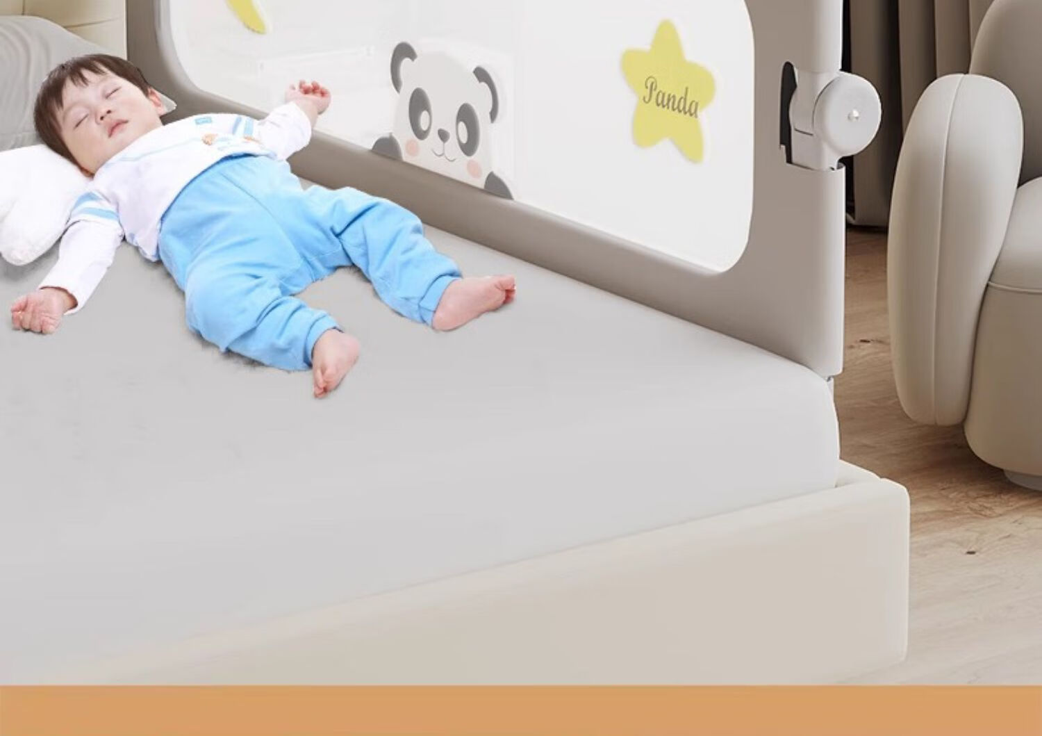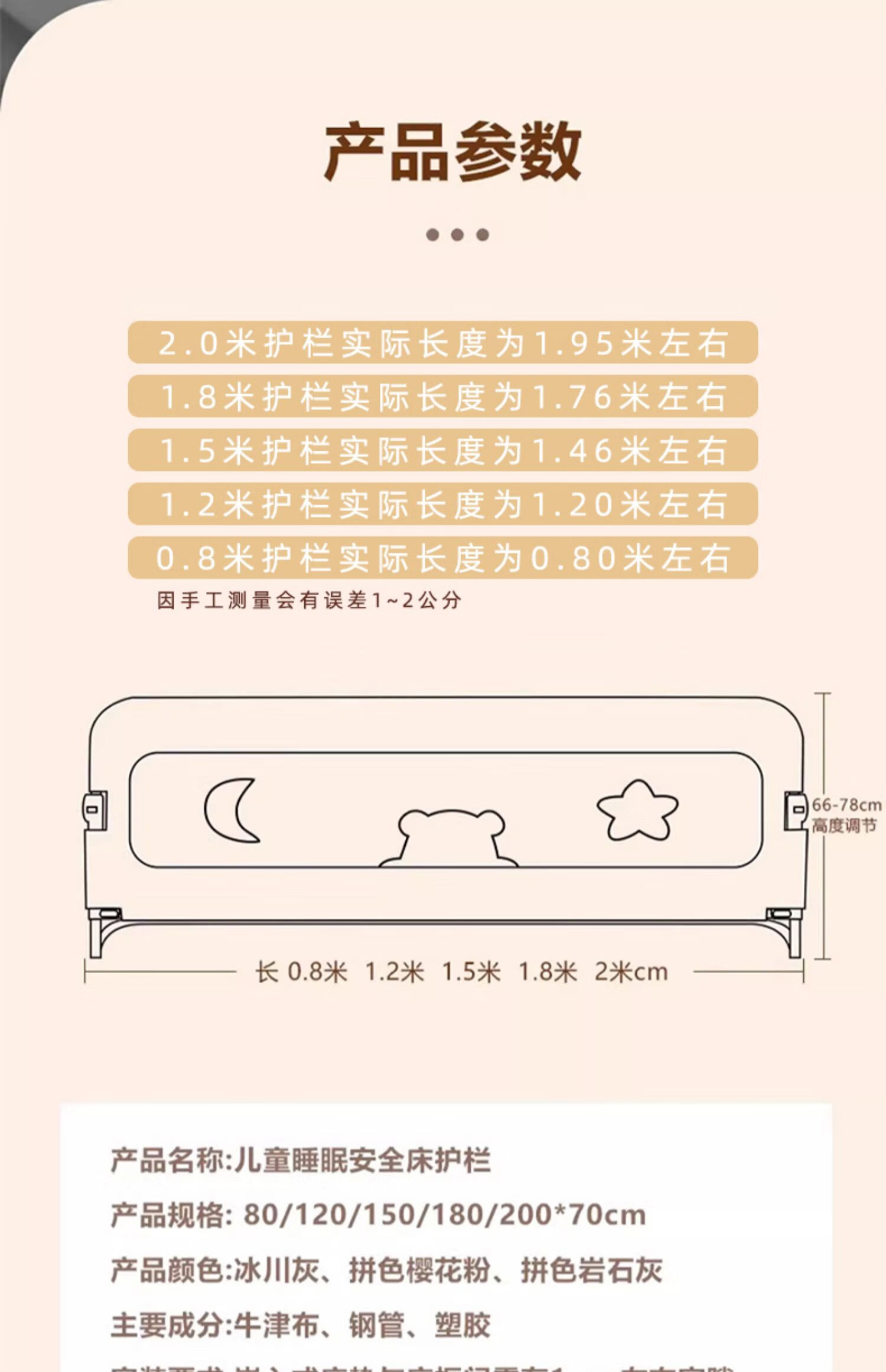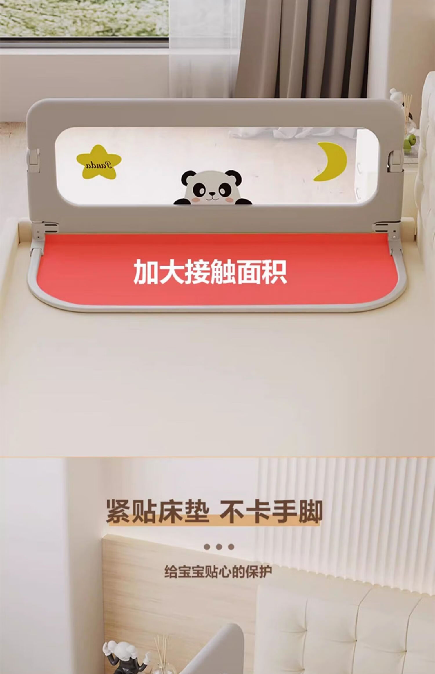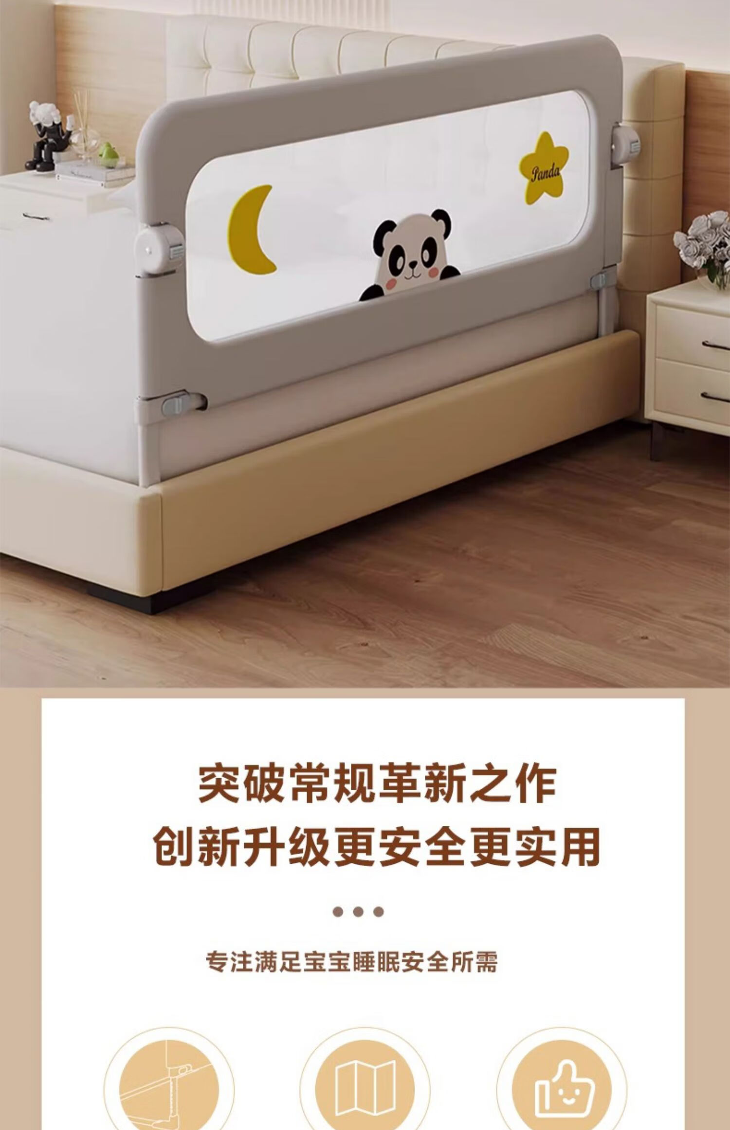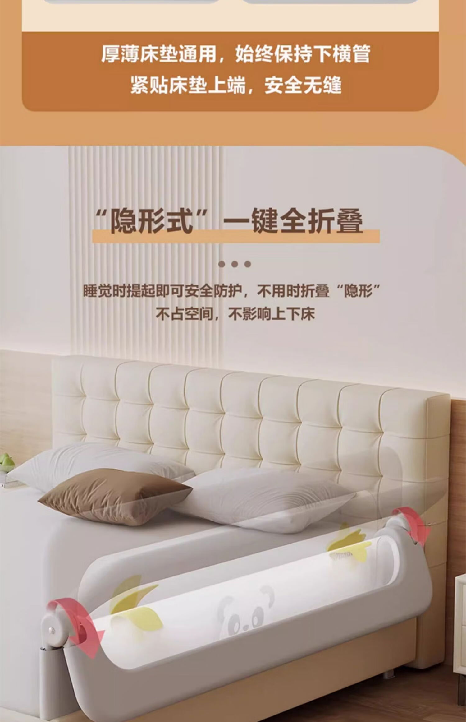 ZBENSER bed fence baby bed anti-fall baby bed fence safety guardrail bedside baffle folding bed guardrail gray embroidered little bear (no punching U-shaped base - fixed belt included) 1.8 meters (foldable storage)