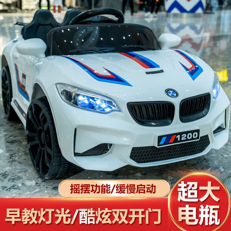 Children's electric car four-wheeled car with people on it, remote control car, charging swing car for men and women, baby toy car, white + small battery, single drive + remote control self-driving