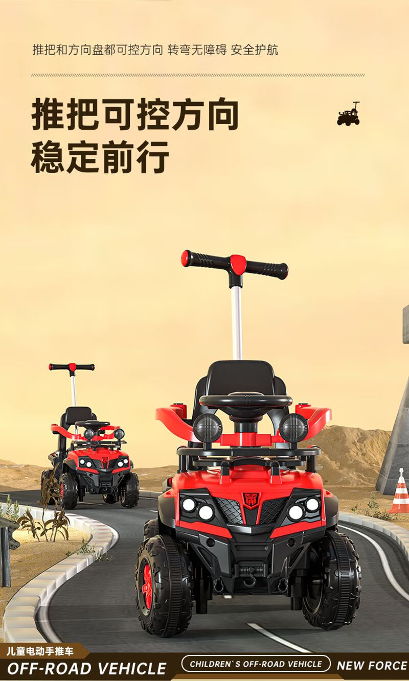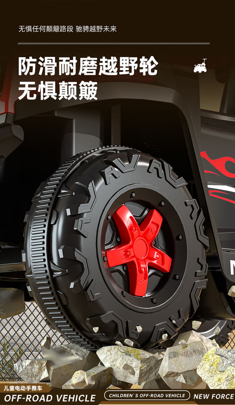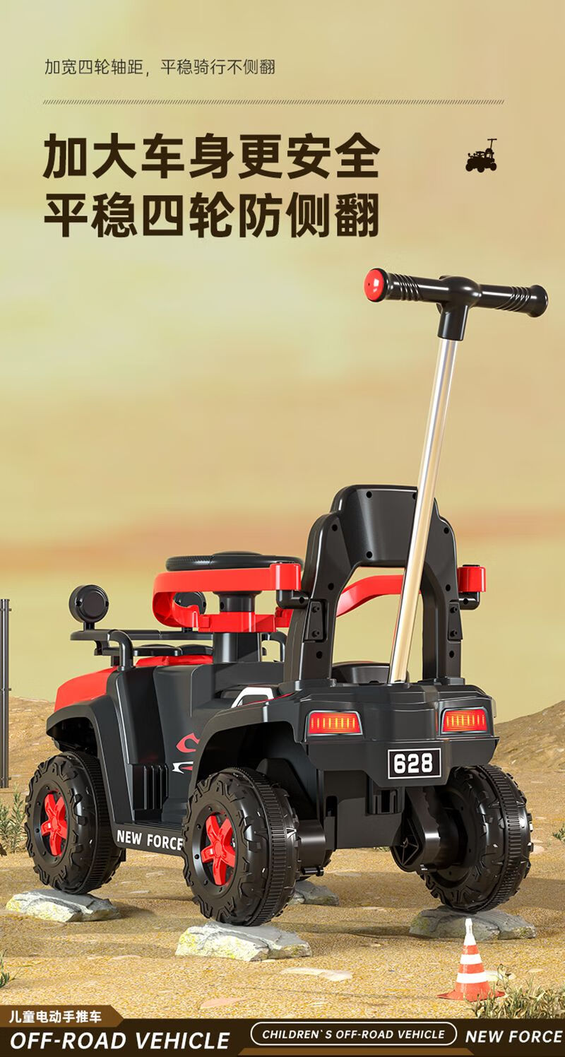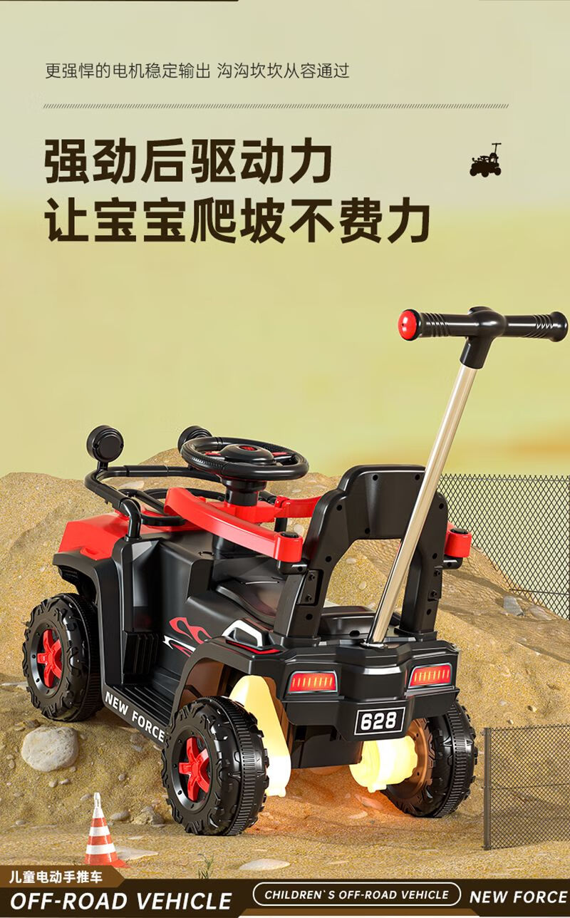 New children's electric car four-wheel remote control car charging trolley 0-3 years old children's toy car men and women can sit on upgraded yellow dual drive + remote control + push rod self-driving leather seat