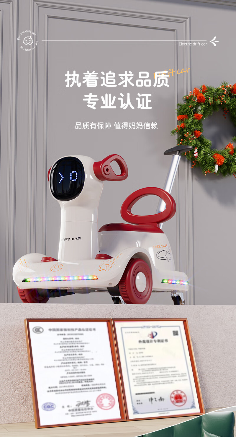 Children's electric drift car, baby toy car, can sit on one person, with remote control, baby four-wheel car, charging stroller, exclusive remote control version, mint green, 6V7 battery + remote control, dual drive + music light + push handle