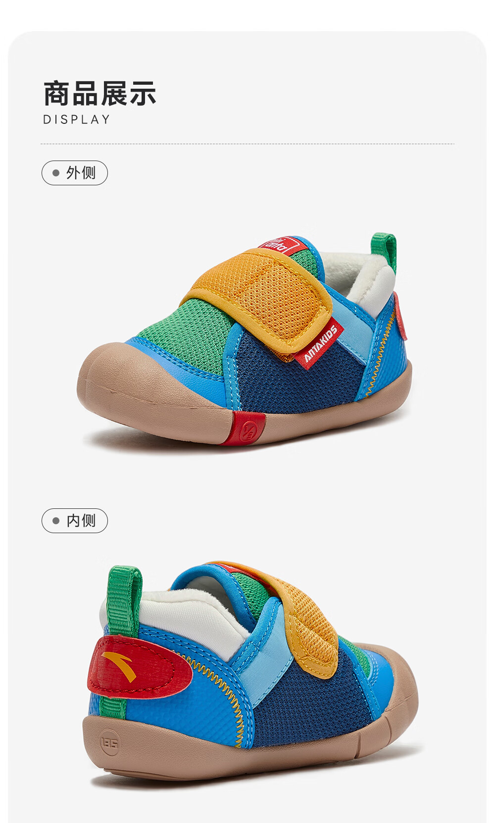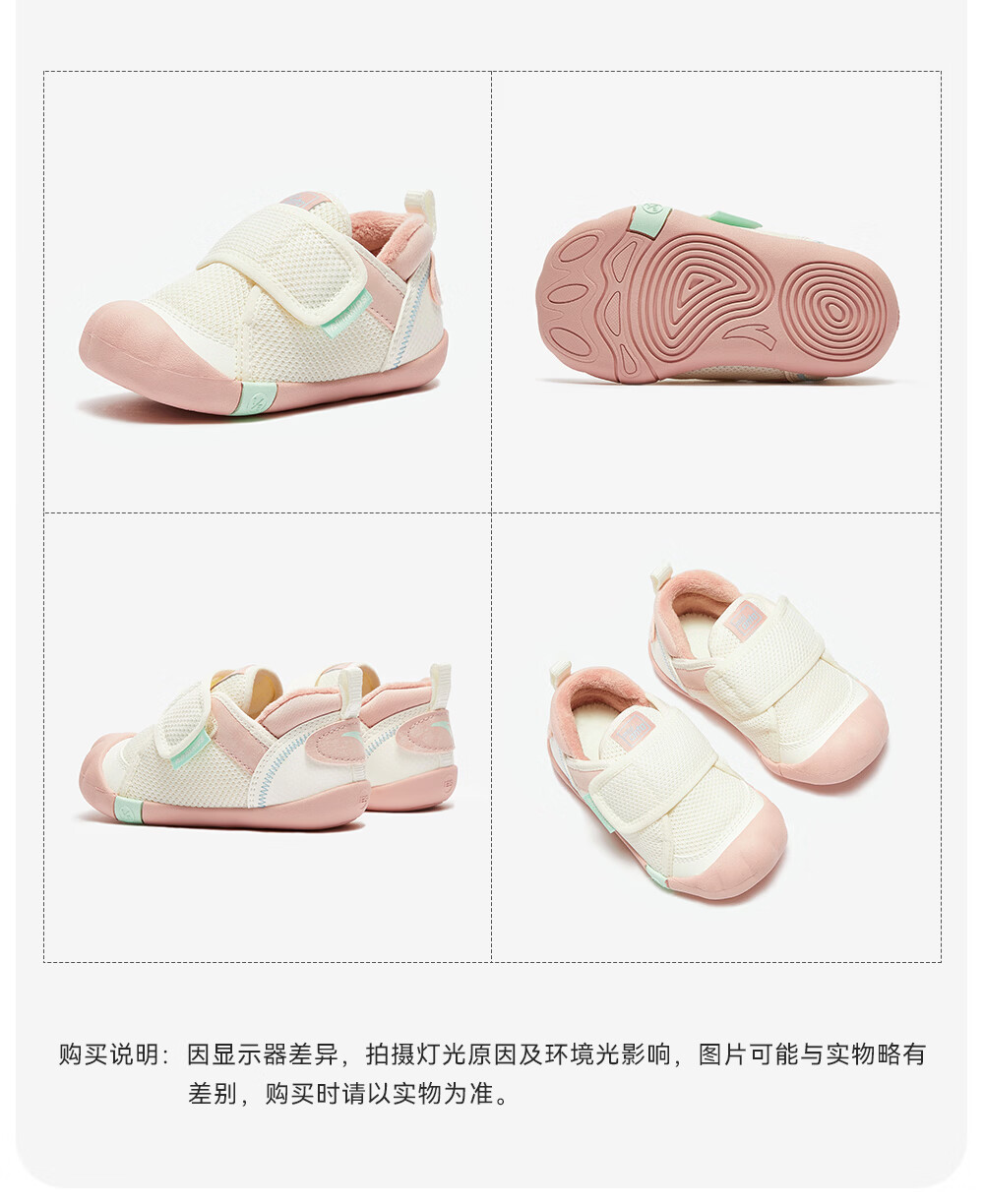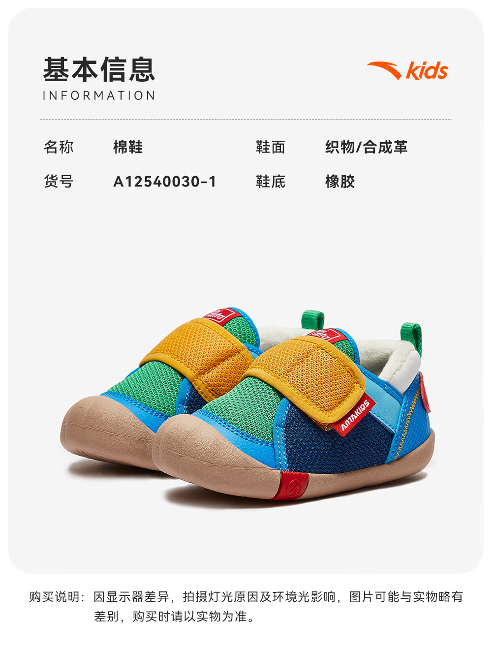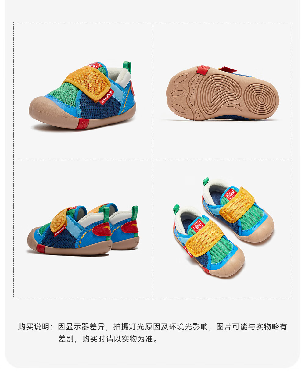 ANTA children's shoes for girls, infants and toddlers, autumn and winter new velvet warm Velcro soft-soled cotton shoes for boys, green/blue/blue city blue/sea buckthorn yellow-1 21, inner length of the shoe 12.5cm