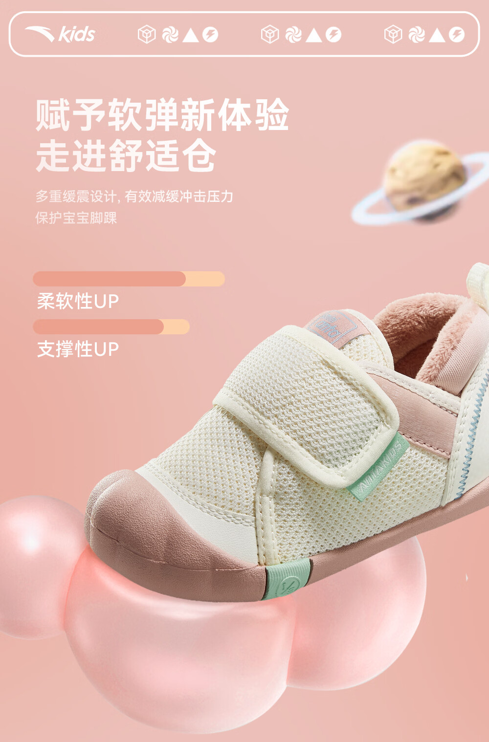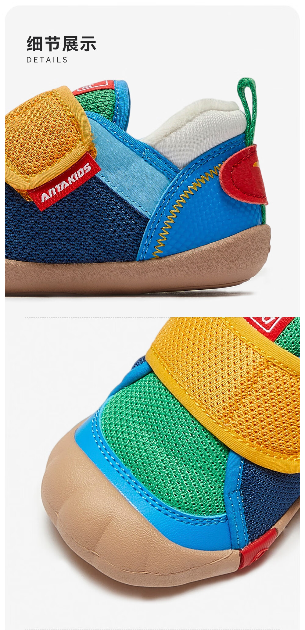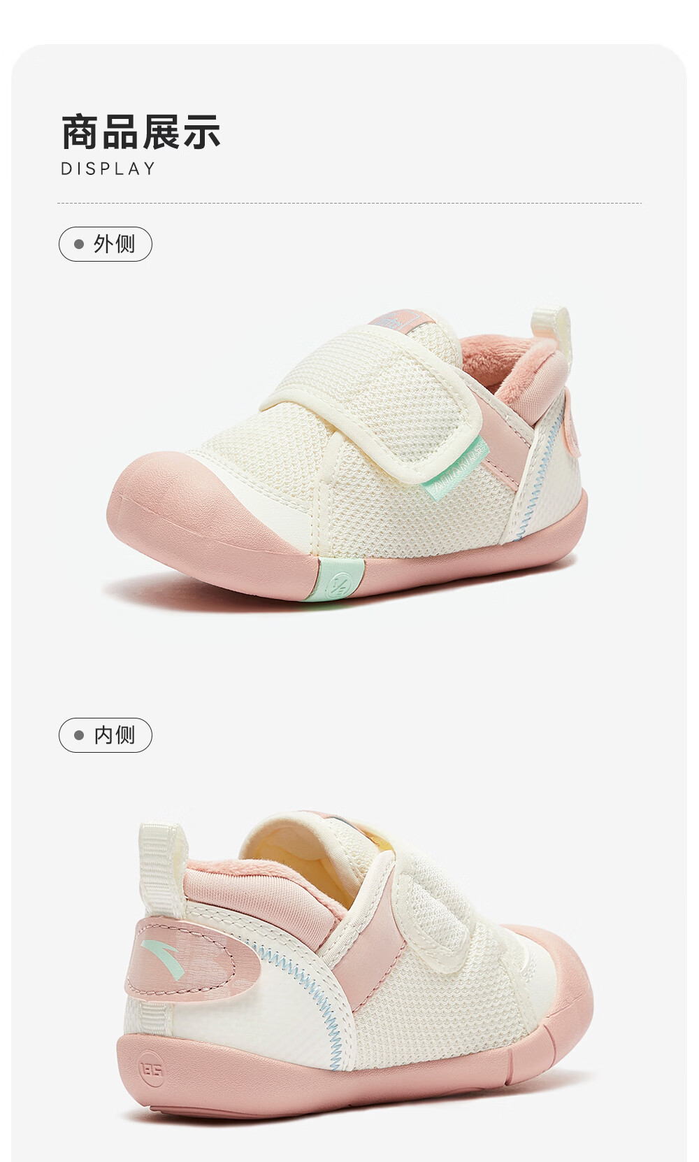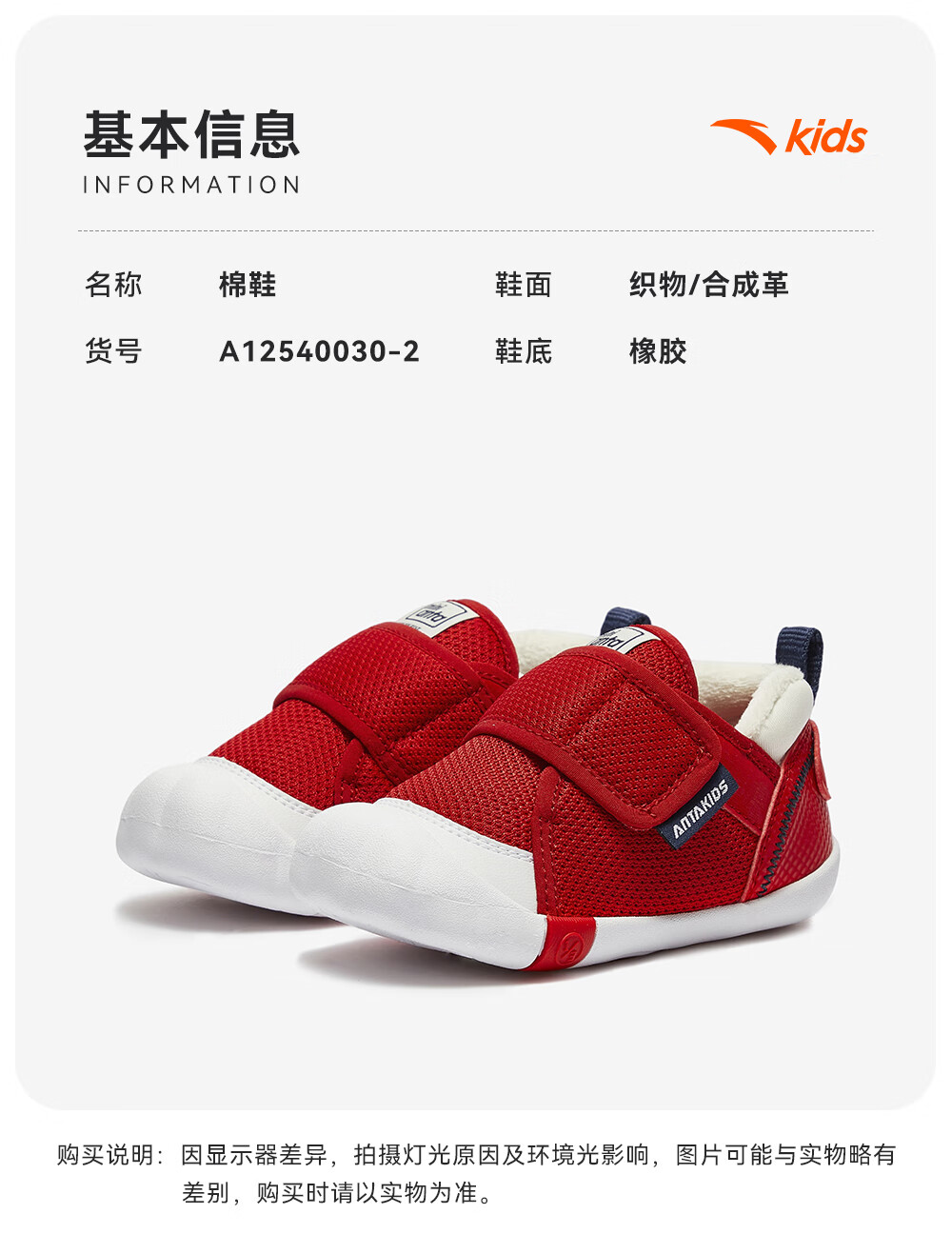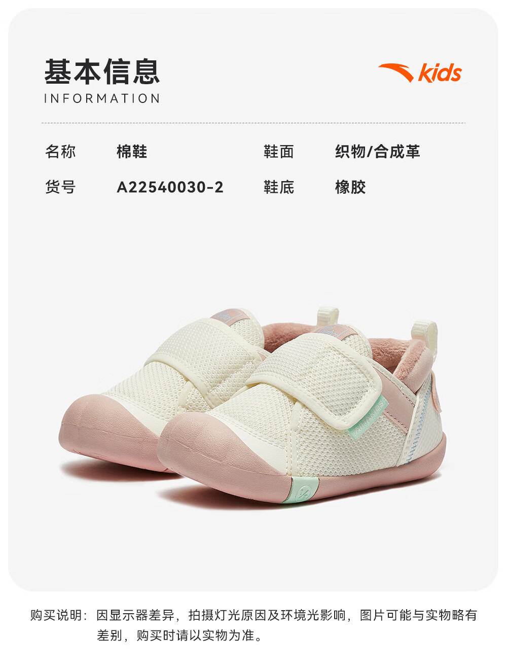 ANTA children's shoes for girls, infants and toddlers, autumn and winter new velvet warm Velcro soft-soled cotton shoes for boys, green/blue/blue city blue/sea buckthorn yellow-1 21, inner length of the shoe 12.5cm