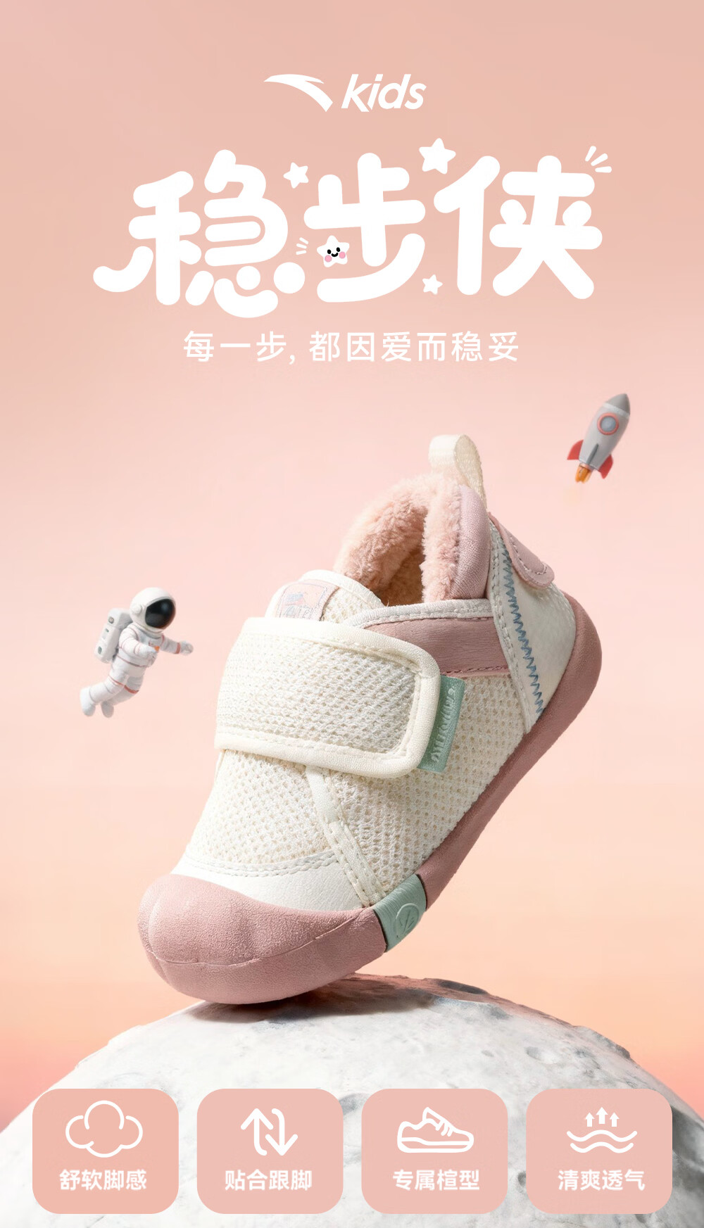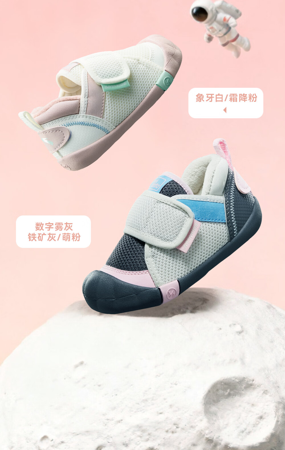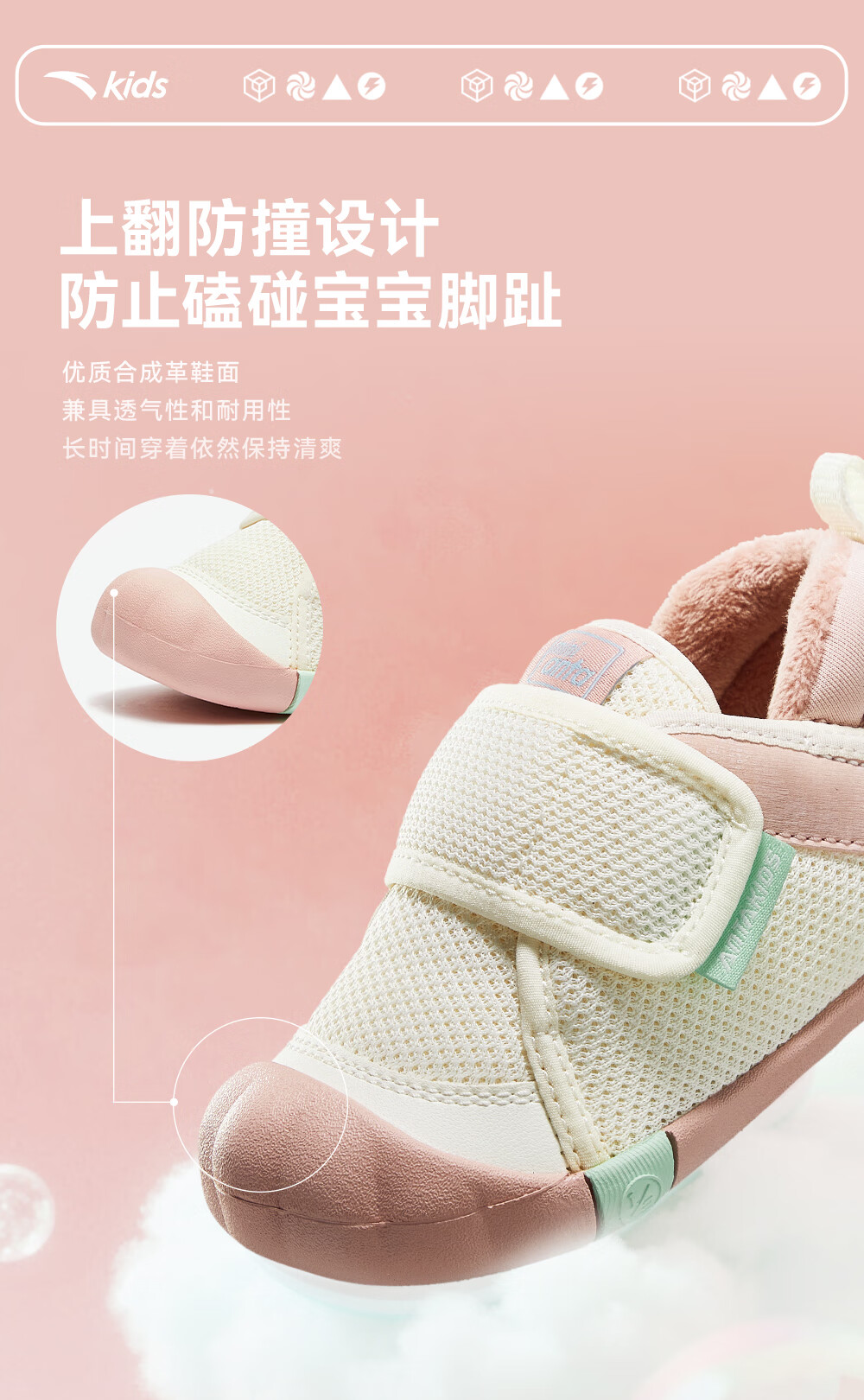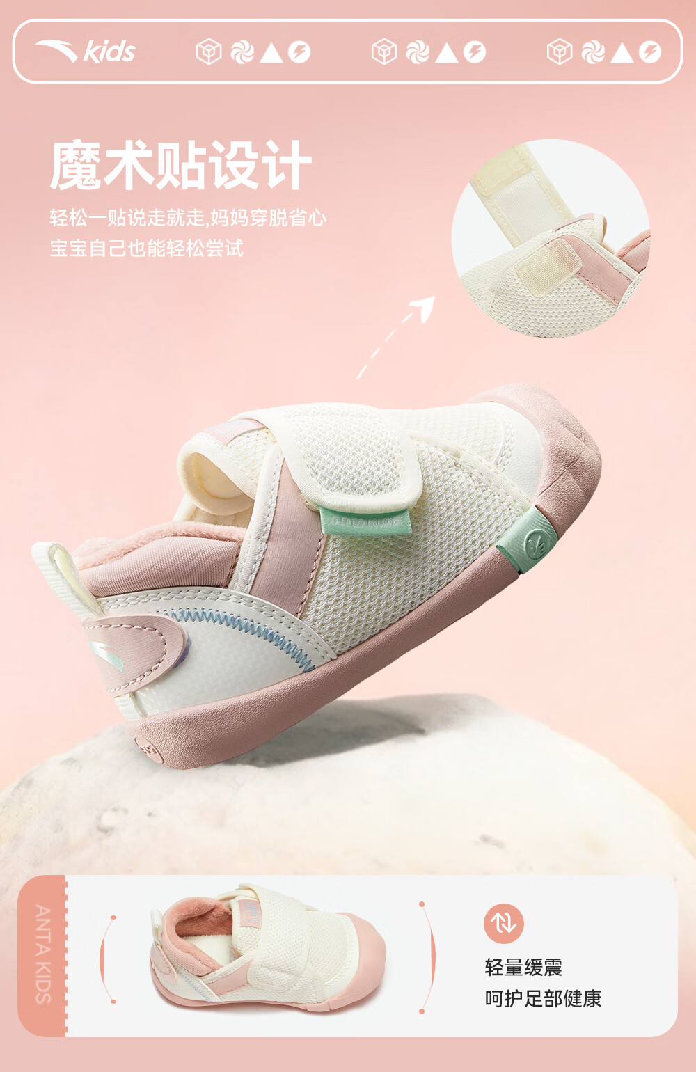 ANTA children's shoes for girls, infants and toddlers, autumn and winter new velvet warm Velcro soft-soled cotton shoes for boys, green/blue/blue city blue/sea buckthorn yellow-1 21, inner length of the shoe 12.5cm