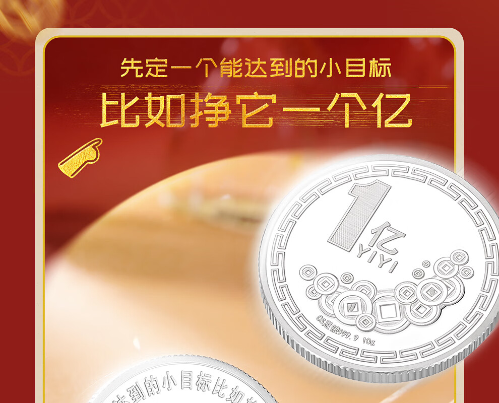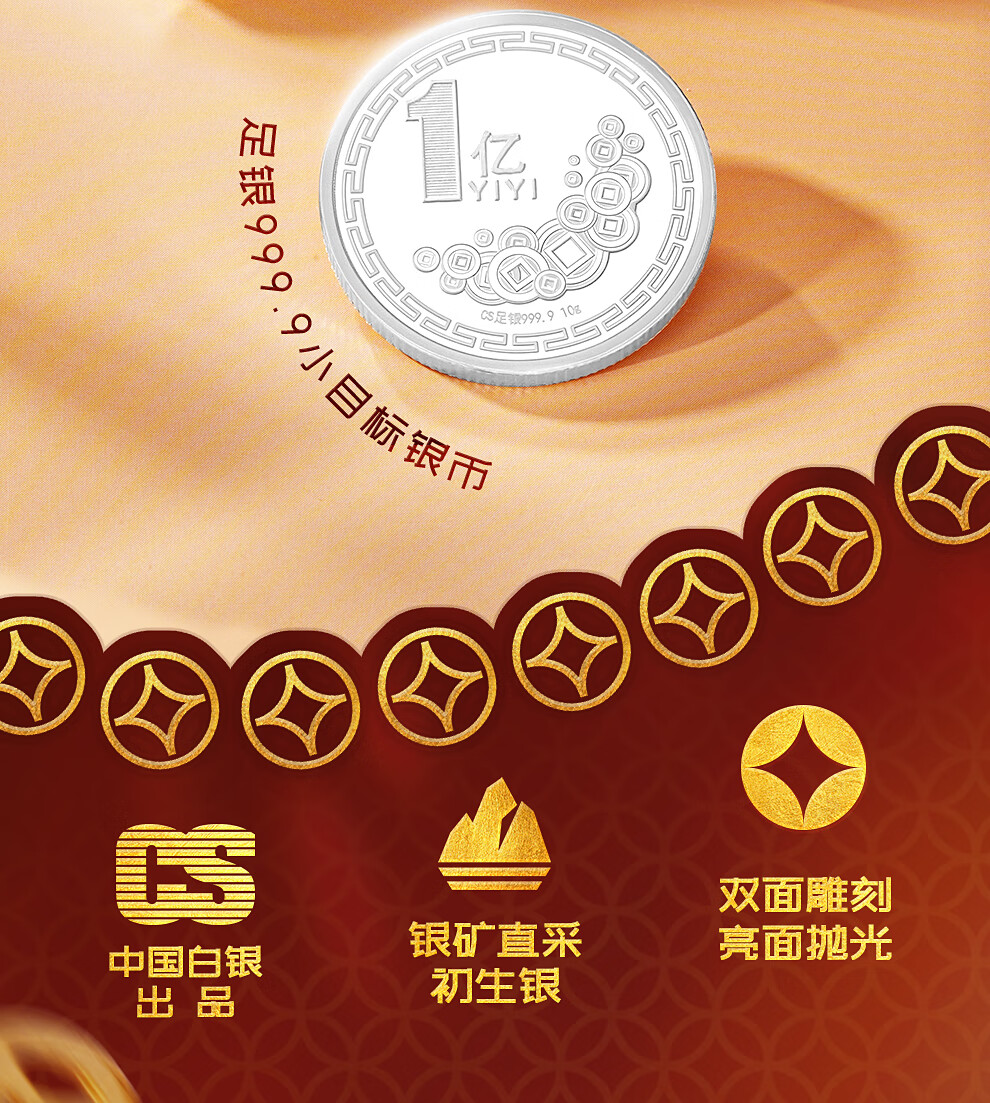 CS China Silver 999.9 Pure Silver 100 Million Small Target Silver Coin Pure Silver Commemorative Coin Silver Birthday Gift 100 Million Small Target Silver Coin