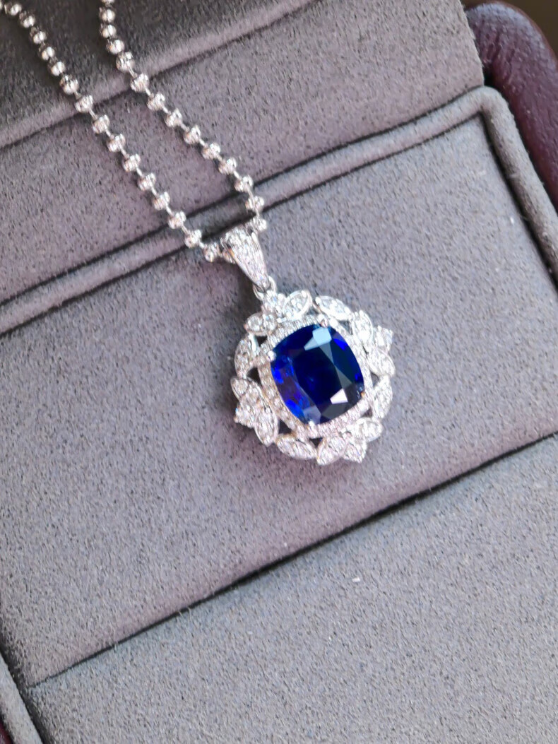 HEEKAIYI Sapphire Necklace for Women Royal Blue 18k Gold Diamond Pendant Chinese Valentine's Day Birthday Gift for Wife and Girlfriend Selected 1.31 Carat/Royal Blue