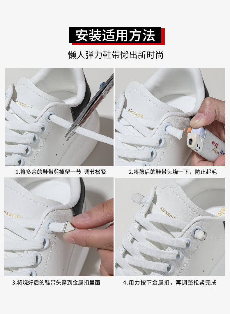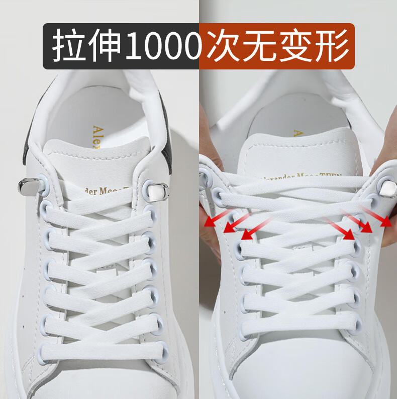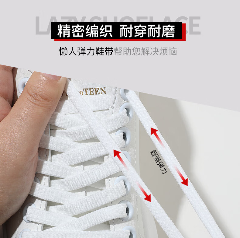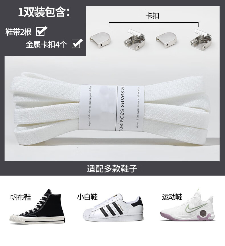 Widened elastic lazy shoelaces with flat elastic buckles for men and women, children and adults, no need to tie, no need to tie white shoelaces, white - one pair of shoelaces + 4 push buckles - 1 set