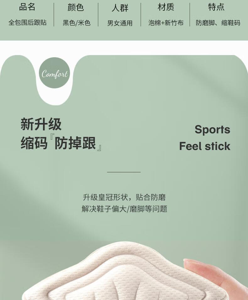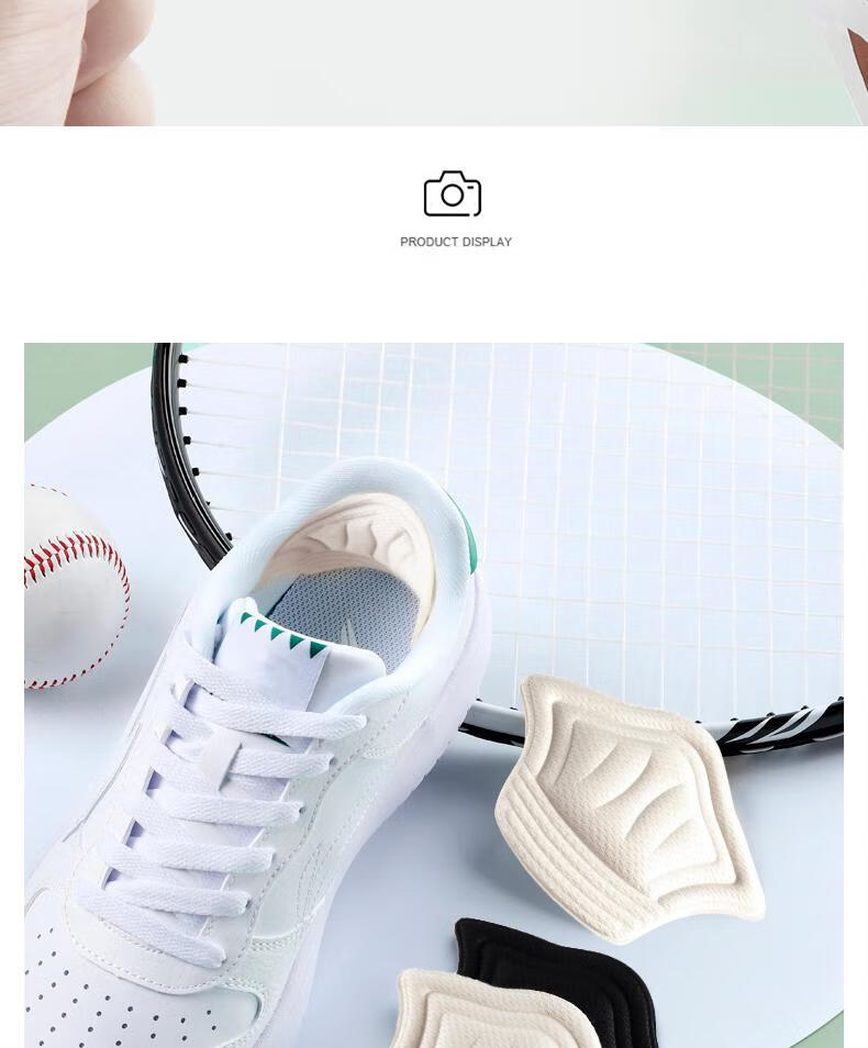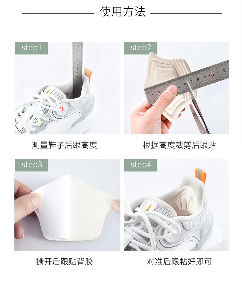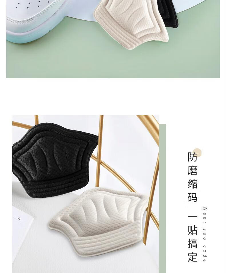 Heel stickers to prevent heel falling off. Big change to one size smaller. Thin and thick anti-wear foot pads. Half size pads. Shrunk leather shoes. Sports shoes. Heel stickers - thick style - white. 1 pair.