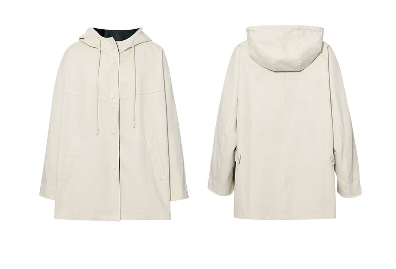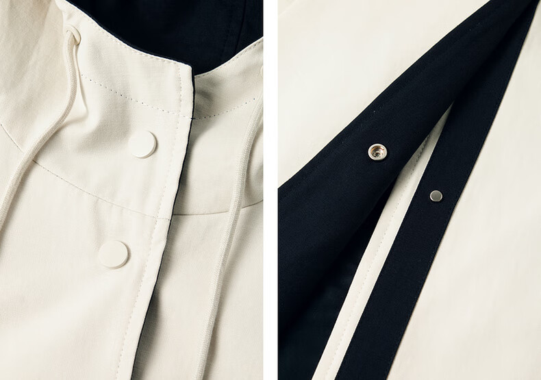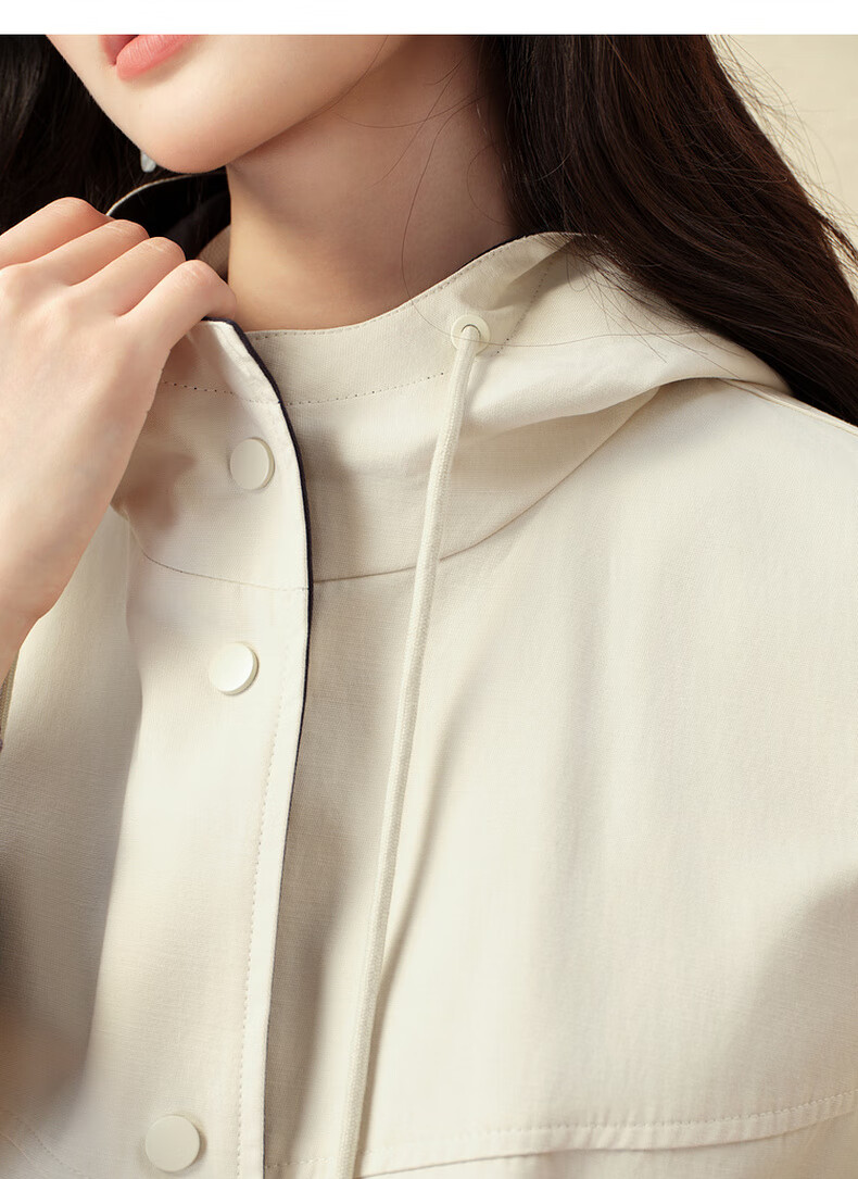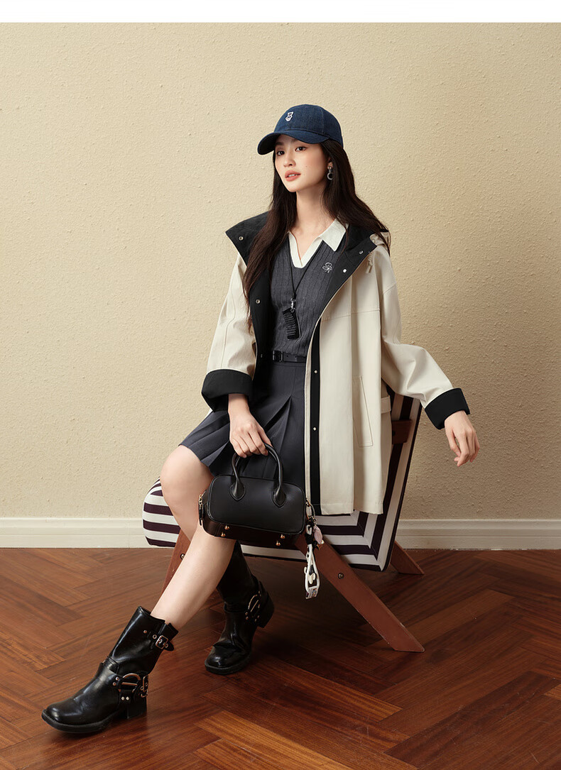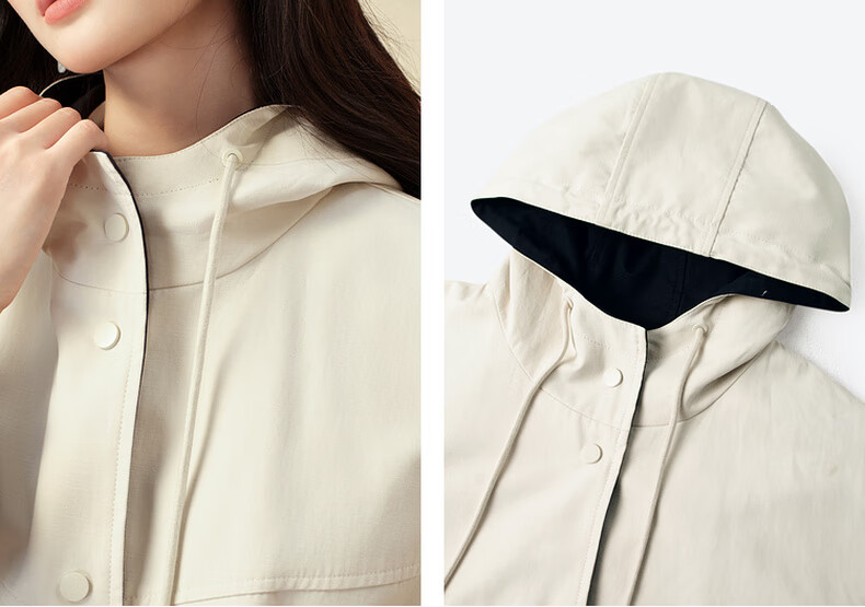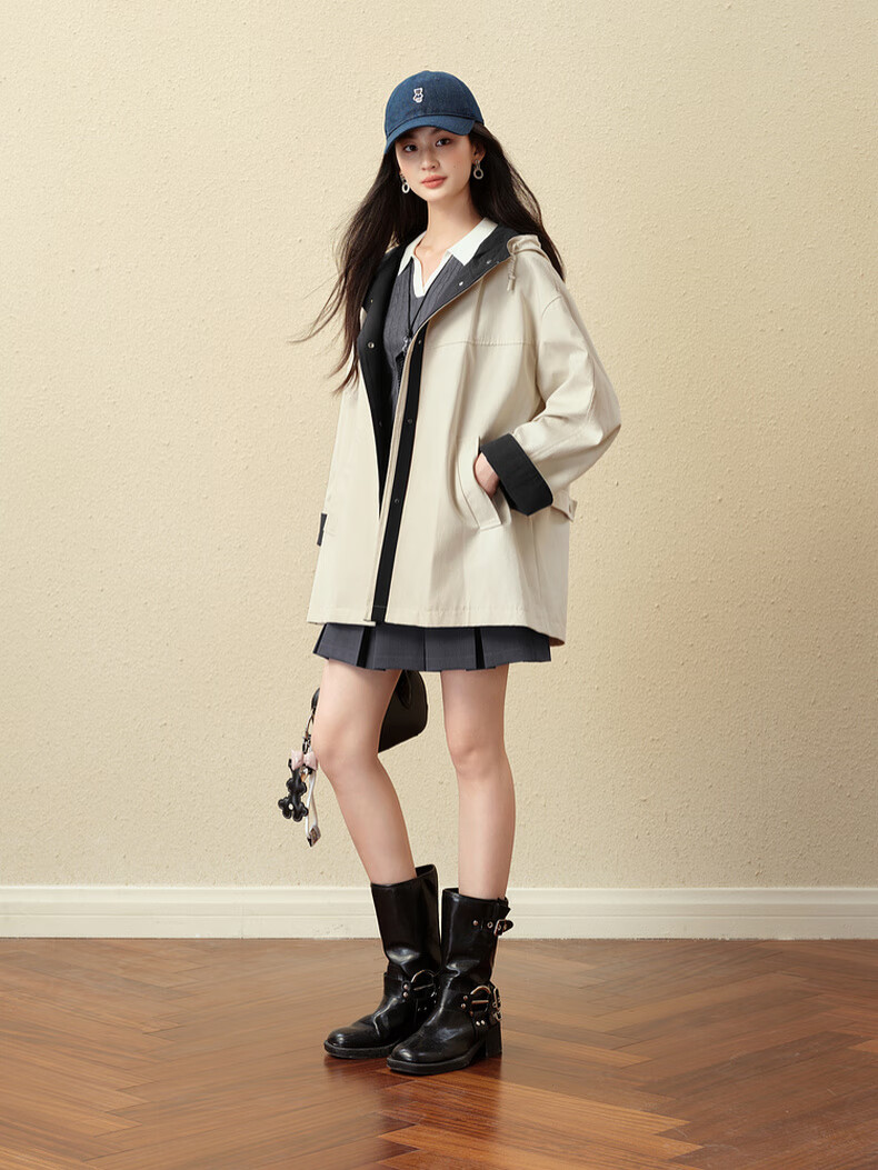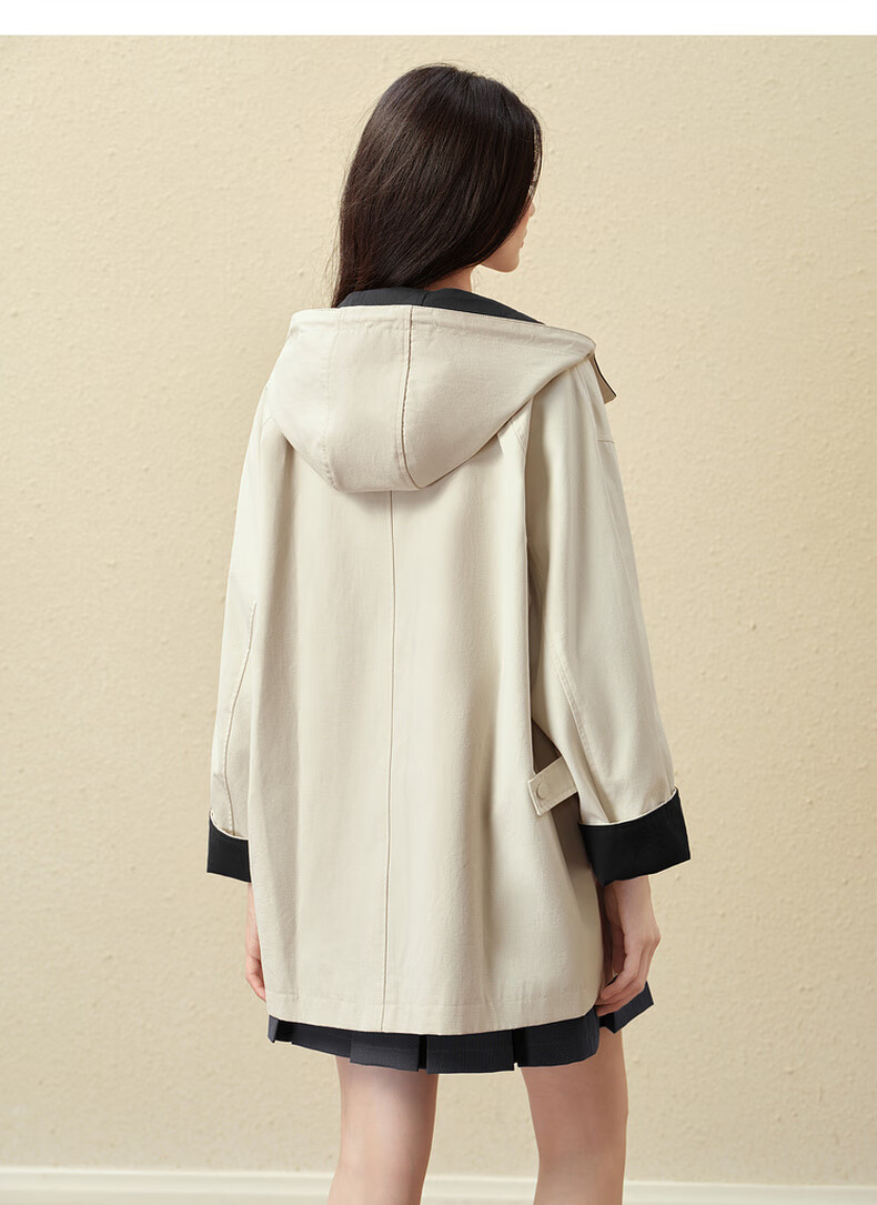 SEIFINI Classic Miu Contrast Color Hooded Windbreaker 2025 Autumn New Korean Style Loose Casual Jacket Beige M