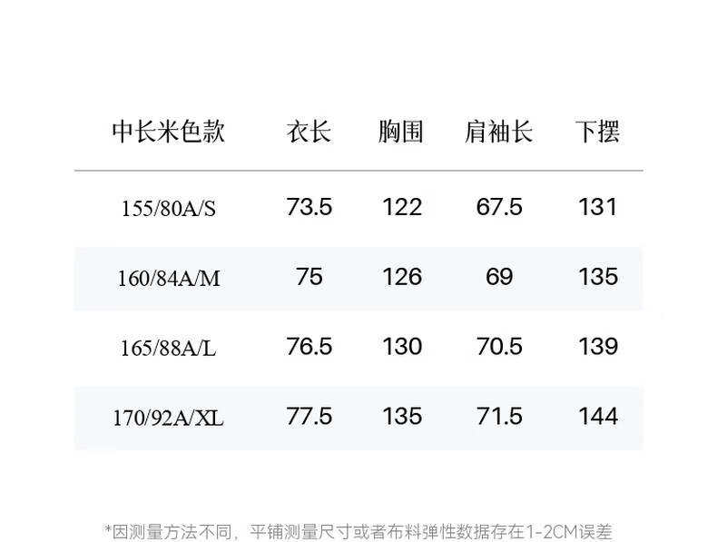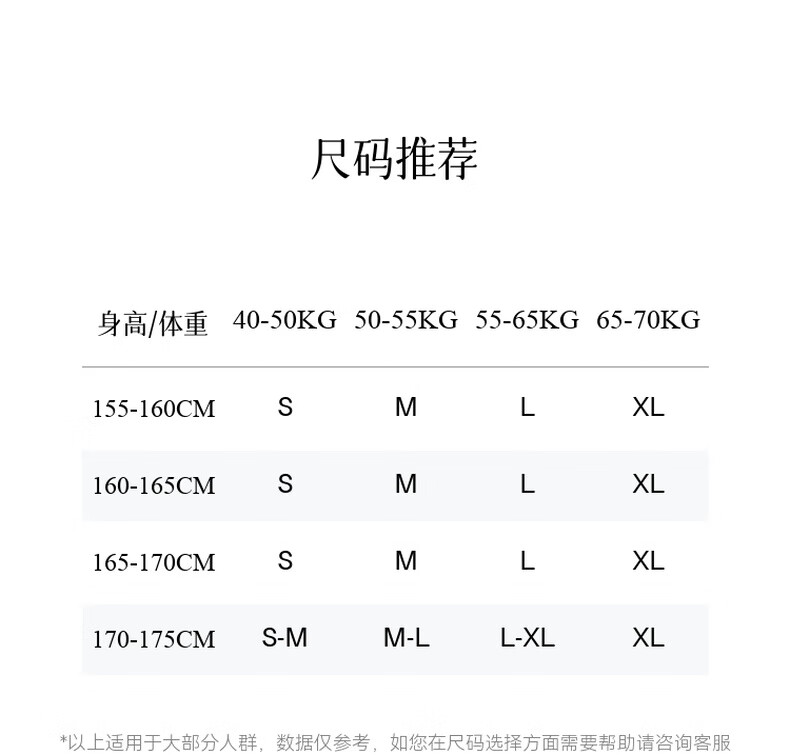 China (cm) 160-165/84-86 165-170 / 88-90 167-172 / 92-96 168-173 / 98-102 170-176 / 106-110