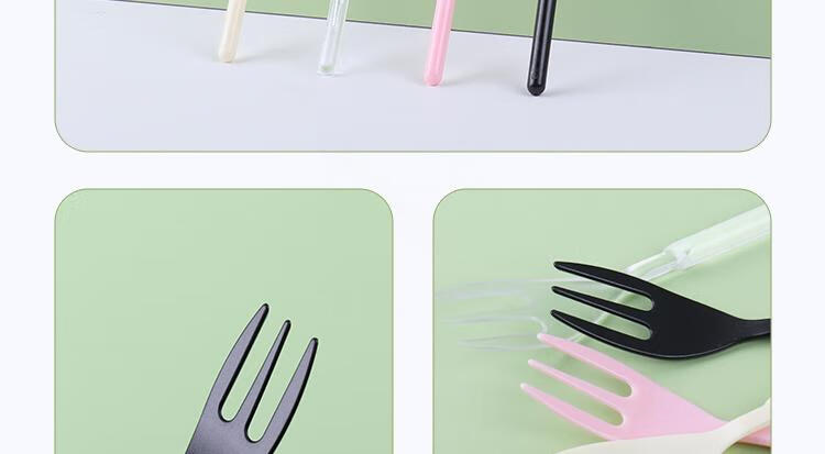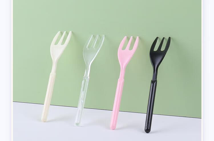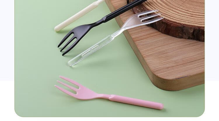 Magic Bean Shenghuo Disposable Black Forest Cake Fork Individually Packaged Three-Tine Thickened Transparent Dessert Fruit Fork 10cm Mooncake Fork Pink - Length 10cm - 100 pieces individually packed