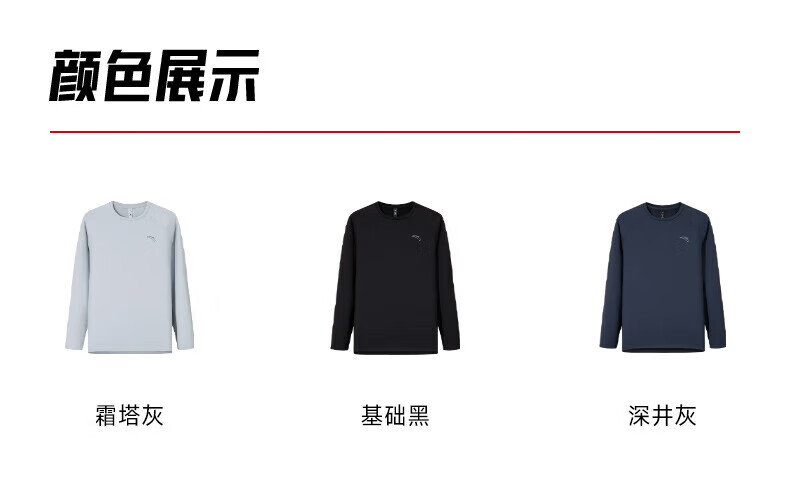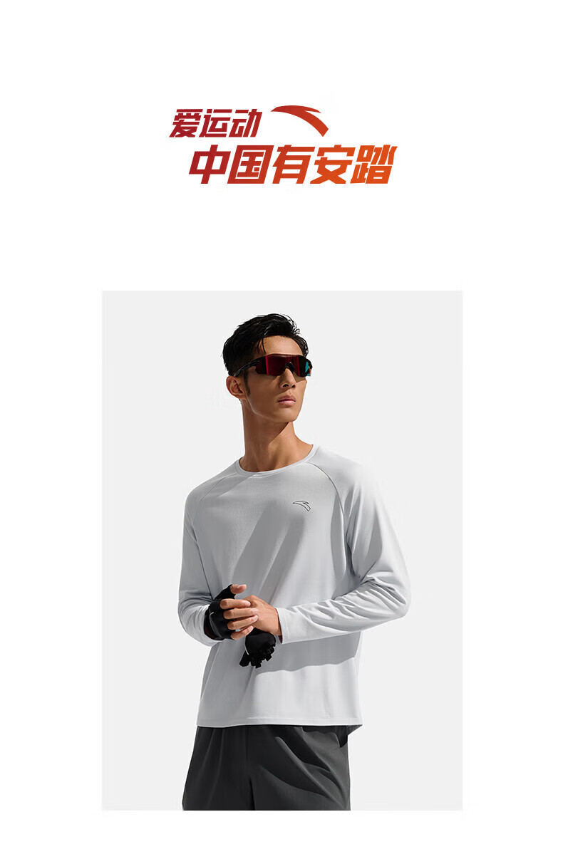 ANTA Quick-drying Sports Long T Men's 2025 Autumn New Sweat-Absorbent Sports Bottoming Shirt Cycling Suit Training Suit Long Sleeve Frost Tower Gray-1 L (Male 175)