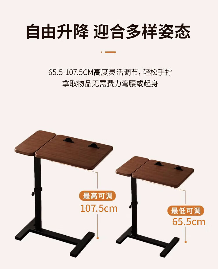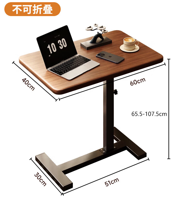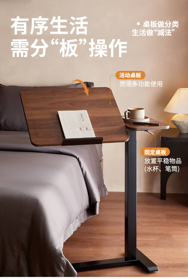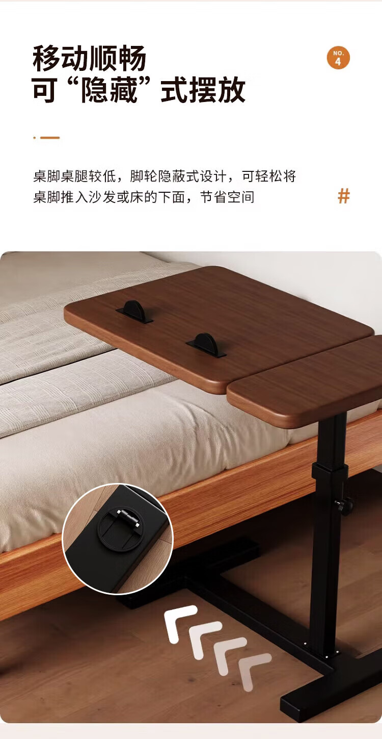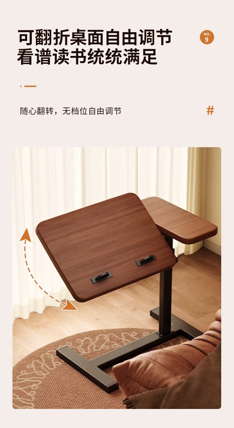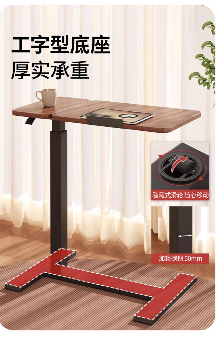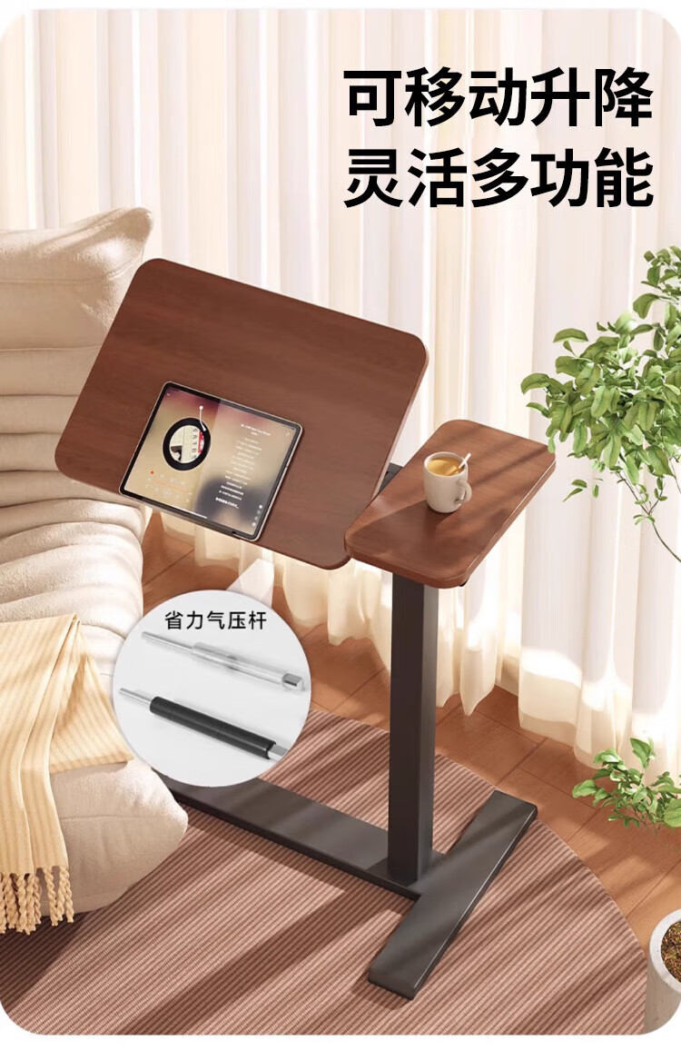 Yaoying Computer Desk Bedside Table Movable Lift Desk Home Study Table Living Room Sofa Side Bedroom Writing Table Loss Impulse Walnut Color-Black Frame-Regular Style