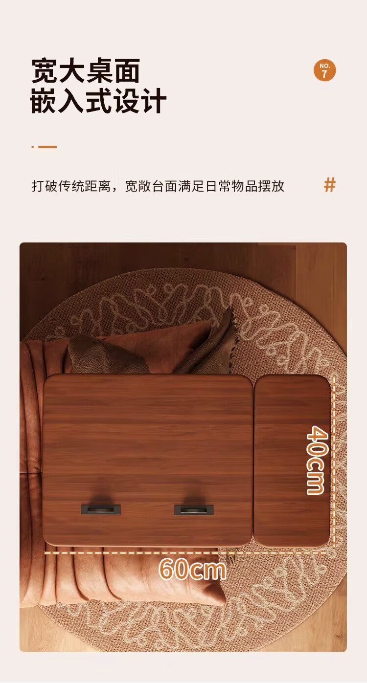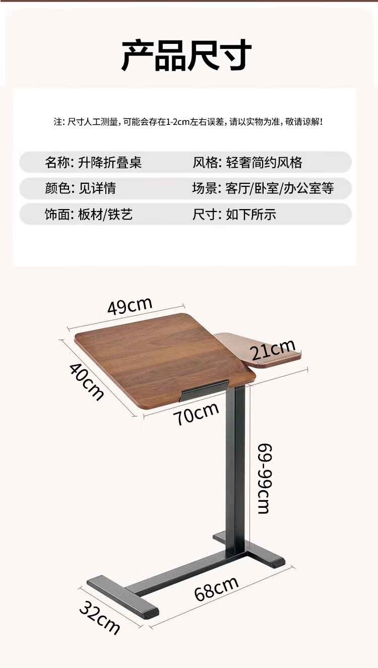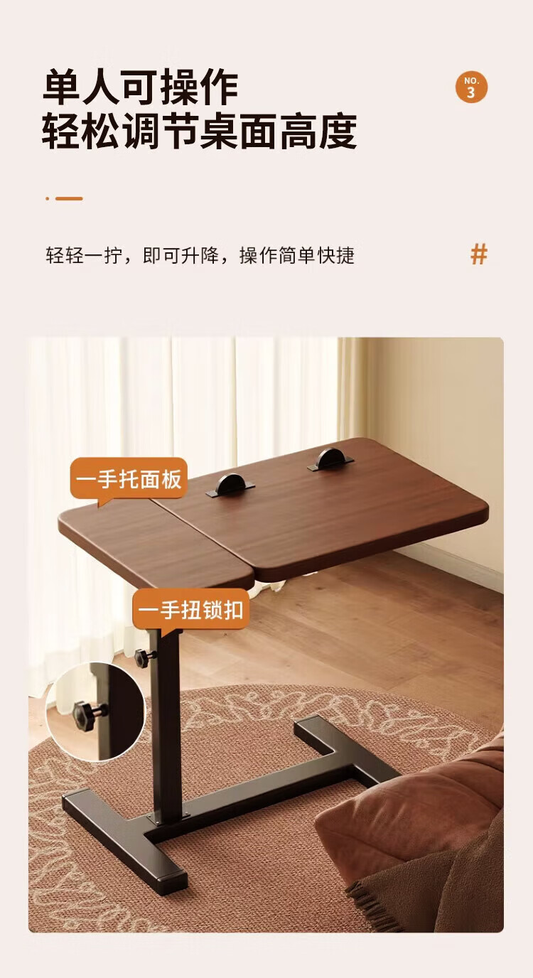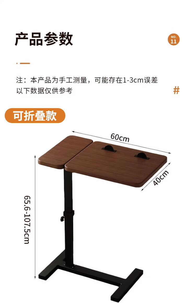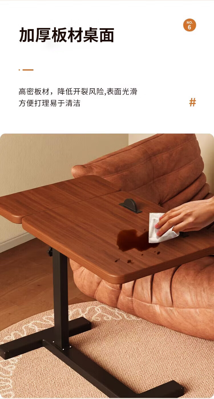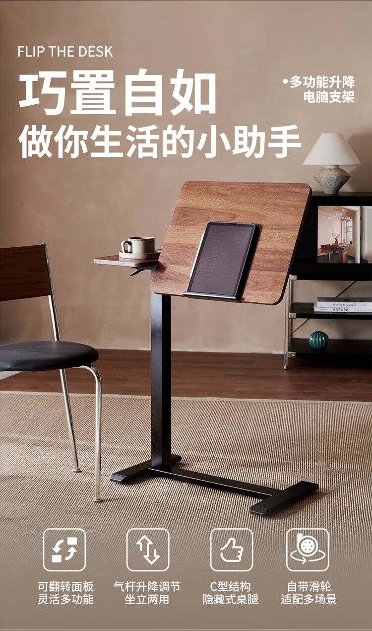 Yaoying Computer Desk Bedside Table Movable Lift Desk Home Study Table Living Room Sofa Side Bedroom Writing Table Loss Impulse Walnut Color-Black Frame-Regular Style
