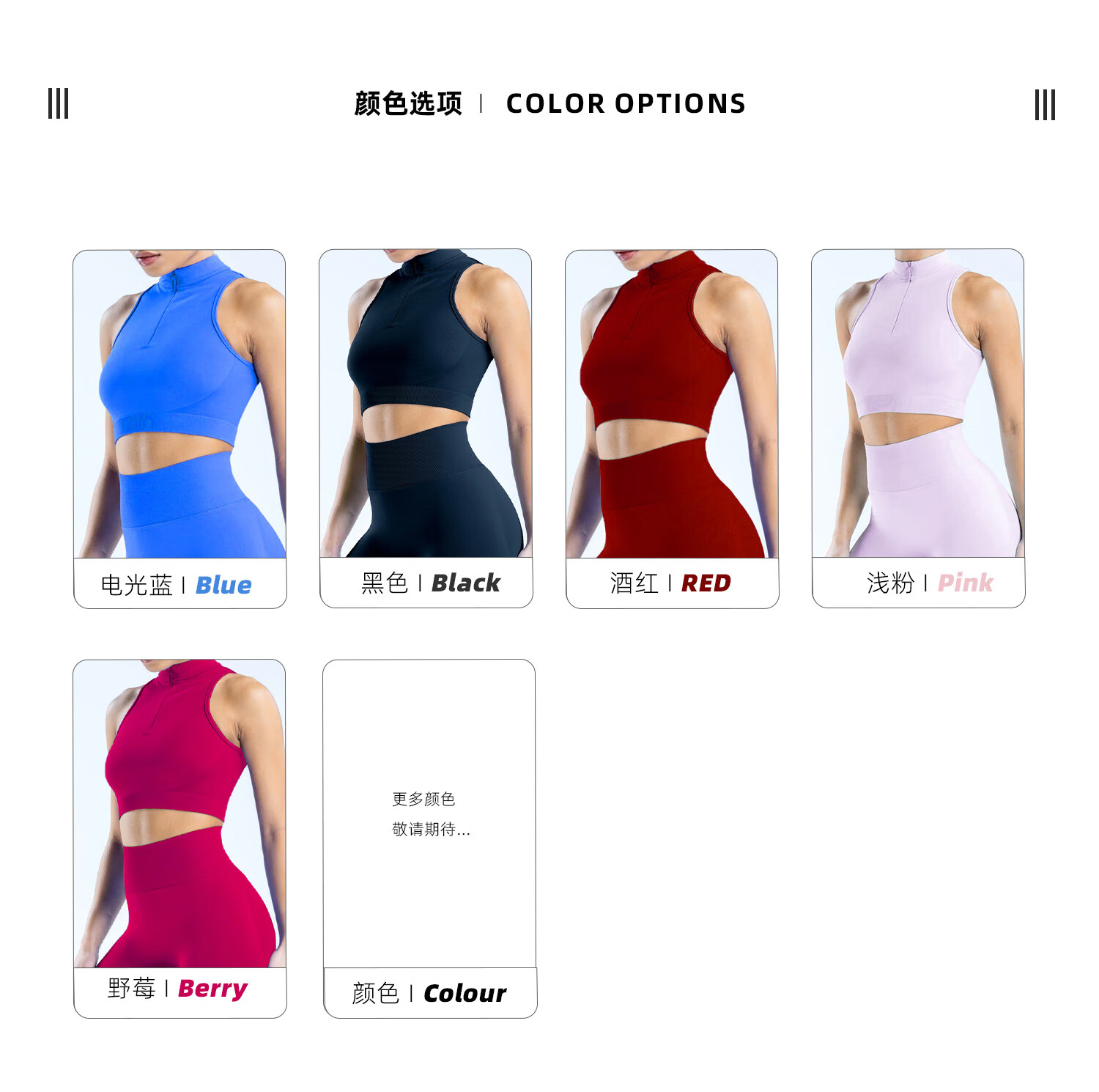 New fitness vest for women with zipper, sexy shock absorption, high-intensity sports, running, fitness, anti-side leakage, yoga Pilates, wine red S
