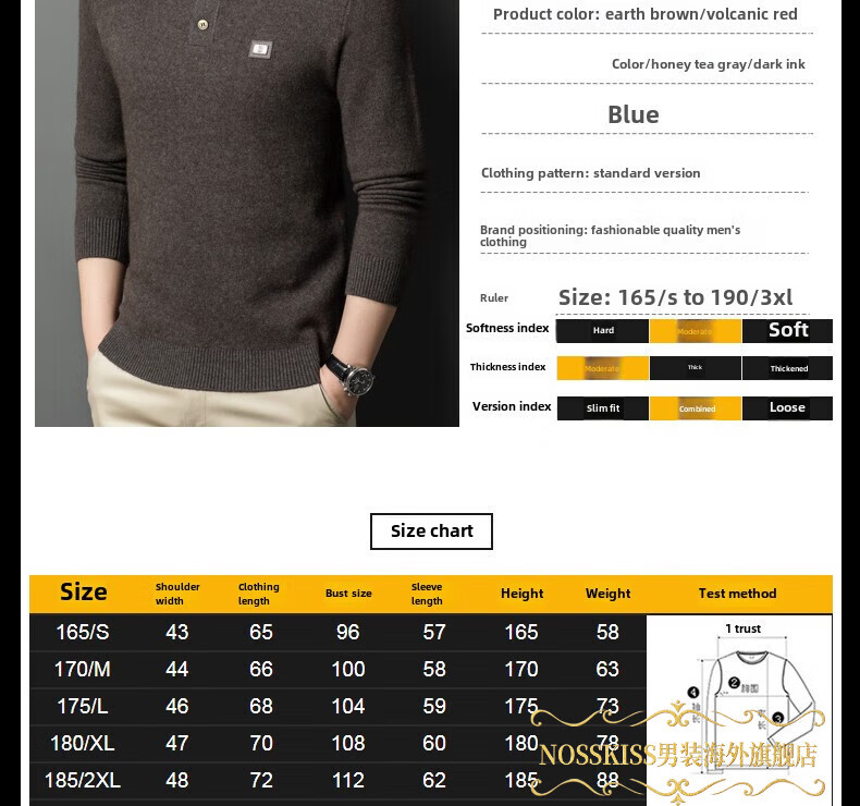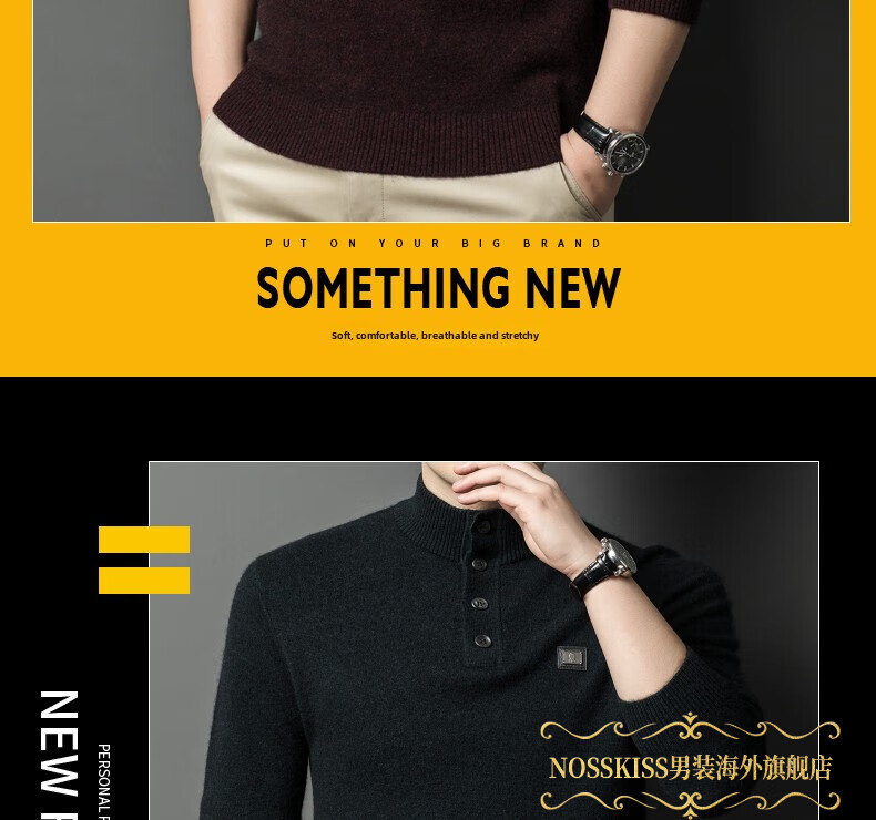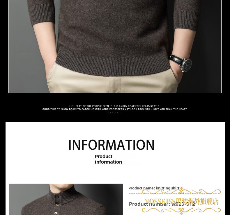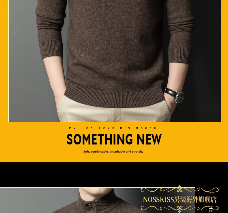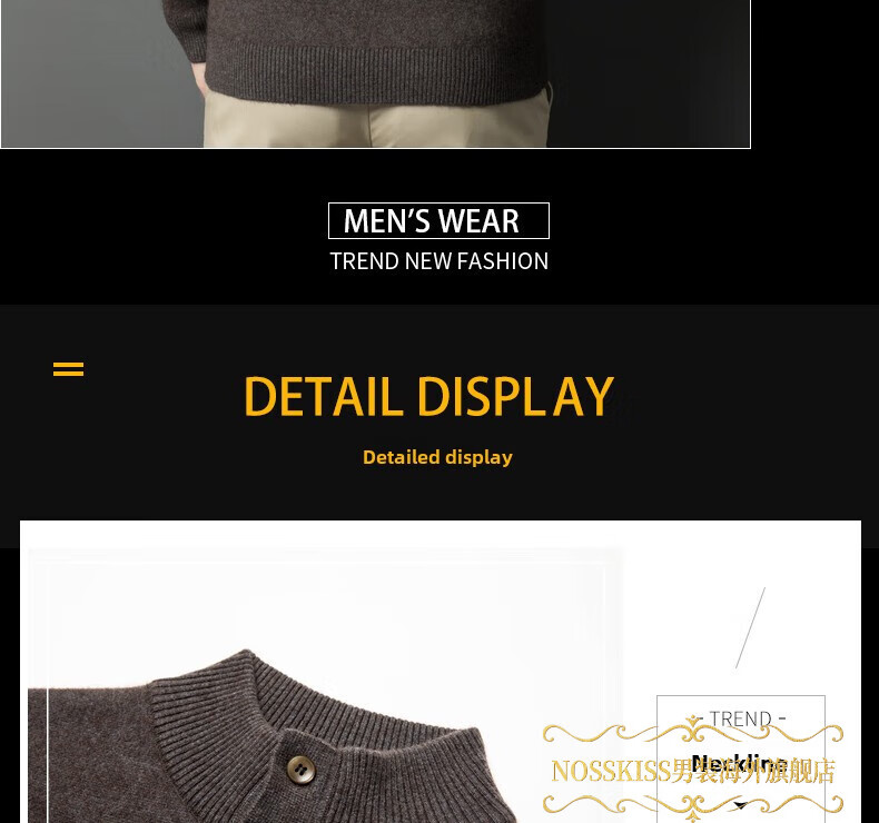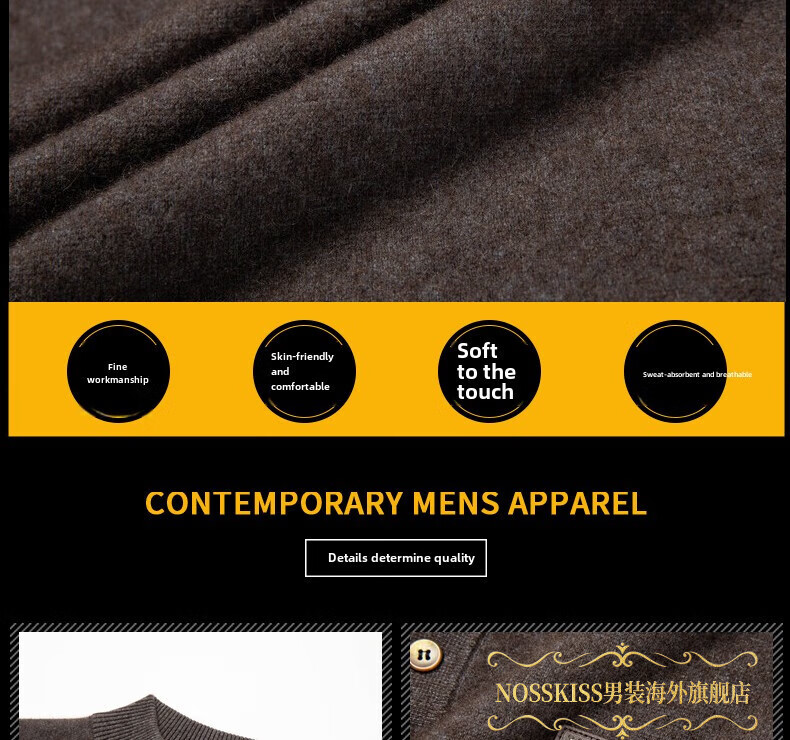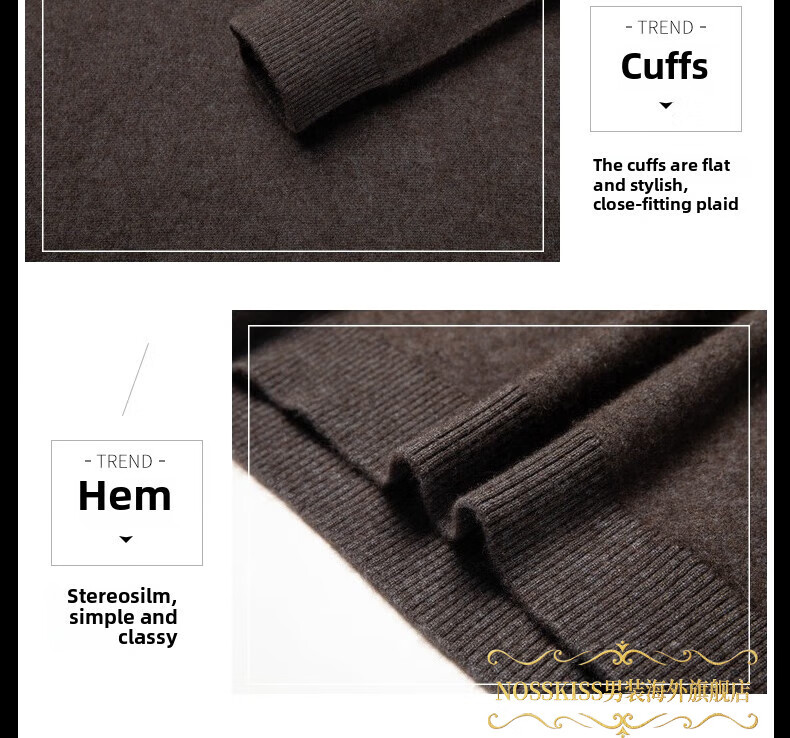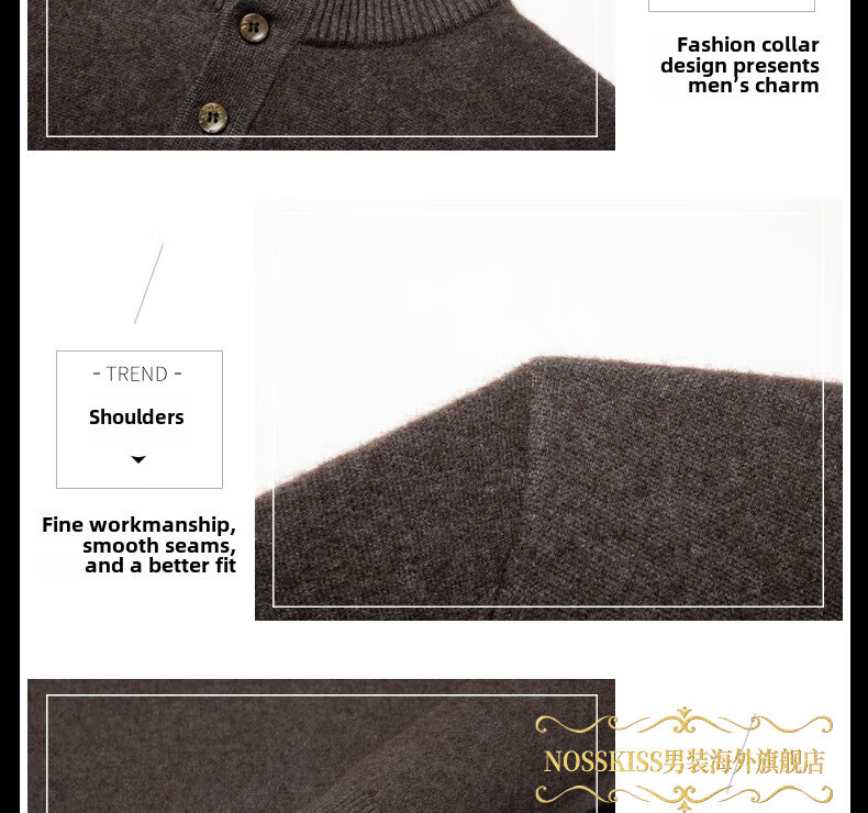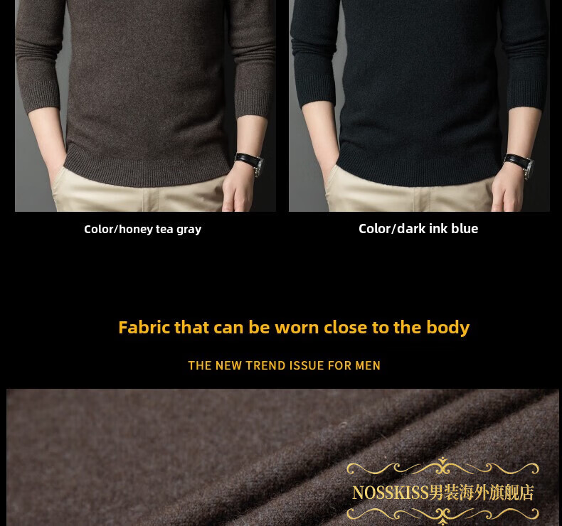 NOSSKISS国际高档品牌立领纯羊毛衫男秋冬季半高领有扣开领中青年针织衫 深墨蓝色 均码 175/L[适合135-150斤]