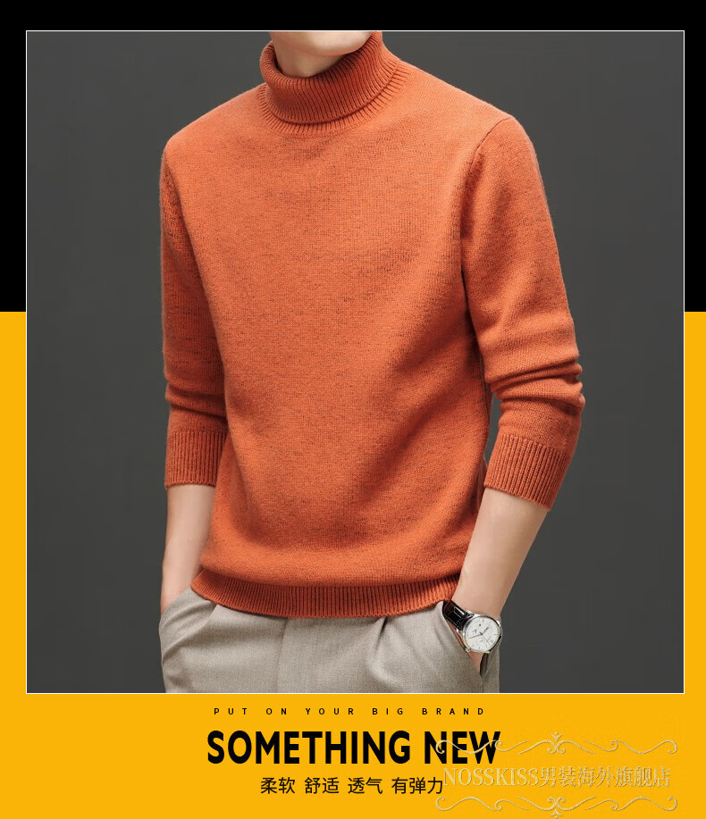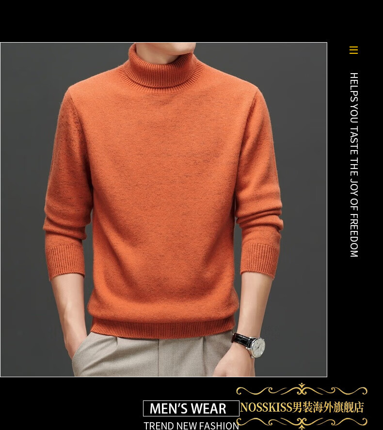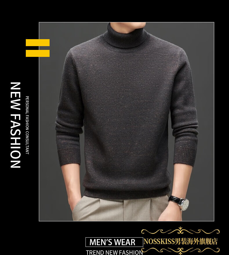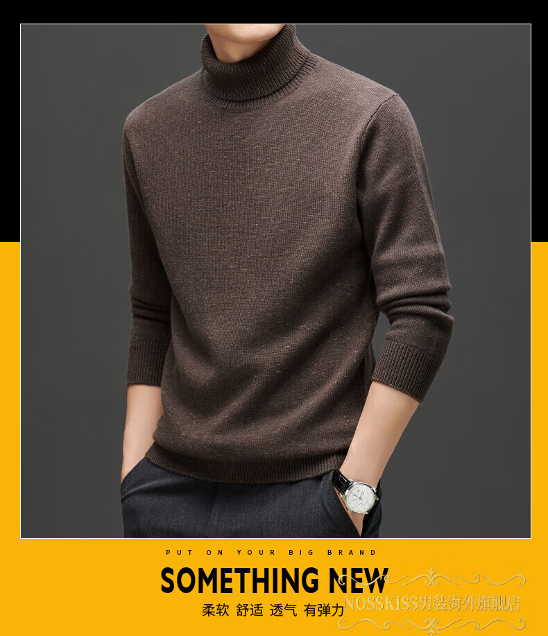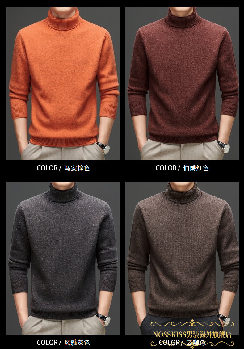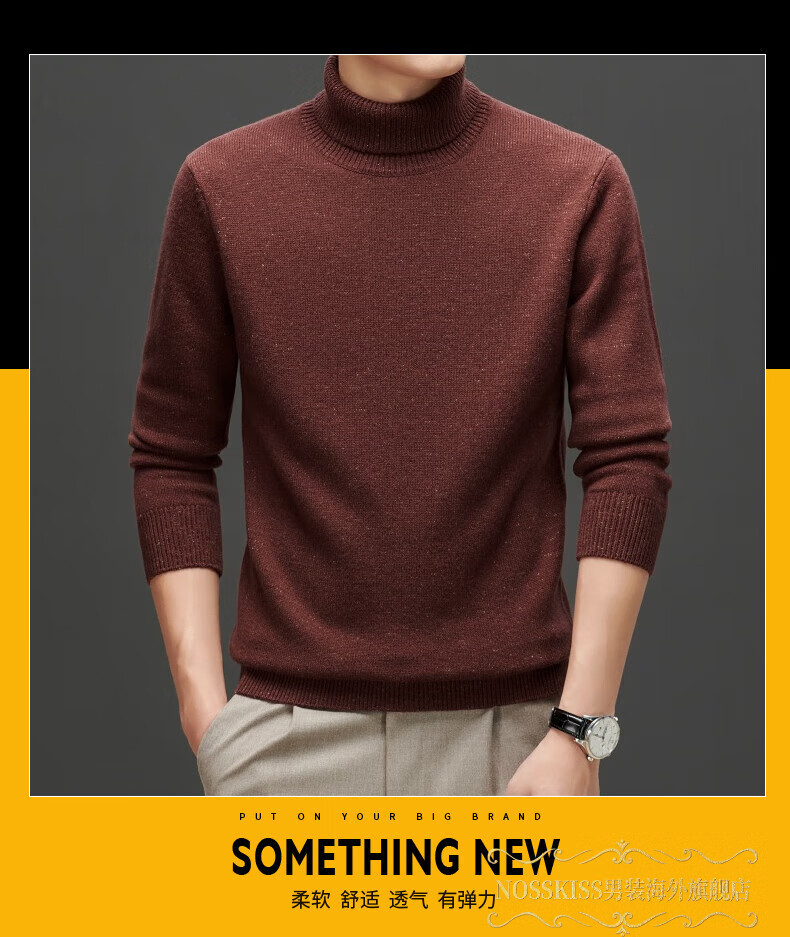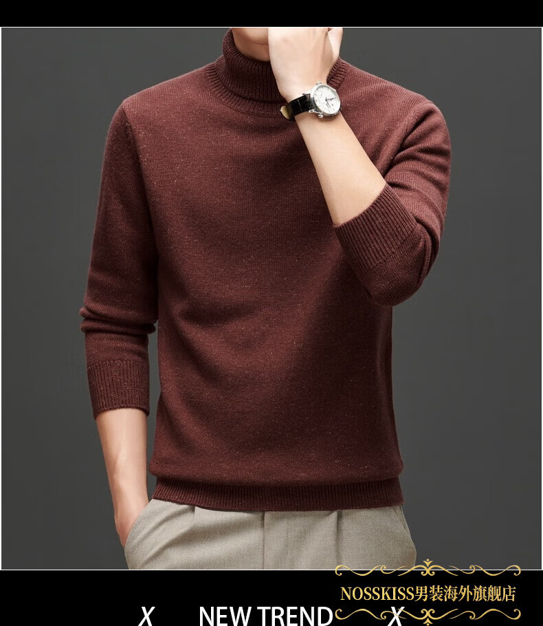 NOSSKISS international high-end brand pure woolen sweater men's Korean style sesame dot turtleneck sweater autumn and winter 2025 new men's clothing Earl Red One Size 175/L Suitable for 135-150Jin Jin equals 0.5 kg