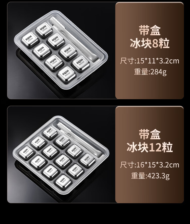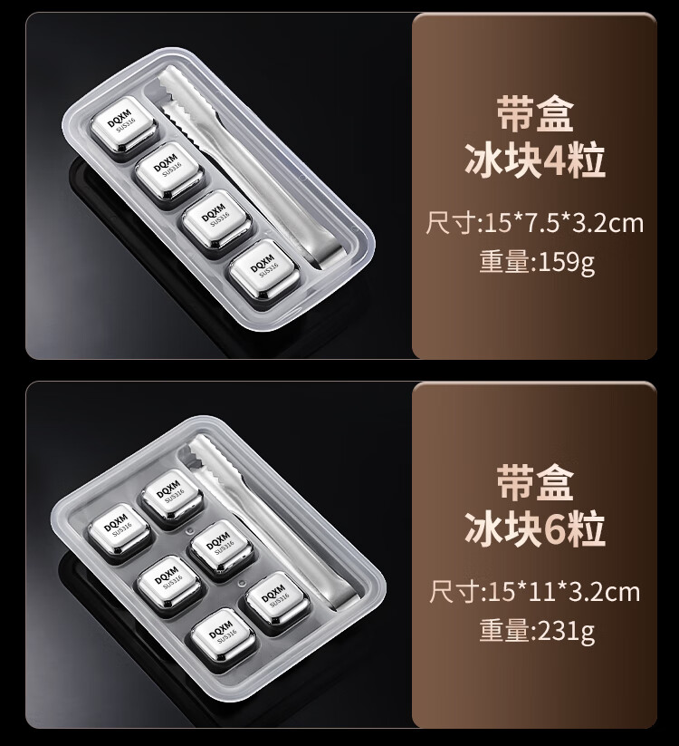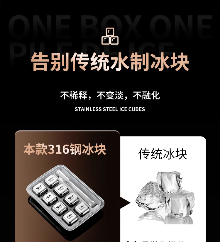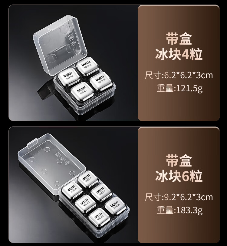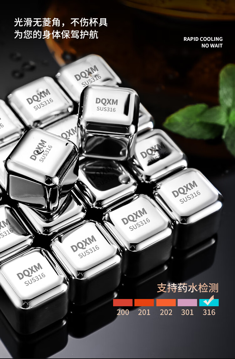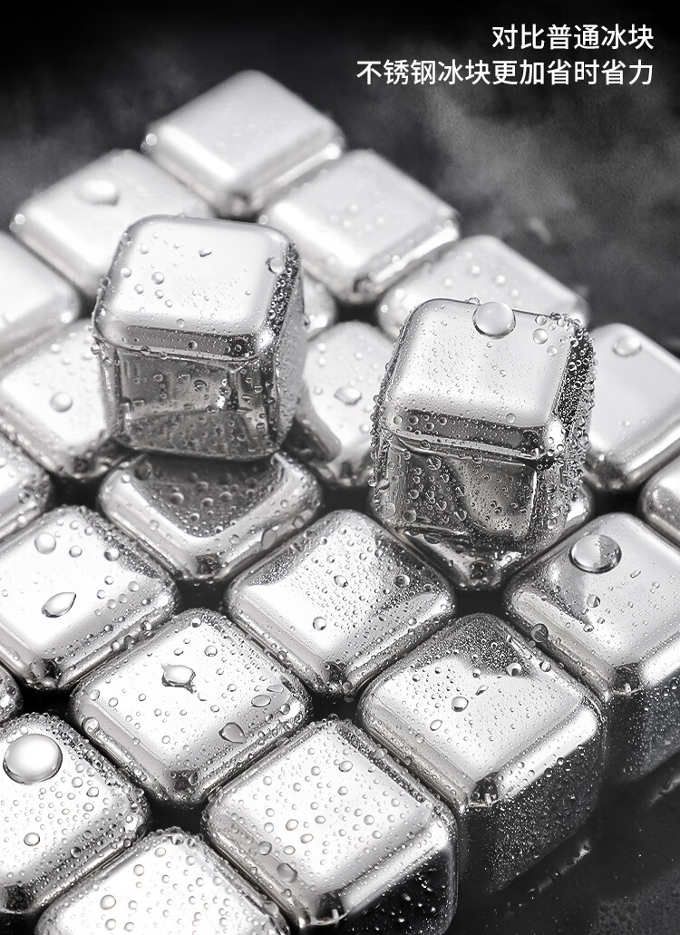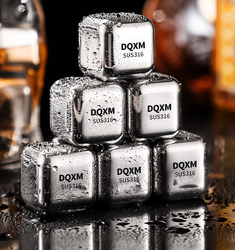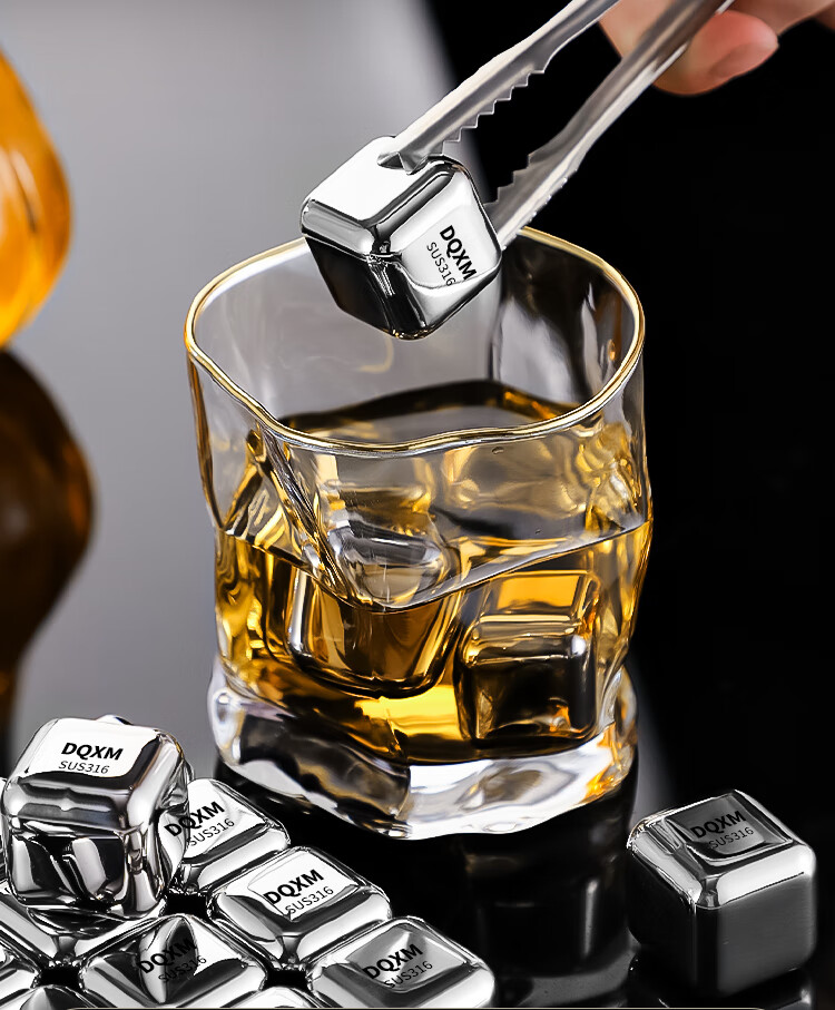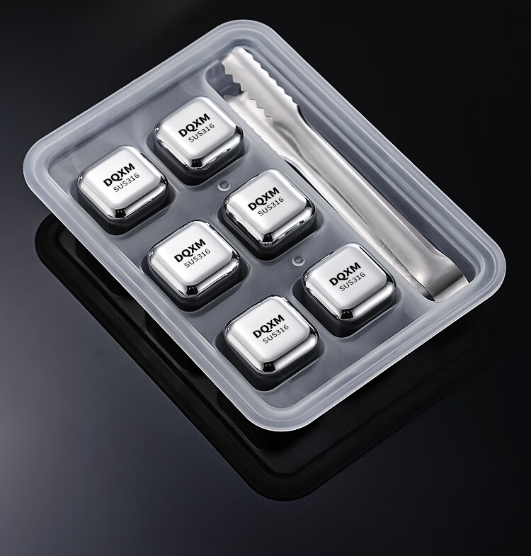 Food grade 316 stainless steel ice cubes whiskey ice balls iron ice stones metal frozen ice particles 304 household small ice tartar 316 material ice particles - 6 pieces + ice clip + storage box