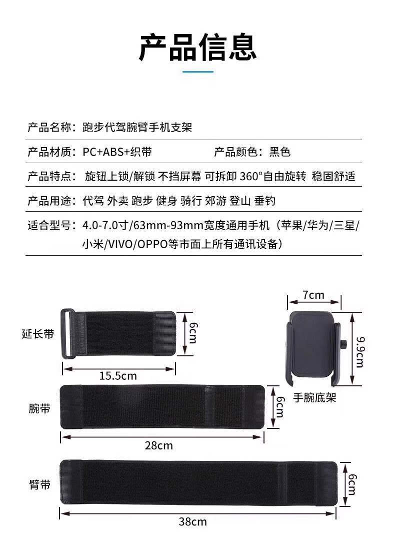 Jujing can’t get rid of it, wrist phone holder for driving, cycling, live broadcast artifact, sports navigation arm bag, running arm, wrist style, 3 brackets + wrist strap 27 cm