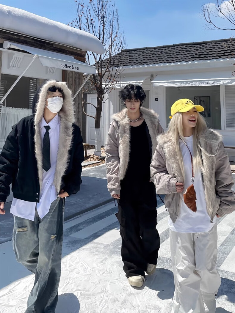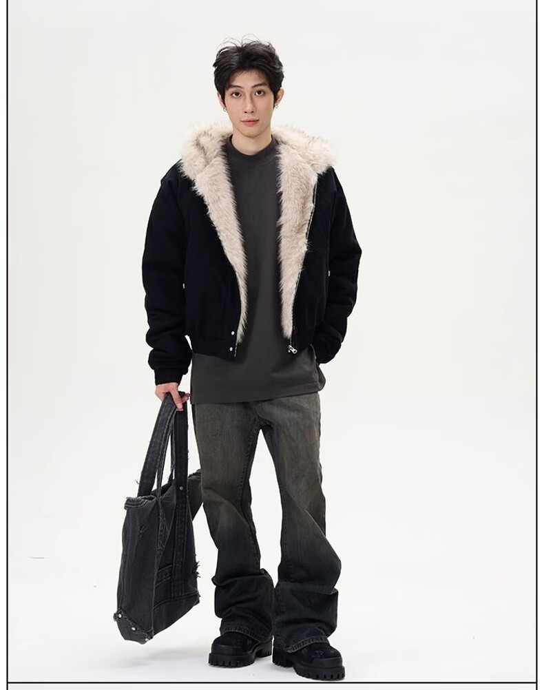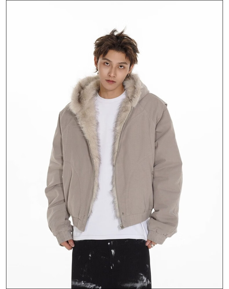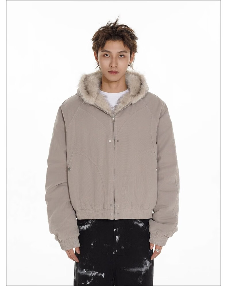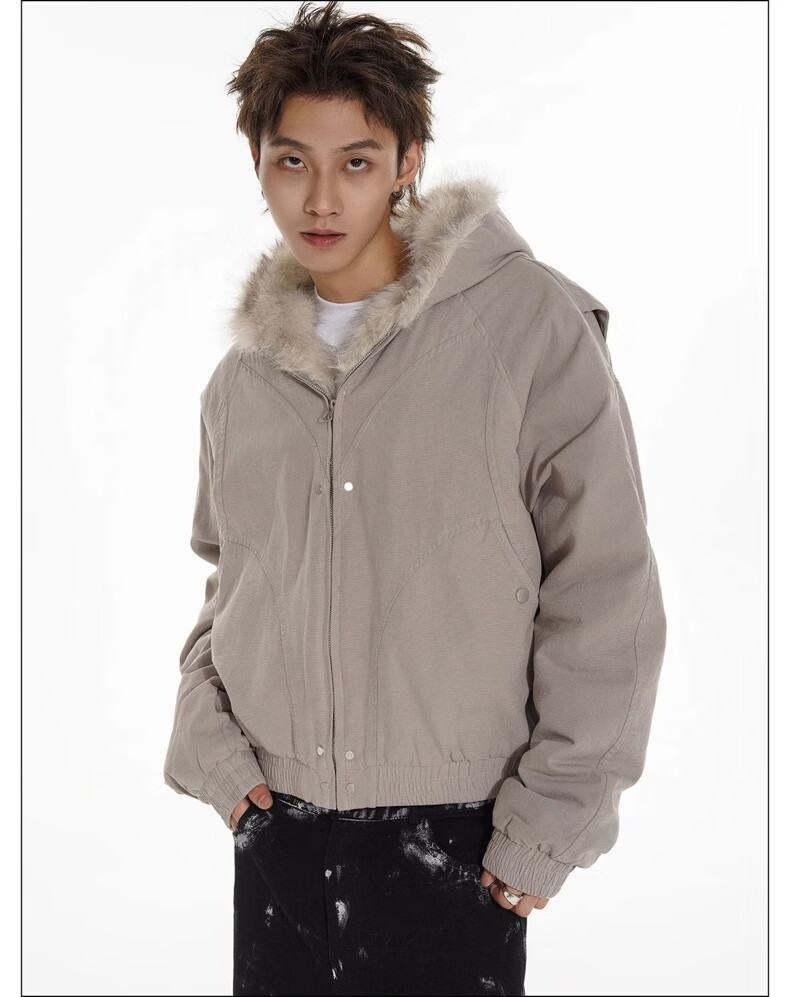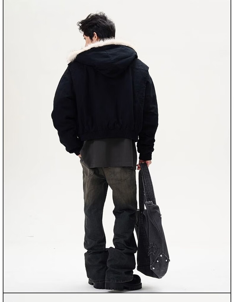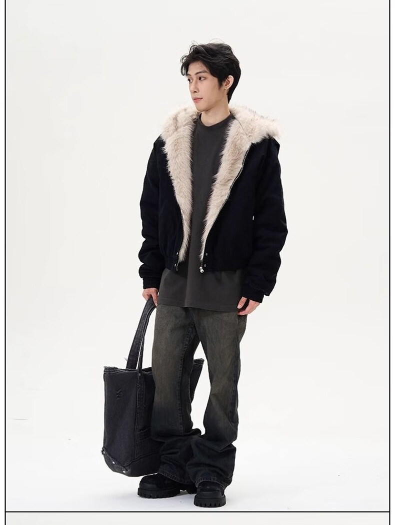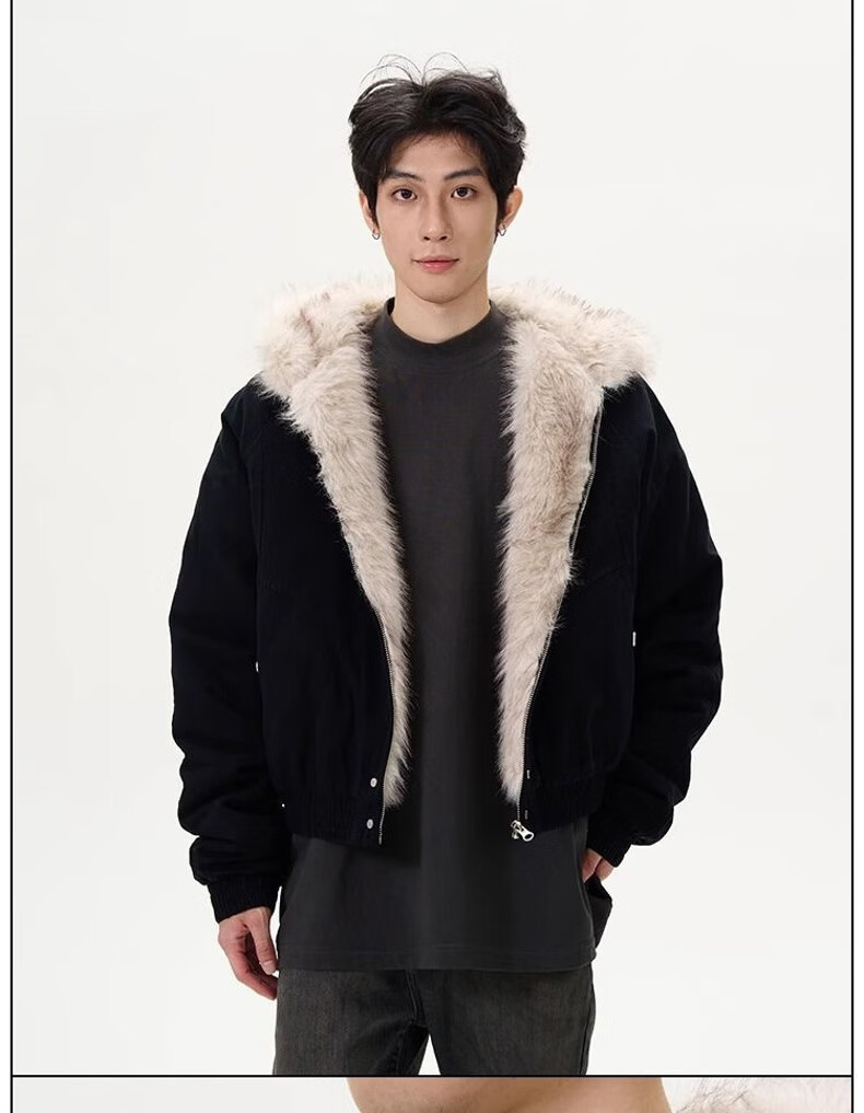 NASALIKE Official American Cleanfit Fur Collar Mountain Carving Jacket Cotton Jacket Men's Autumn and Winter Thickened Short Work Jacket Black 2XL (Recommended 155-180 Jin Jin equals 0.5 kg)