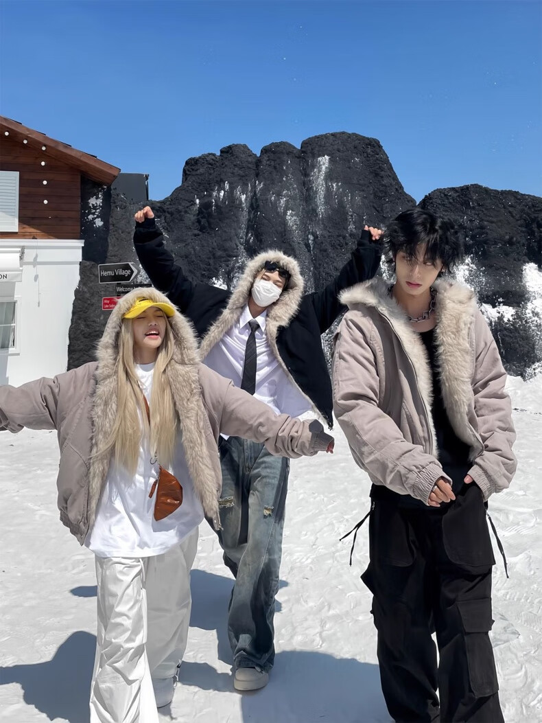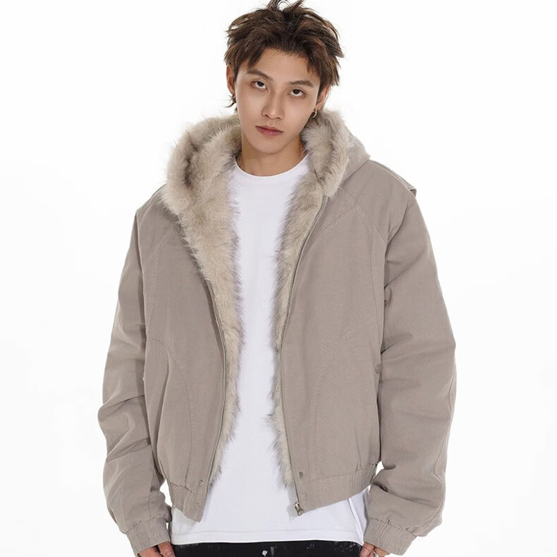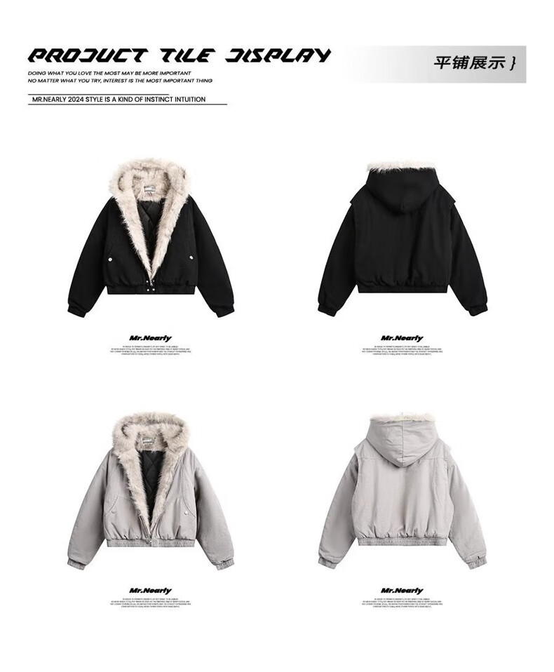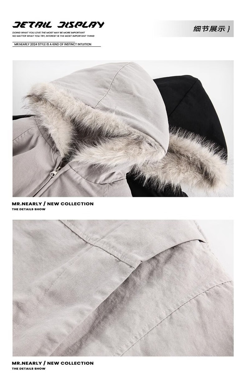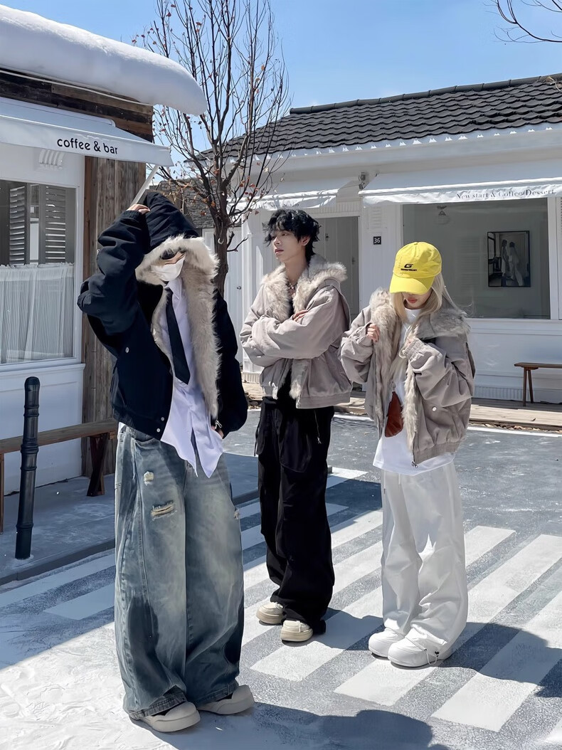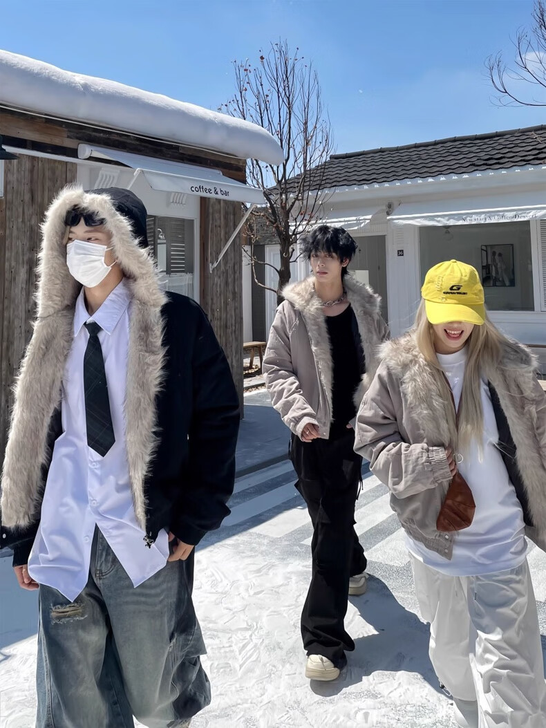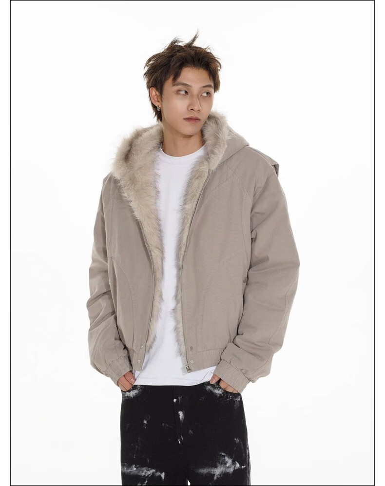 NASALIKE Official American Cleanfit Fur Collar Mountain Carving Jacket Cotton Jacket Men's Autumn and Winter Thickened Short Work Jacket Black 2XL (Recommended 155-180 Jin Jin equals 0.5 kg)