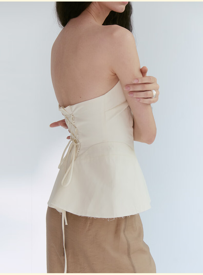 CREME SU Tube Top Sheva Series Light Mature Elegant Top Beautiful Back Design Slim Vest Women 2025 New Pearl White One Size (Recommended 95-120 Jin Jin is equal to 0.5 kg)