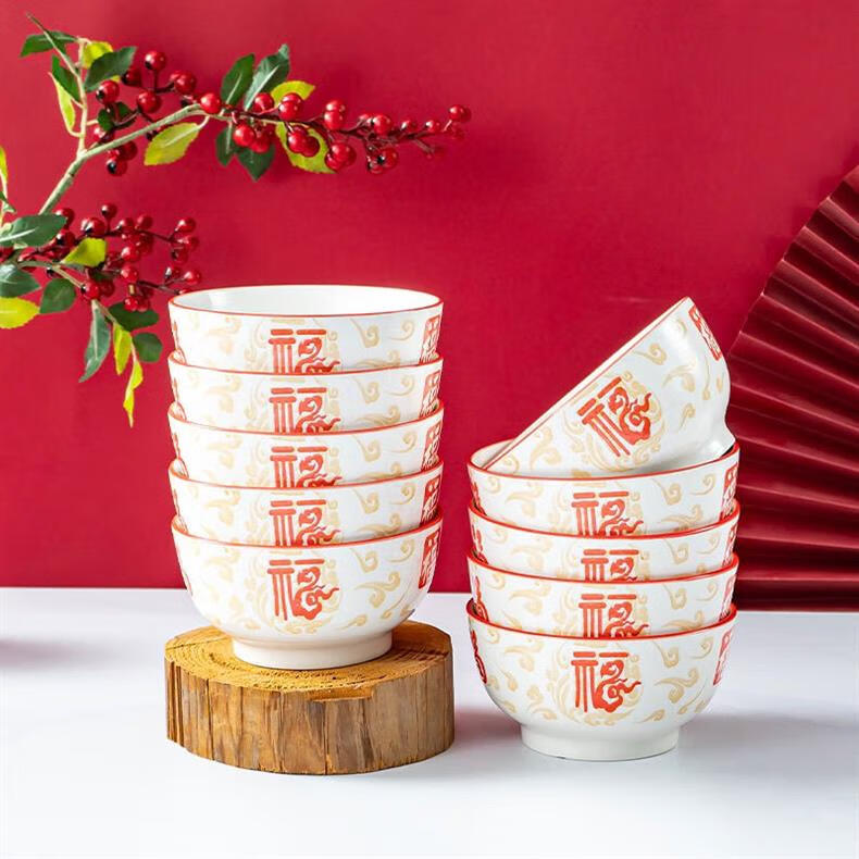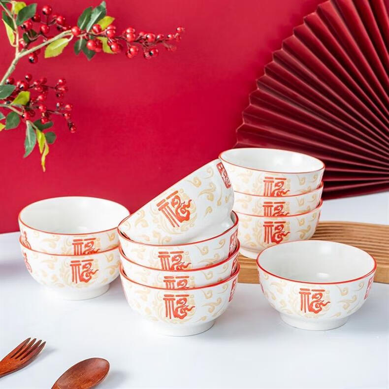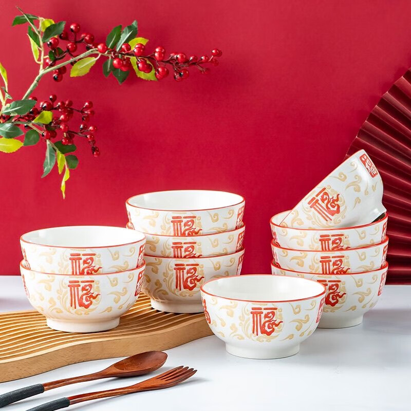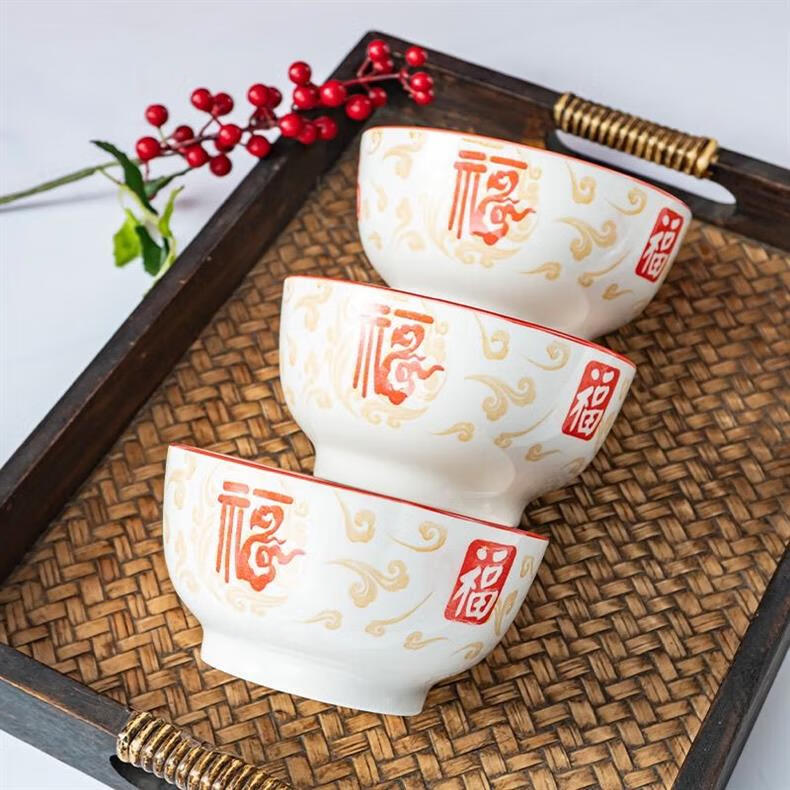 Ceramic rice bowl with the word Xiangyunfu and Five Blessings tableware for home use. Rice bowl. Rice bowl. Porridge bowl. Housewarming celebration. 1 5-inch large bowl.